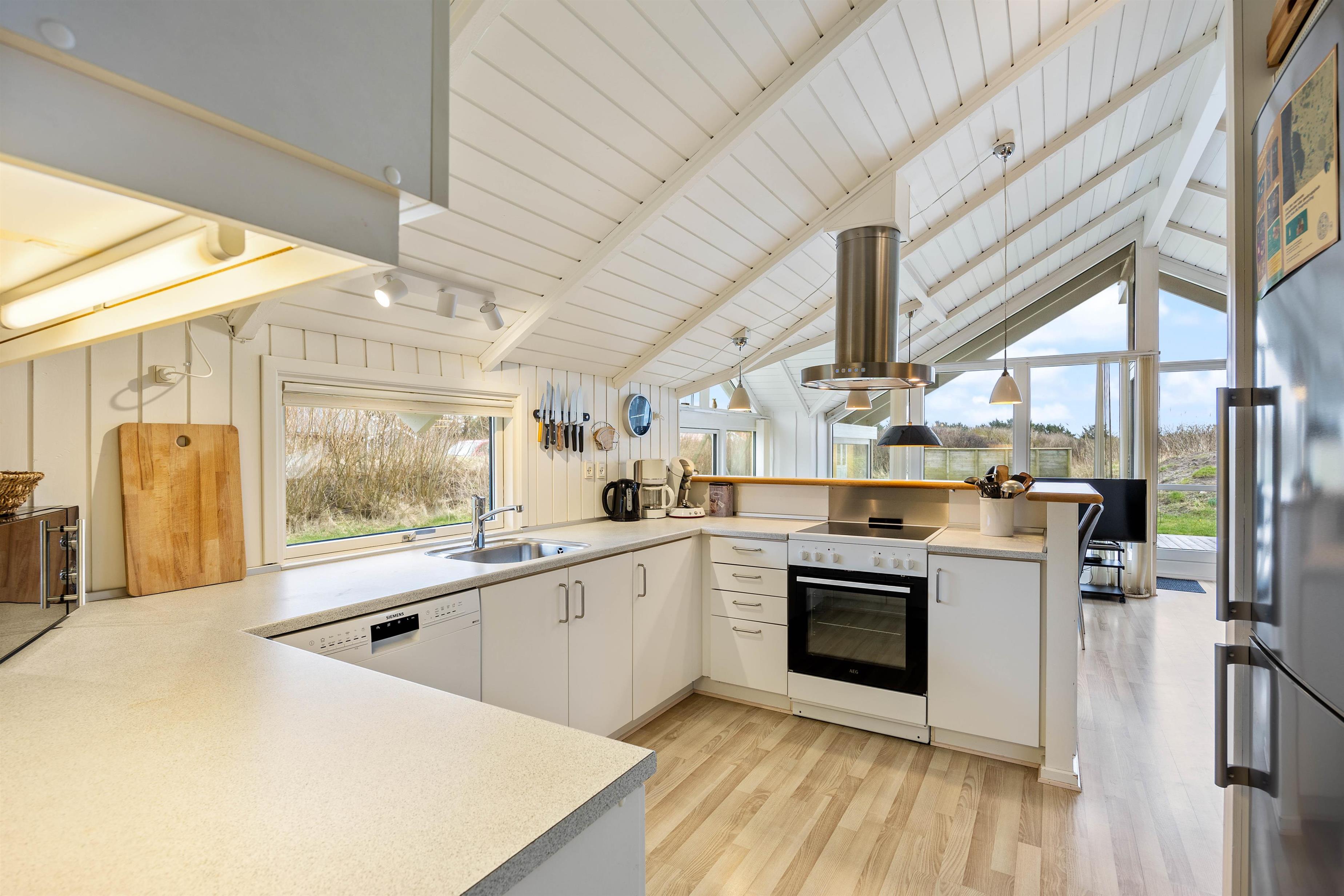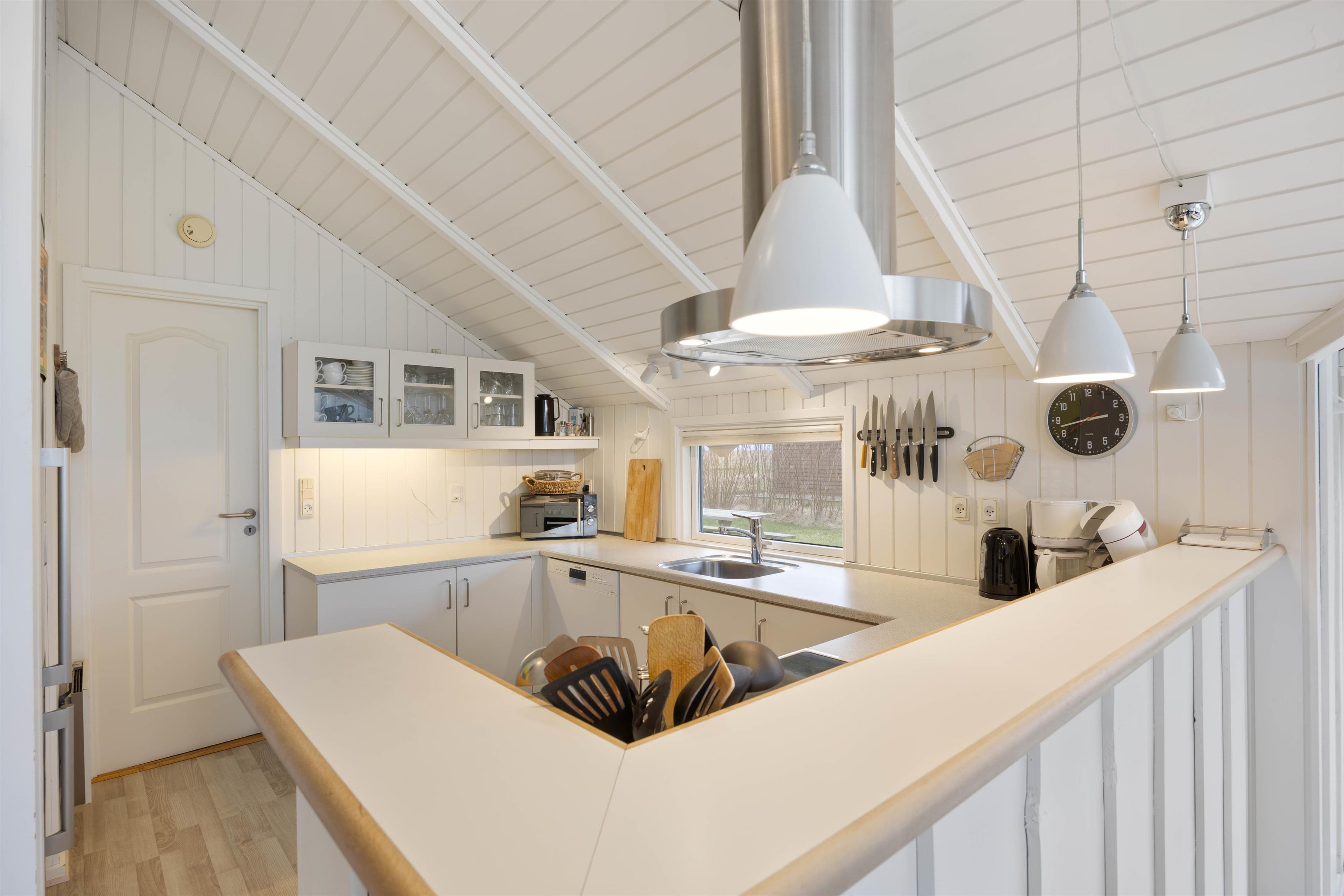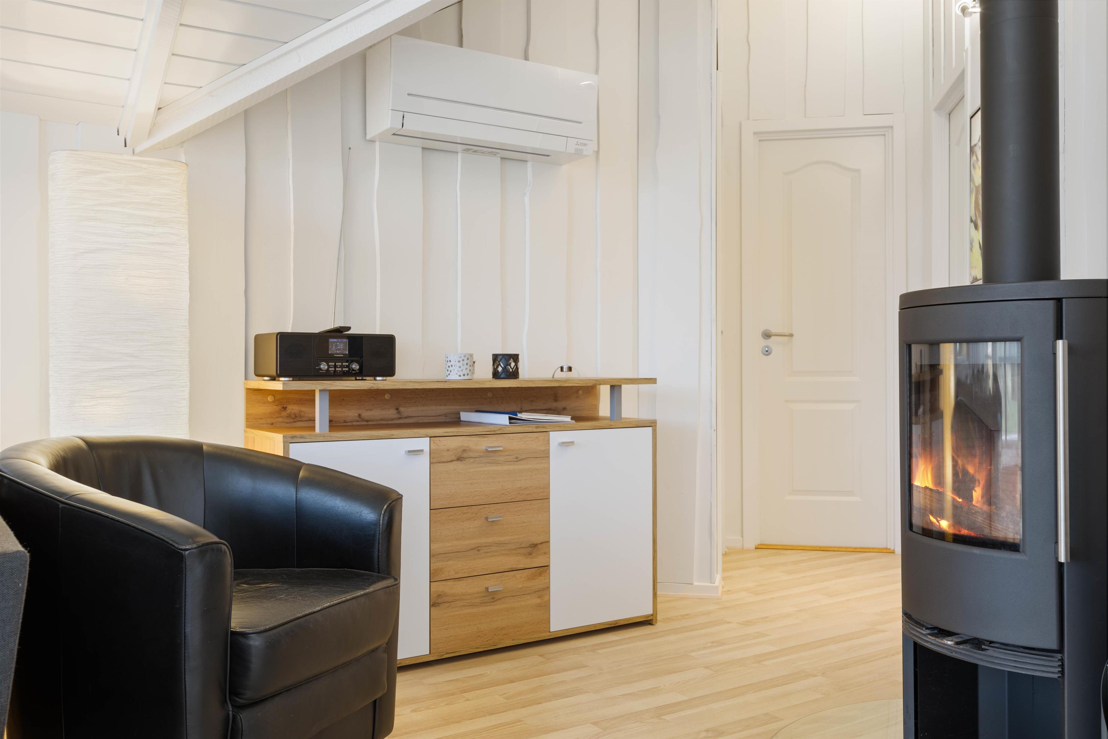 I det veludstyrede køkken finder I alt det nødvendige for at gøre madlavningen til en leg; herunder fryser, opvaskemaskine og mikroovn. Efter en dejlig middag, kan I tage hyggen med videre i stuen. Slå benene op med en god bog eller se jeres yndlingsprogram på fjernsynet, der desuden også har kabeltilslutning. Til underholdning er her hurtigt fibernet, DVD-afspiller og et stereoanlæg, mens varmepumpen sørger for et behageligt indeklima. Som prikken over i'et kan I tænde op i brændeovnen.
