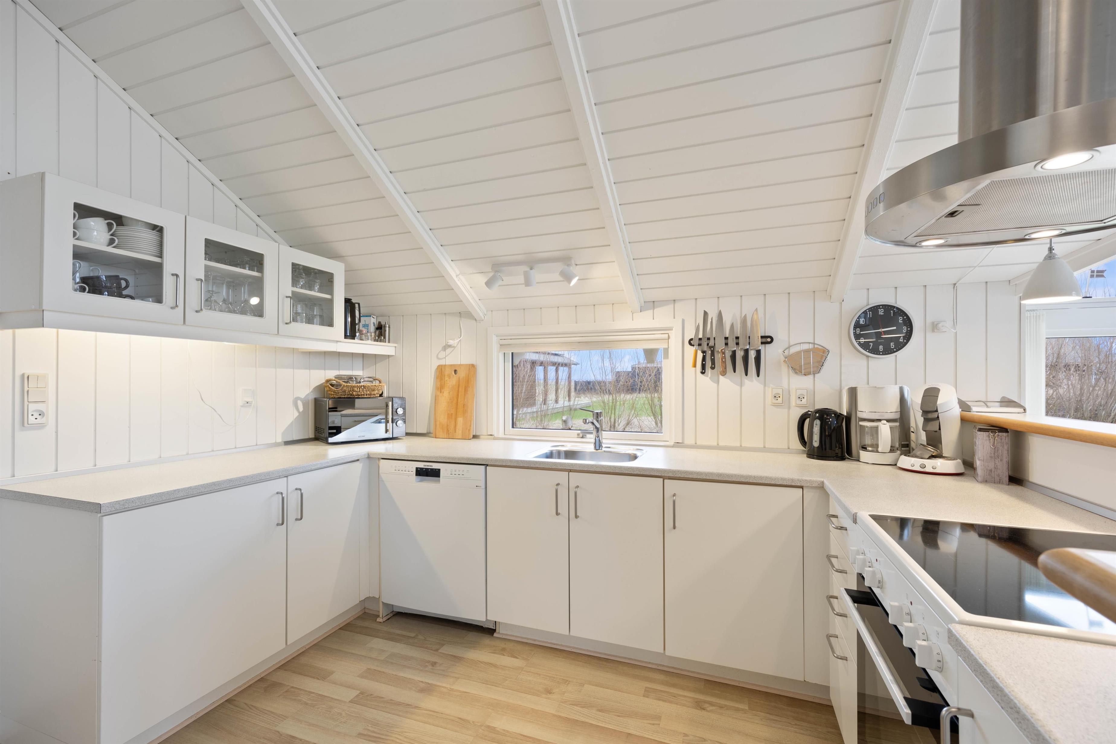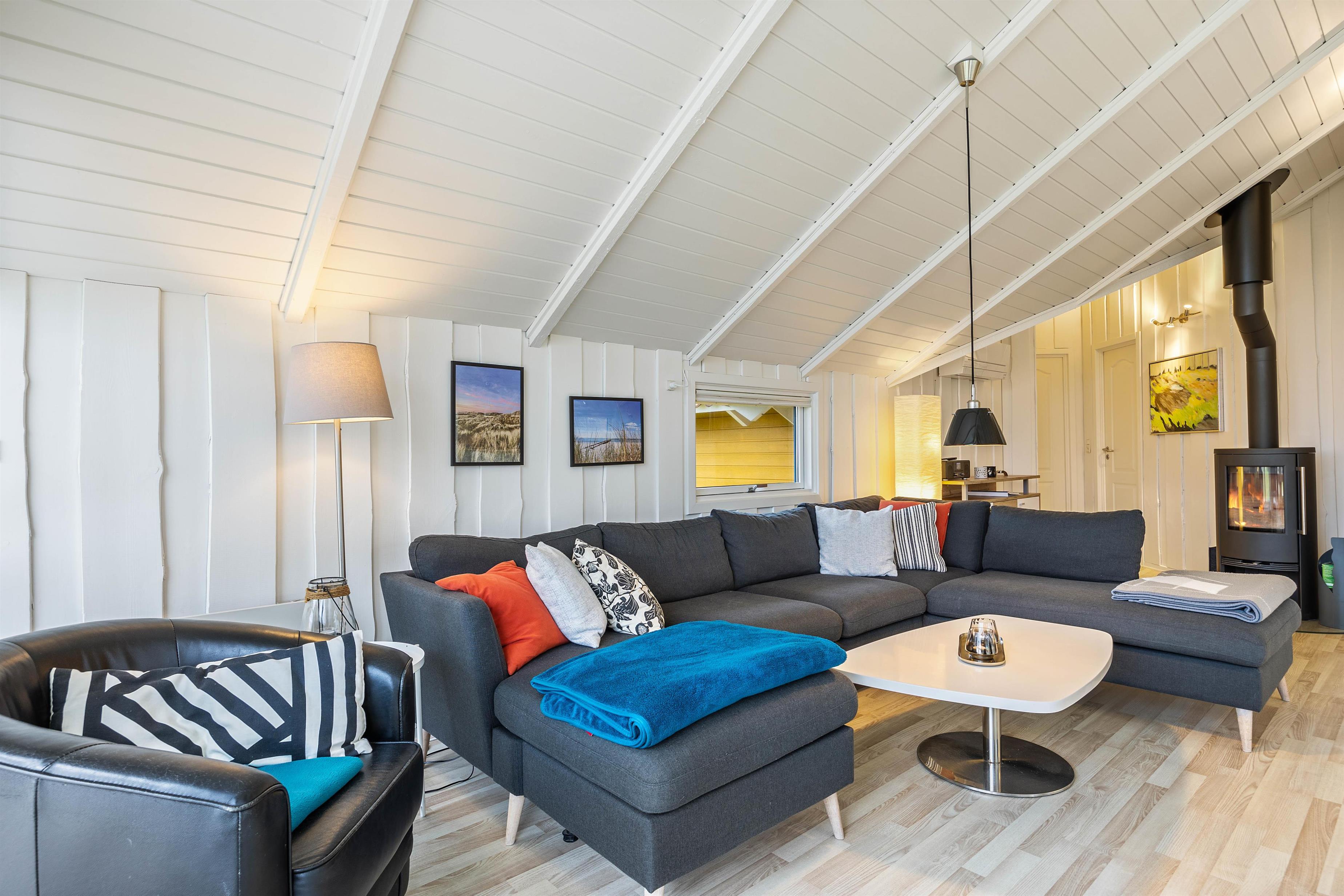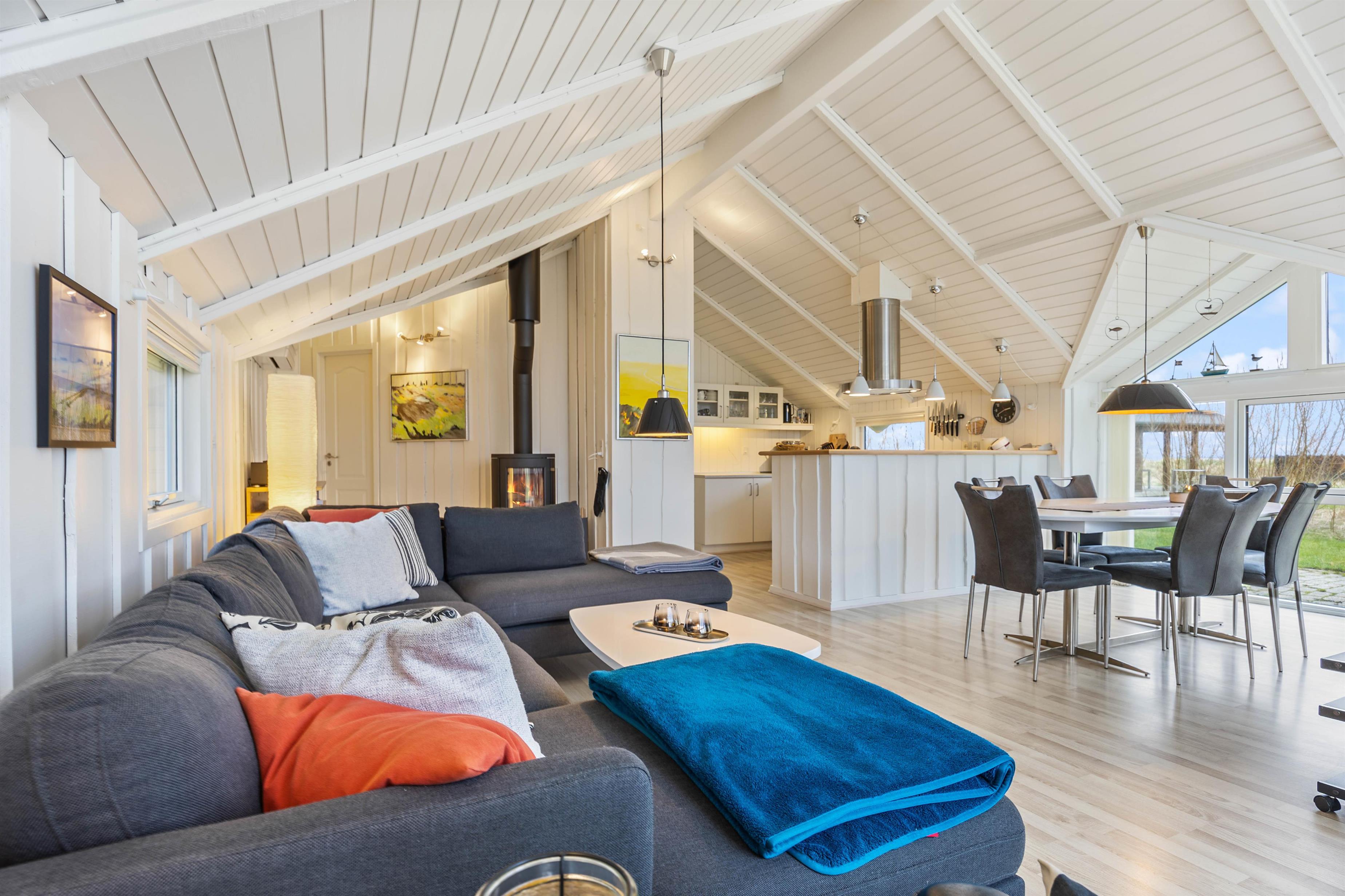 I det veludstyrede køkken finder I alt det nødvendige for at gøre madlavningen til en leg; herunder fryser, opvaskemaskine og mikroovn. Efter en dejlig middag, kan I tage hyggen med videre i stuen. Slå benene op med en god bog eller se jeres yndlingsprogram på fjernsynet, der desuden også har kabeltilslutning. Til underholdning er her hurtigt fibernet, DVD-afspiller og et stereoanlæg, mens varmepumpen sørger for et behageligt indeklima. Som prikken over i'et kan I tænde op i brændeovnen.
