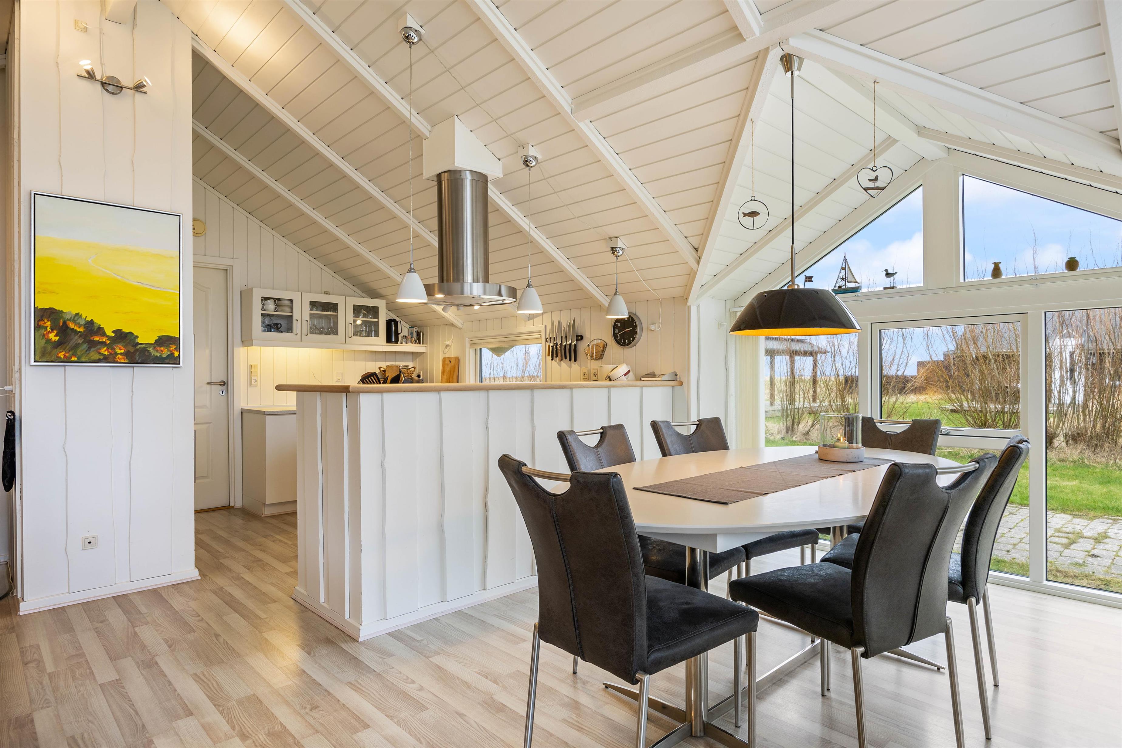 ”Solsikken” er et ægte sommerhus, der skriger af hyggelig sommerhusstemning. Her er masser af plads til både hygge og afslapning med spa og sauna. Samlingspunktet bliver den lyse og solrige opholds- og spiseplads, som forenes i ét rum med køkkenet. Her har I god plads til fællesaktiviteter, mens de hvide træpaneler og store vinduespartier skaber en rar atmosfære.