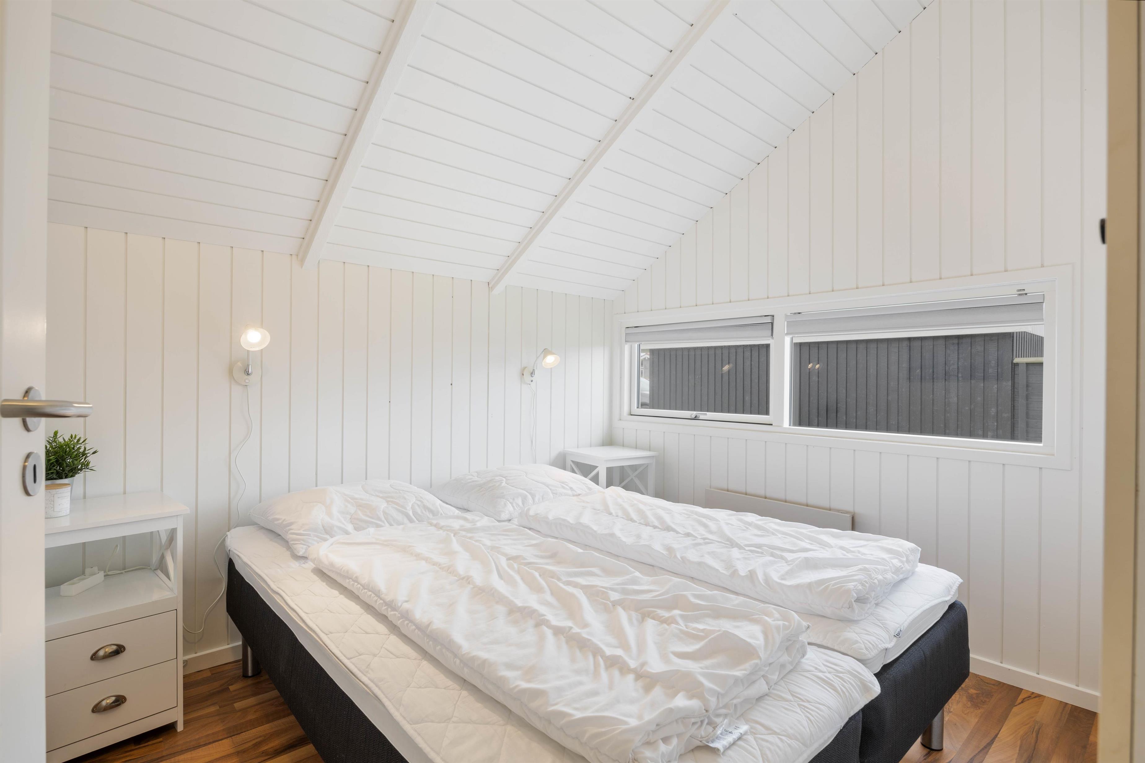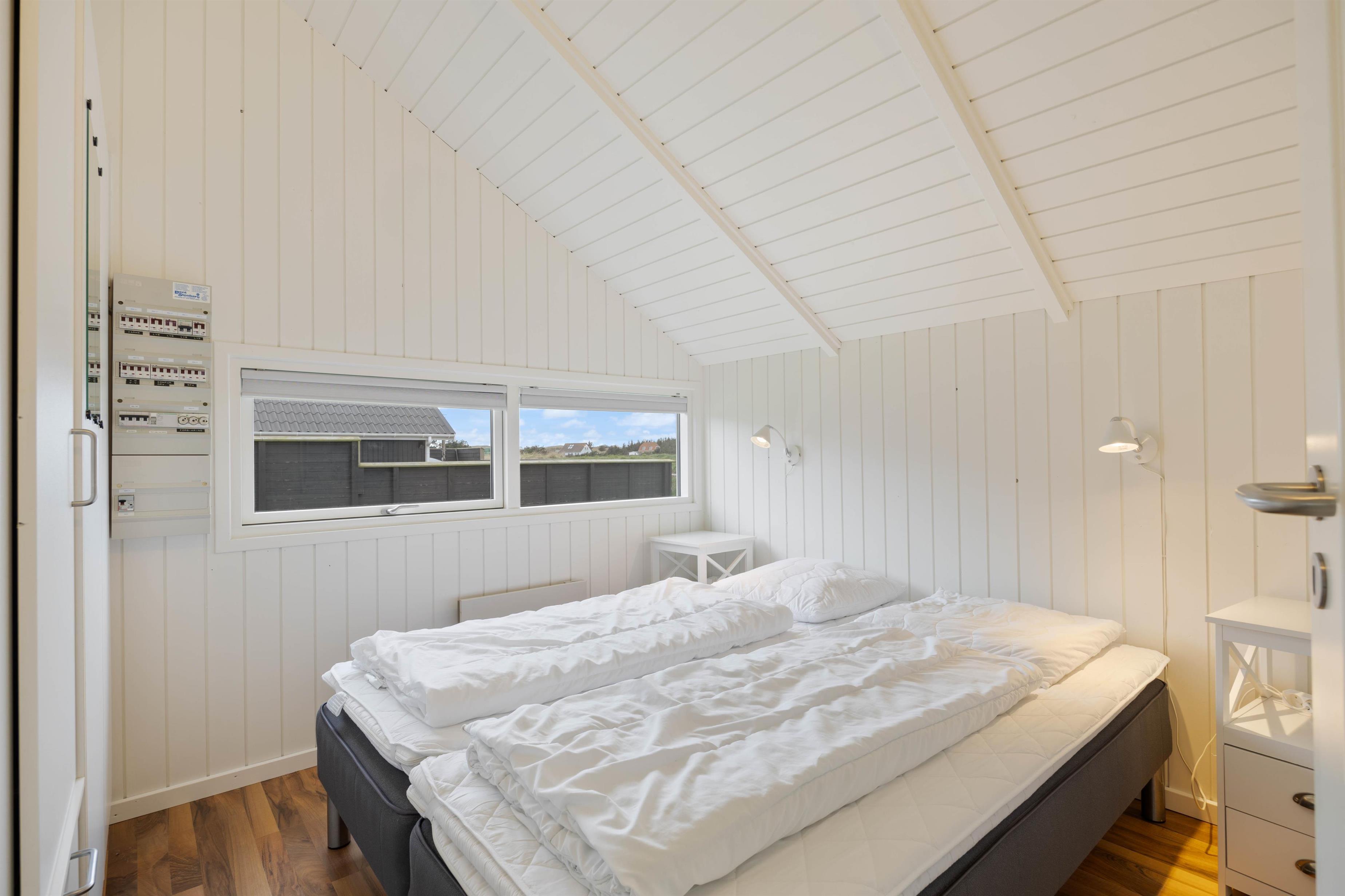 Endvidere finder I et gæstetoilet samt et stort, flot badeværelse, så I undgår kø om morgenen. Badeværelsets spabad og sauna indbyder til afslapning. Glem hverdagen for en stund eller bliv varmet godt igennem efter en lang gåtur ved Vesterhavet. Praktisk finder I også en vaskemaskine her. Når timerne bliver sene, finder I 4 gode soveværelser – 3 med dobbeltseng og ét værelse med en enkeltseng og tilstrækkelig opbevaringsplads. Her kan I få en god nattesøvn, så I er klar til morgendagens aktiviteter.