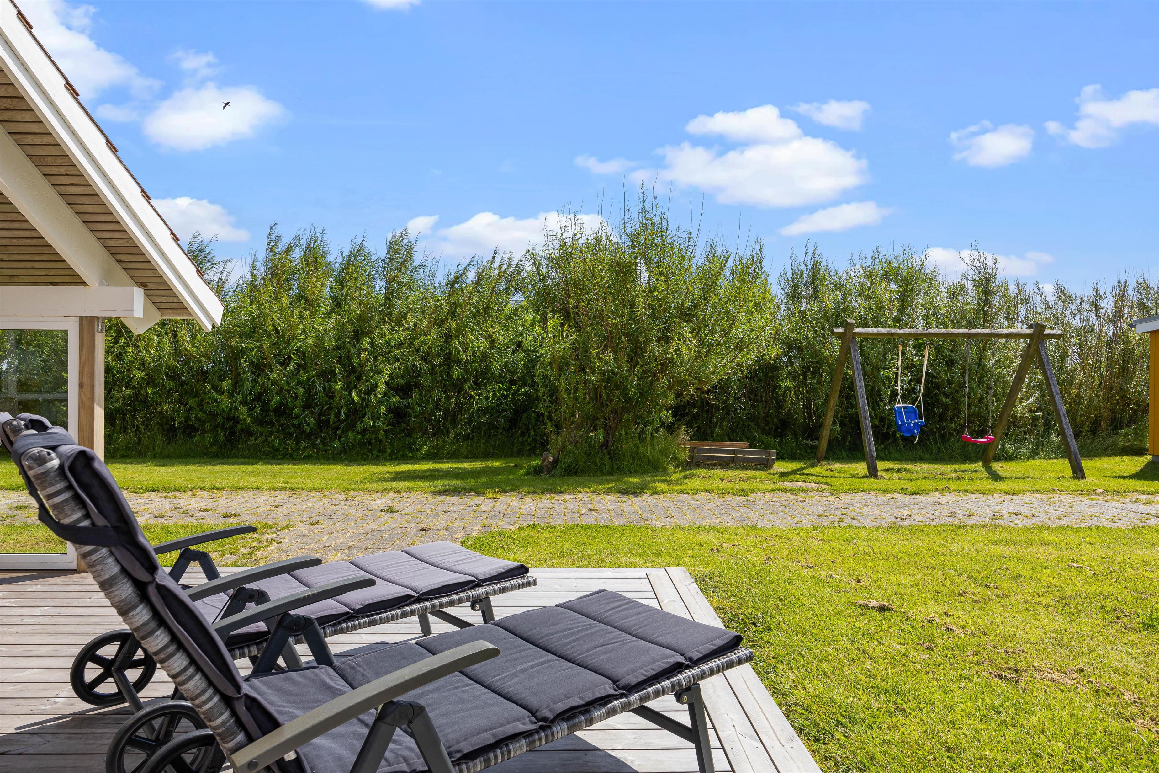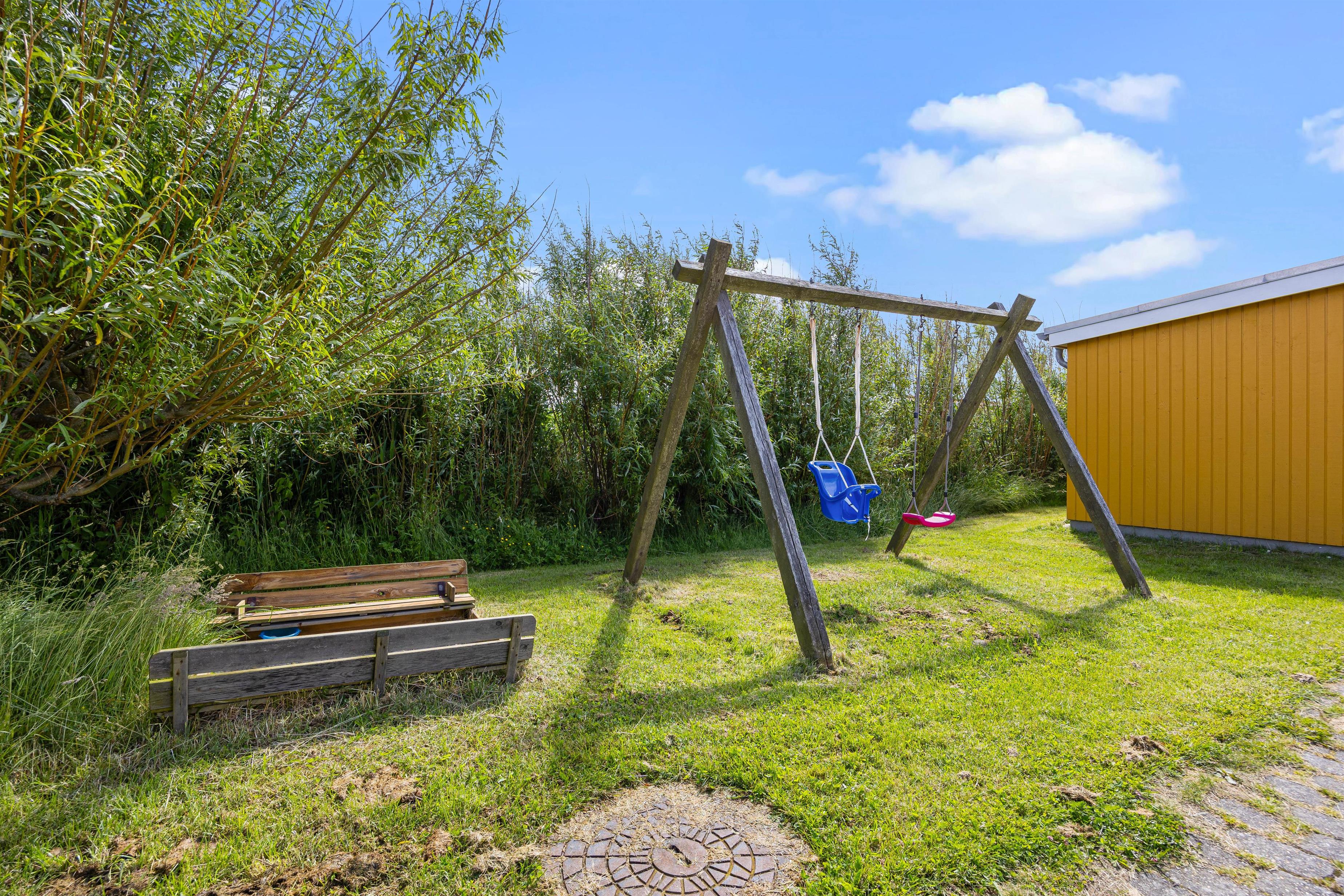 Til aften kan familiens grillmester tænde op i grillen, mens børnene leger på den 1200 m² store grund. Her er god plads til at få brændt krudt af med en bold på græsplænen, mens de mindste kan få glæde af sandkassen eller gyngerne.