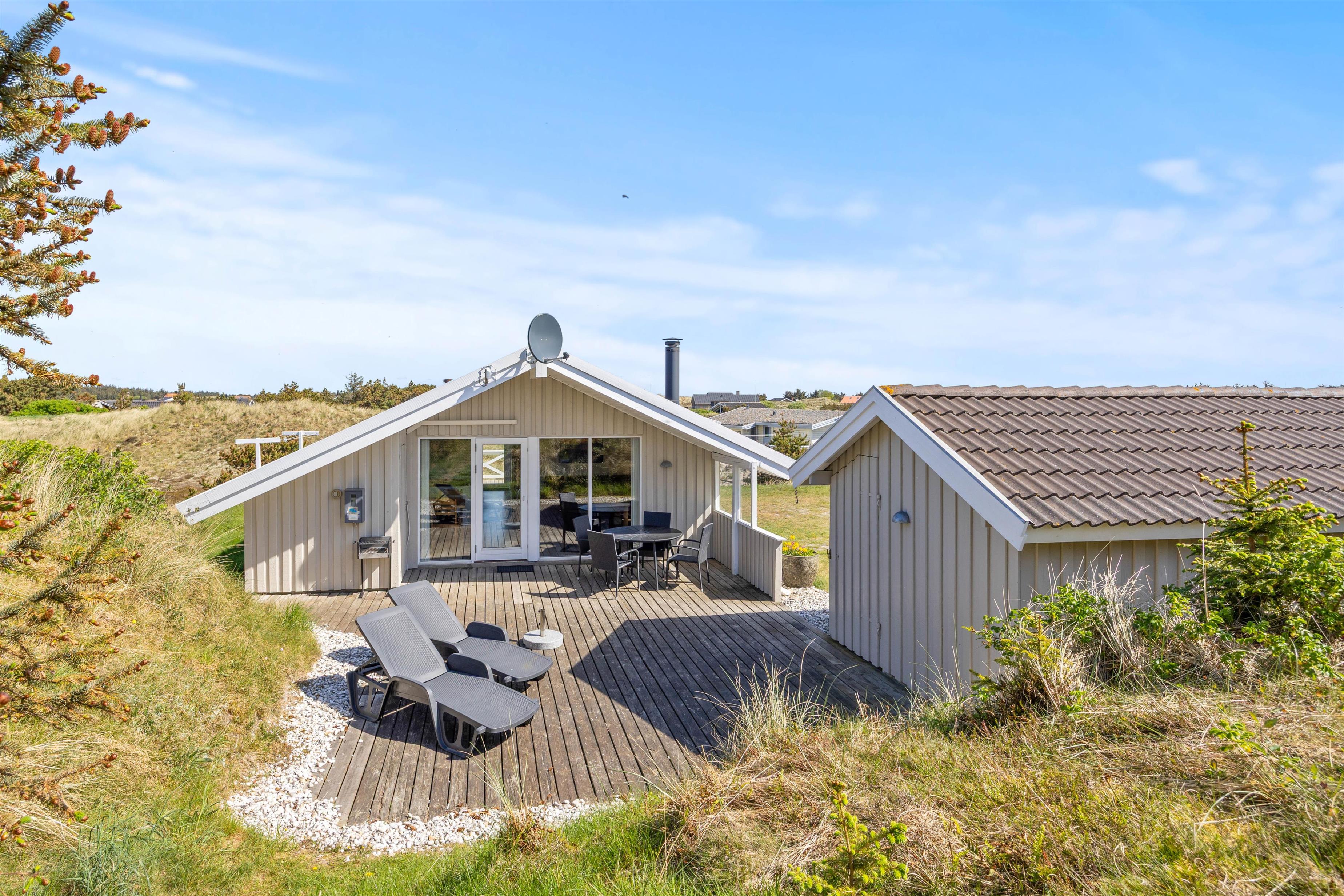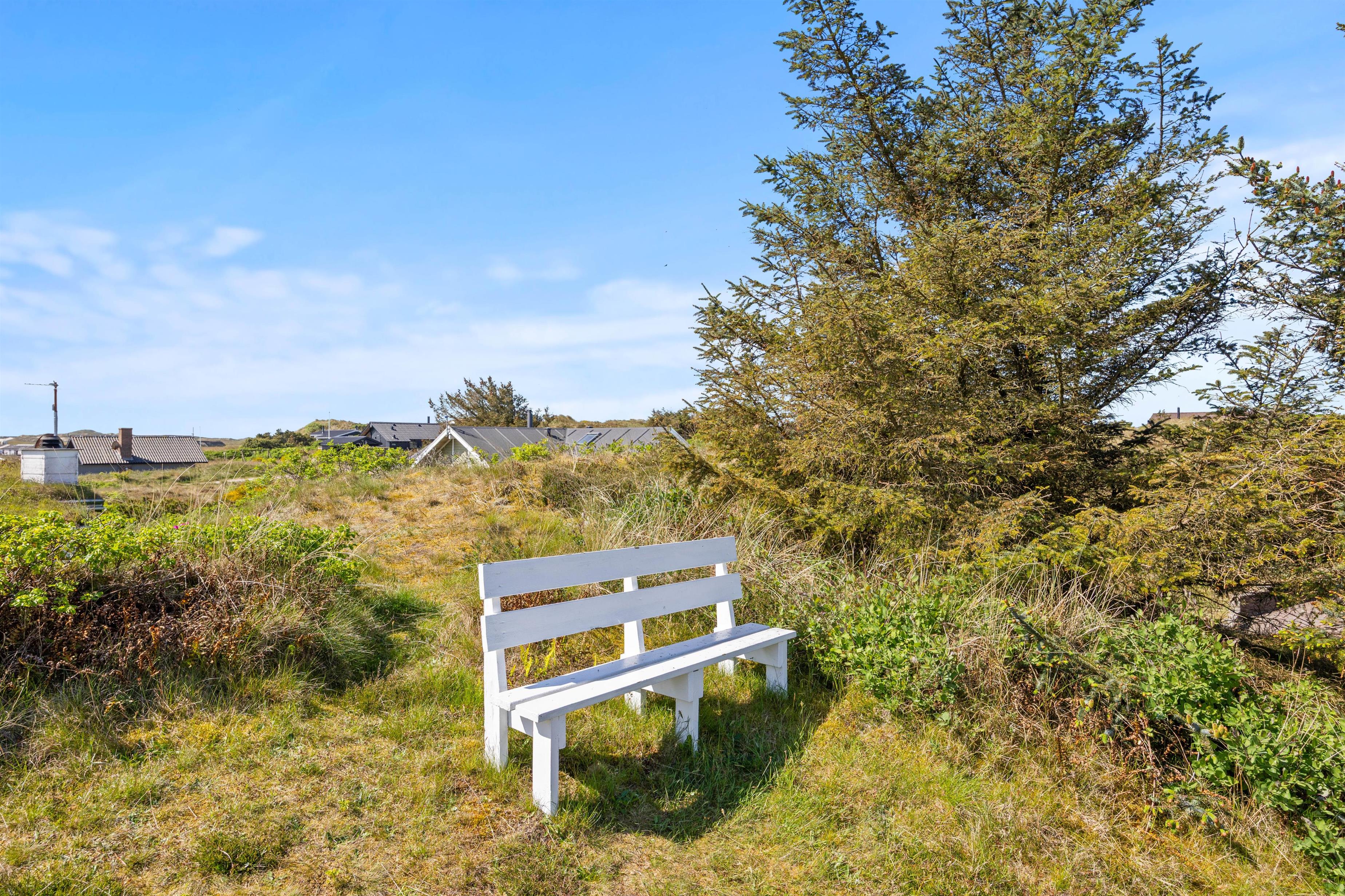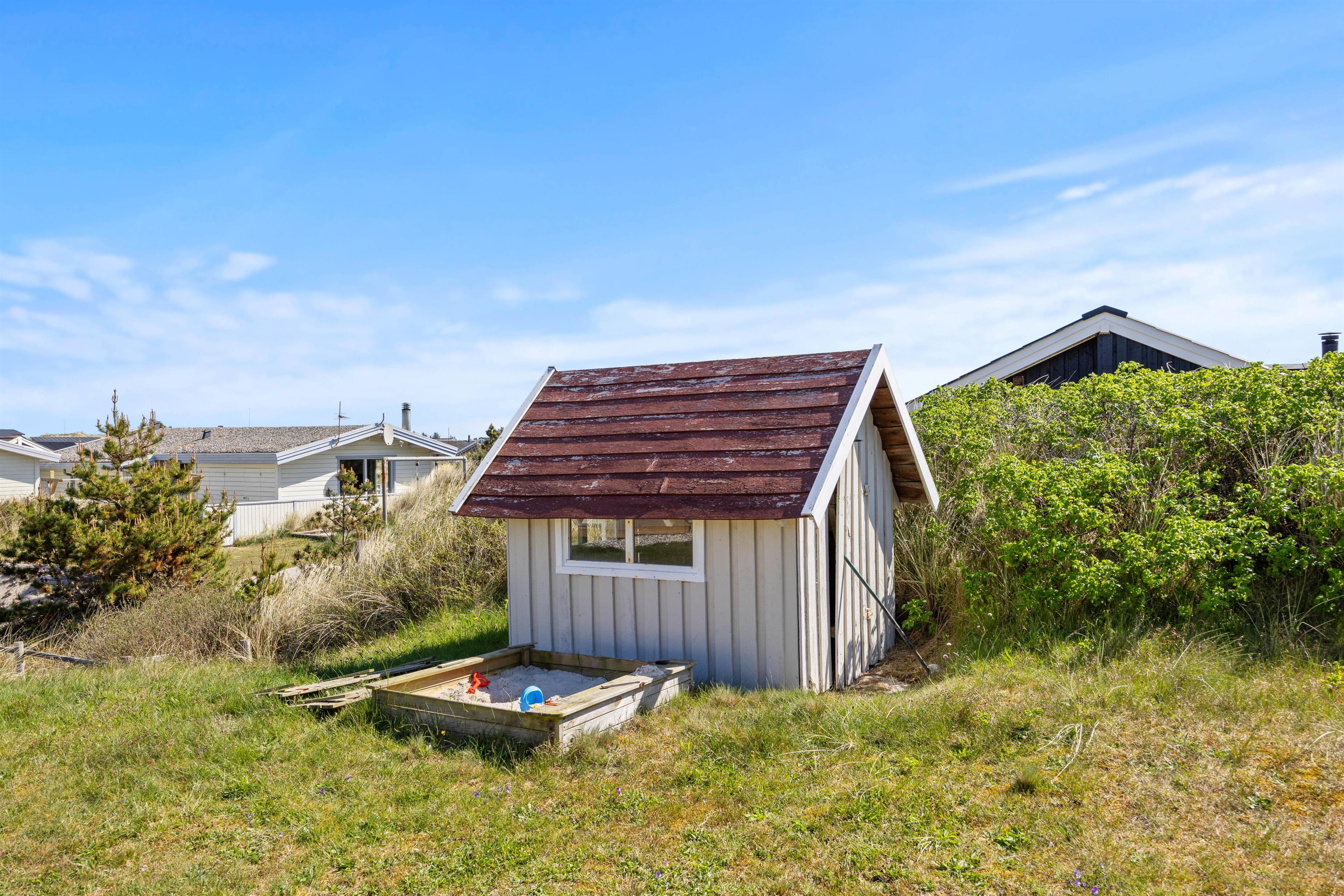 Sommerhuset ligger som det sidste hus på en lille, blind stikvej til Vesterledvej. Sommerhuset ligger dermed i et dejligt, roligt område, som er perfekt til børnene. Foruden terrassen og den omkringliggende natur har sommerhuset et godt legehus og en sandkasse, som børnene kan lege i. Fra sommerhuset er der 500 meter til stranden, som I uden tvivl kommer til at besøge flere gange, hvad enten det er, mens solen står allerhøjest på himlen eller til en smuk solnedgang.