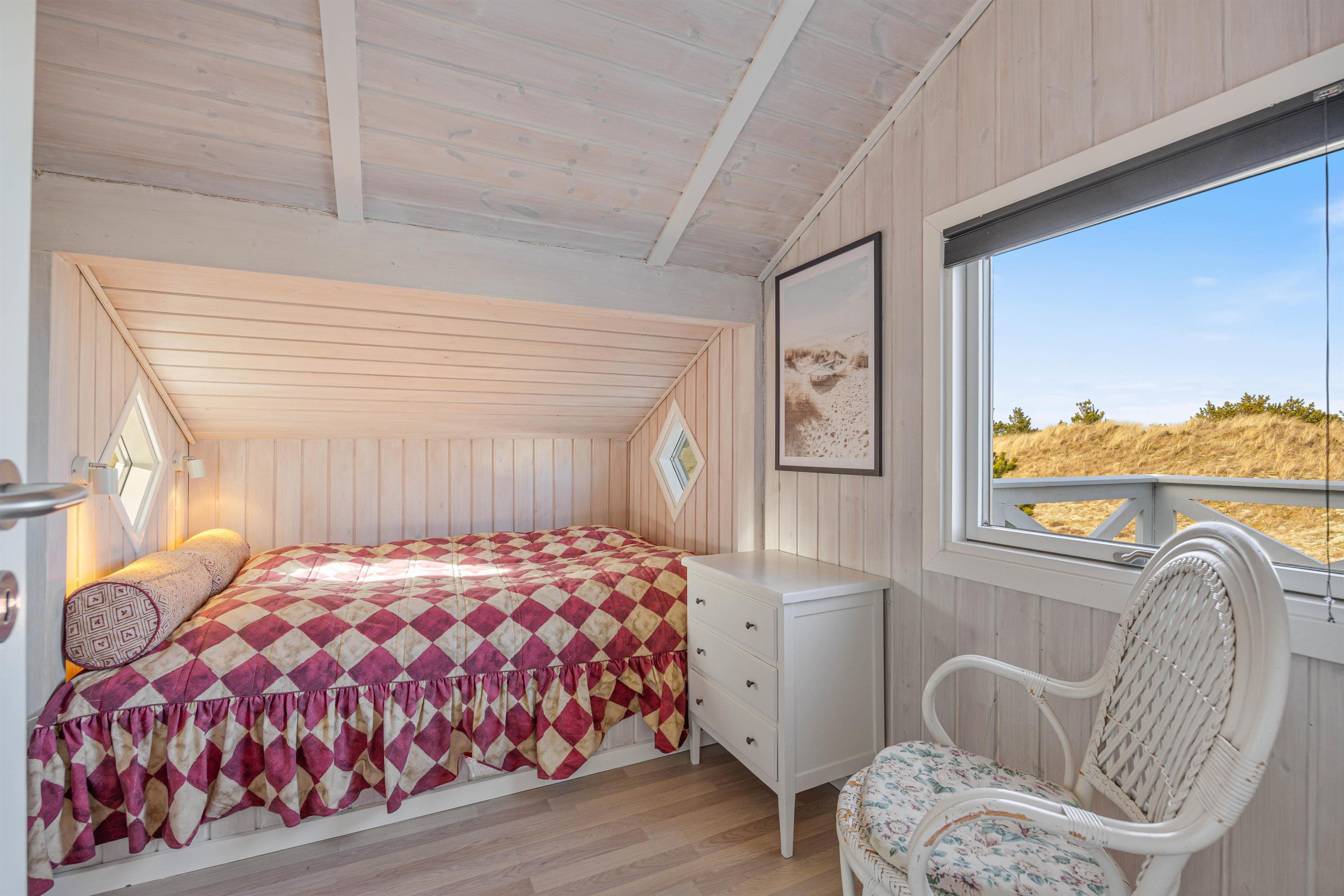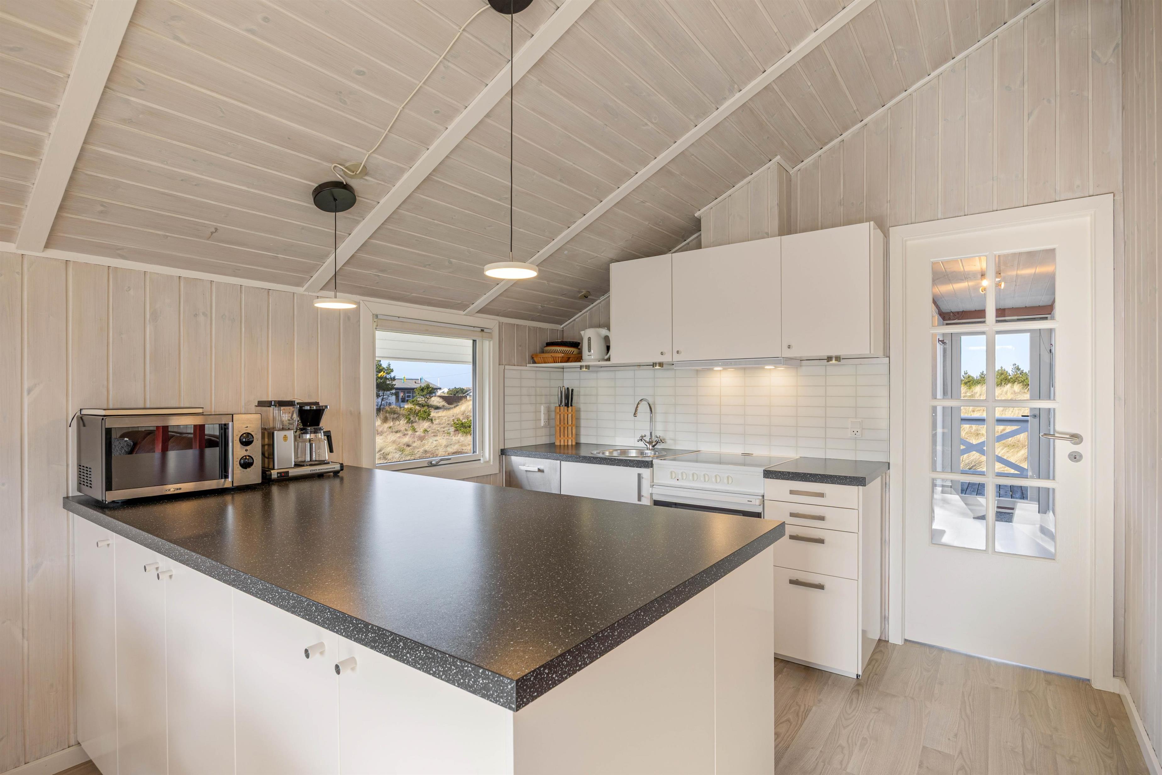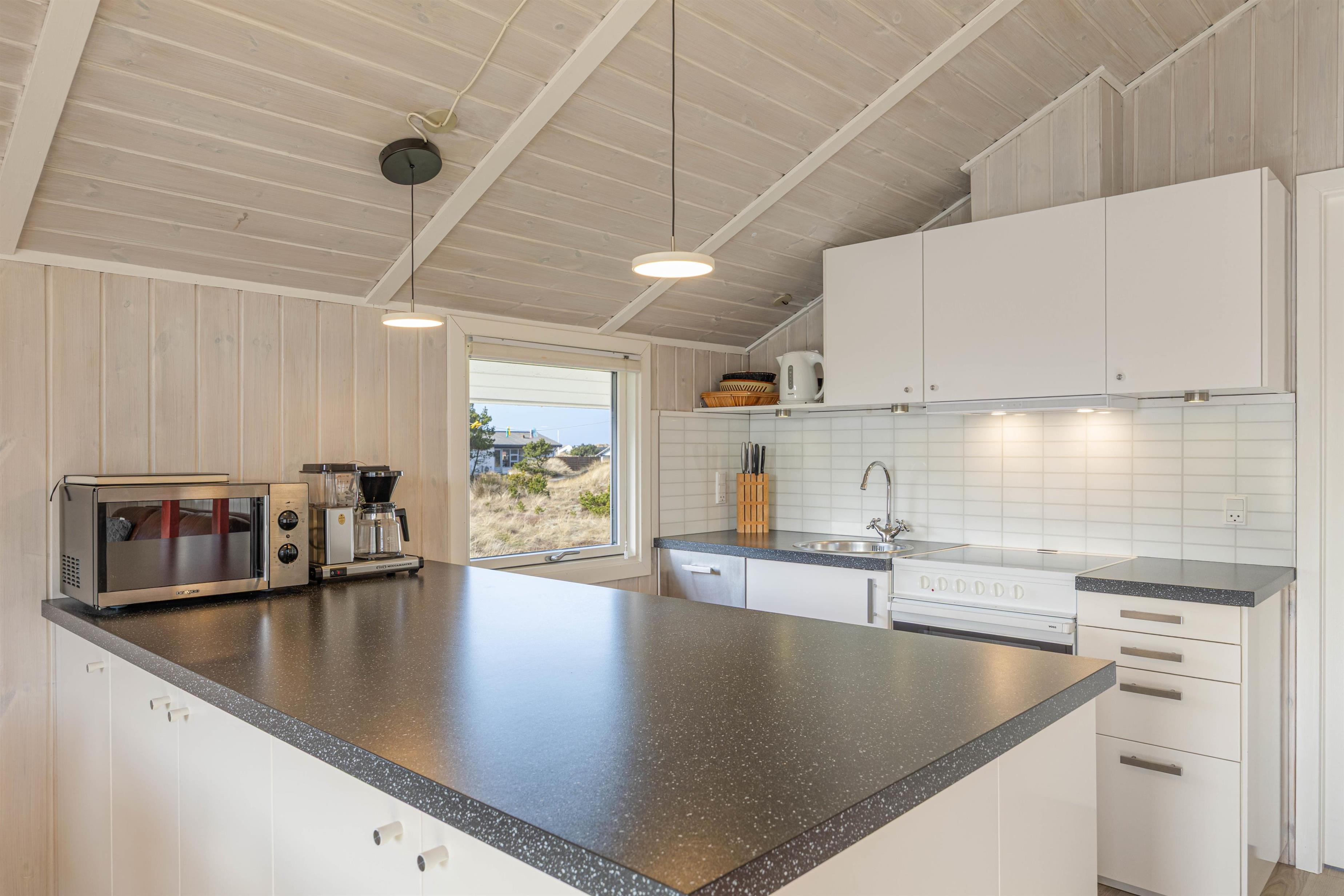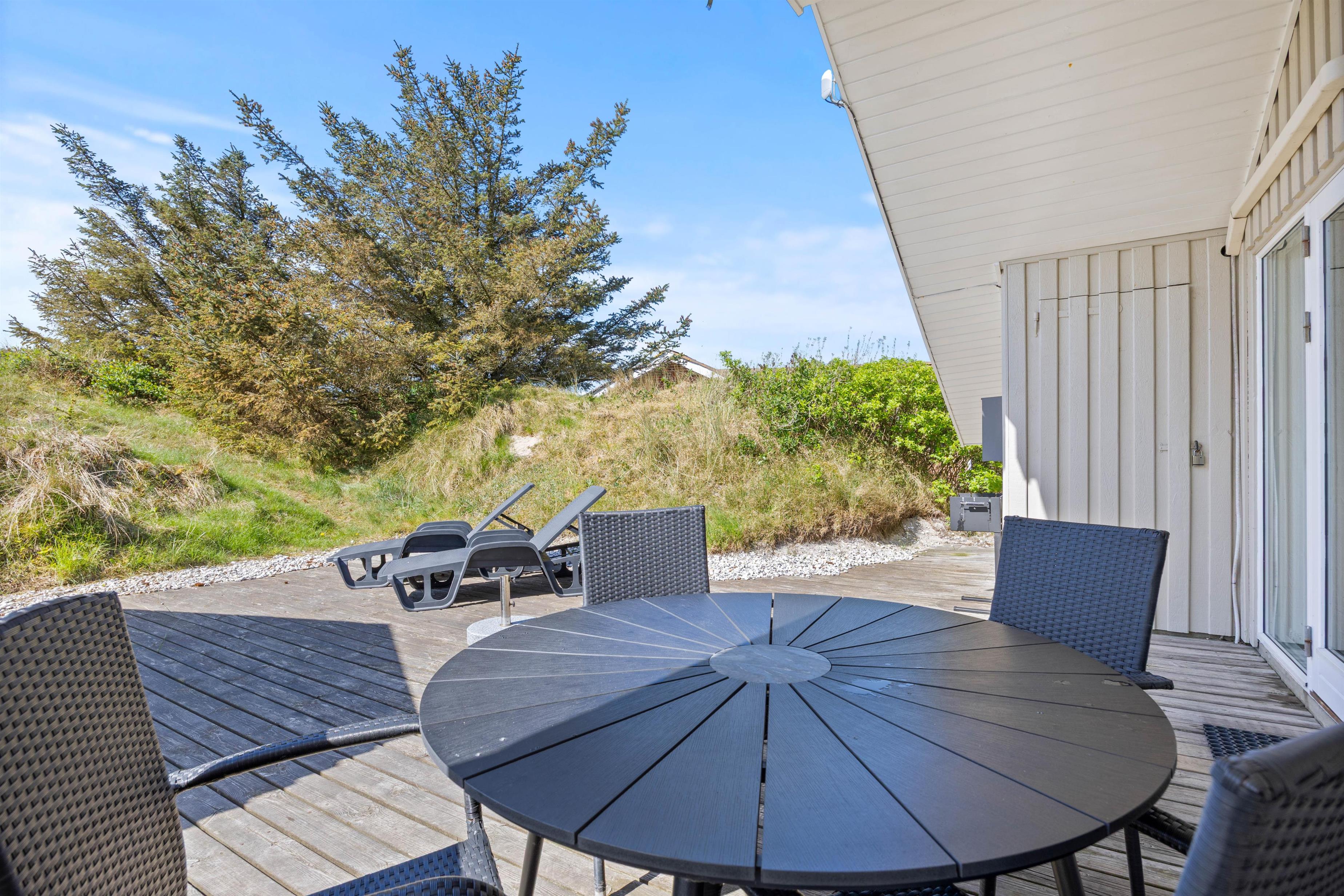 Sommerhuset ligger som det sidste hus på en lille, blind stikvej til Vesterledvej. Sommerhuset ligger dermed i et dejligt, roligt område, som er perfekt til børnene. Foruden terrassen og den omkringliggende natur har sommerhuset et godt legehus og en sandkasse, som børnene kan lege i. Fra sommerhuset er der 500 meter til stranden, som I uden tvivl kommer til at besøge flere gange, hvad enten det er, mens solen står allerhøjest på himlen eller til en smuk solnedgang.