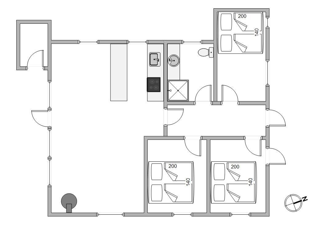 Sommerhuset er hyggeligt og personligt indrettet med klinker i stue og trægulv i soveværelser. Køkkenet ligger i åben forbindelse med stue og spiseplads. På den måde får en I følelse af at være sammen, selvom I laver forskellige ting. Børnene kan lege på stuegulvet, mens du læser en god bog i sofaen, og der laves mad i sommerhusets køkken. I skal naturligvis også have tændt op i brændeovnen i løbet af ferien. Den sørger ikke blot for en dejlig varme, men også en ekstra hyggelig feriestemning.