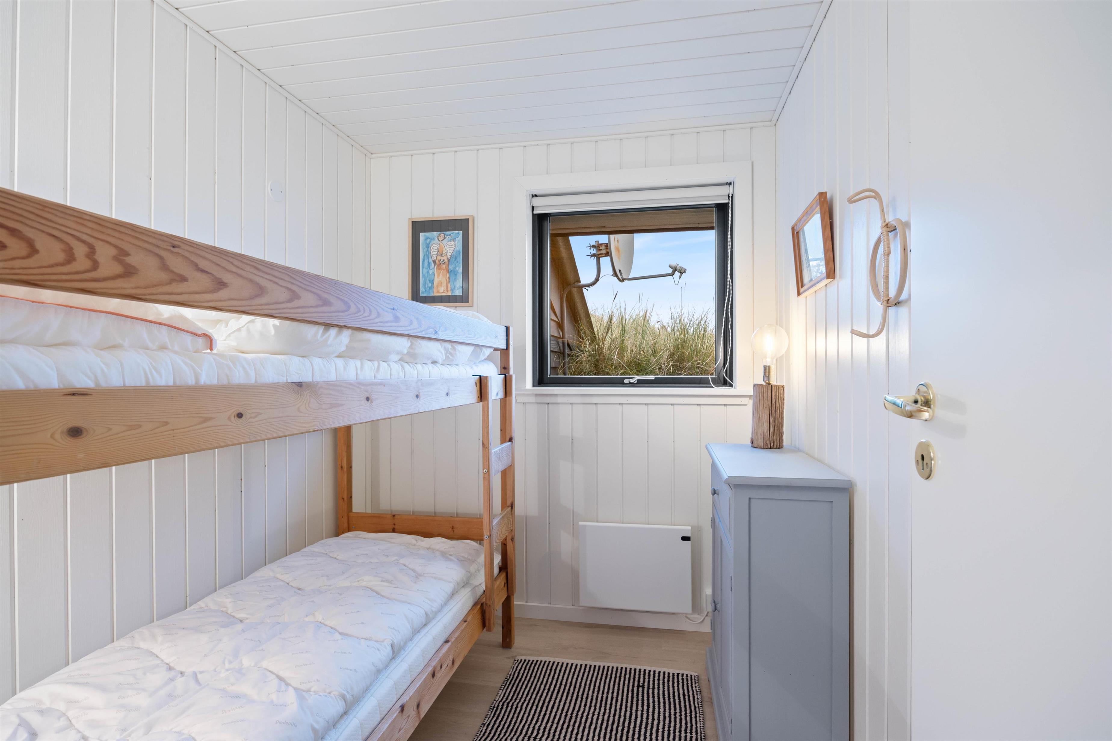 De 3 soveværelser indeholder i alt 6 sengepladser, 2 soveværelser med komfortable dobbeltsenge og 1 soveværelse med etagesenge, som børnene vil elske.