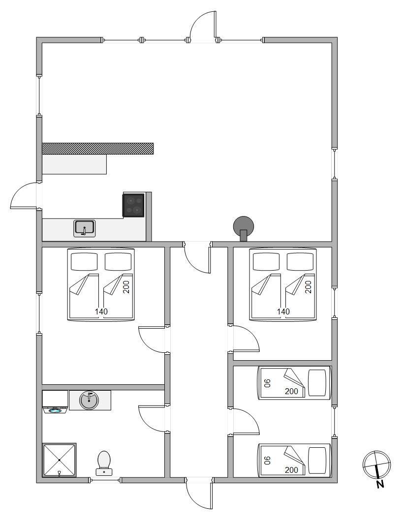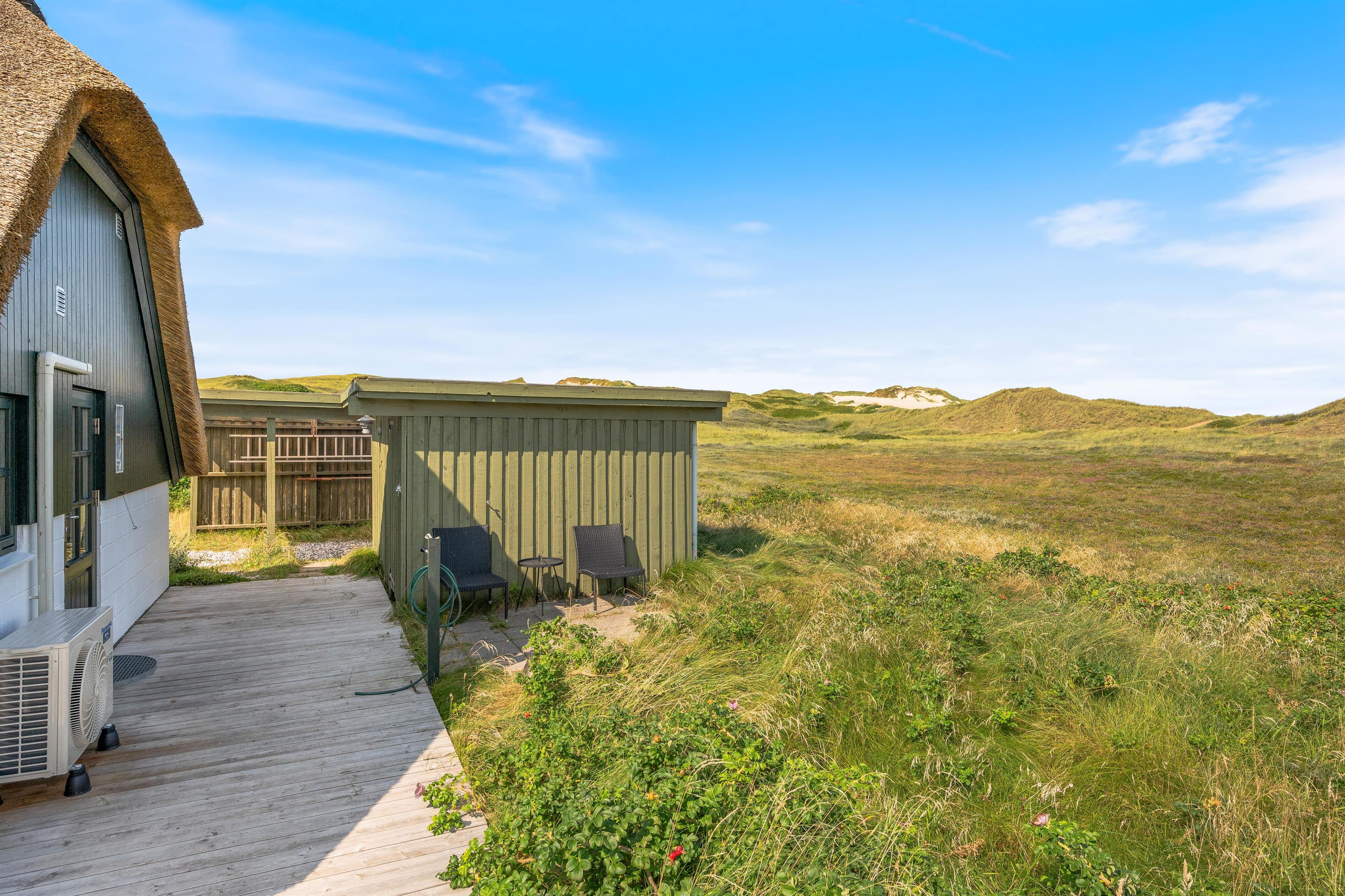 Sommerhuset ligger i udkanten af sommerhusområdet i Haurvig og I kan derfor nyde den uspolerede udsigt over hede og klitter mod nord. Og går I i den anden retning er I på få minutter ved den nærmeste opgang til stranden og Vesterhavet. Bedre bliver det næsten ikke.