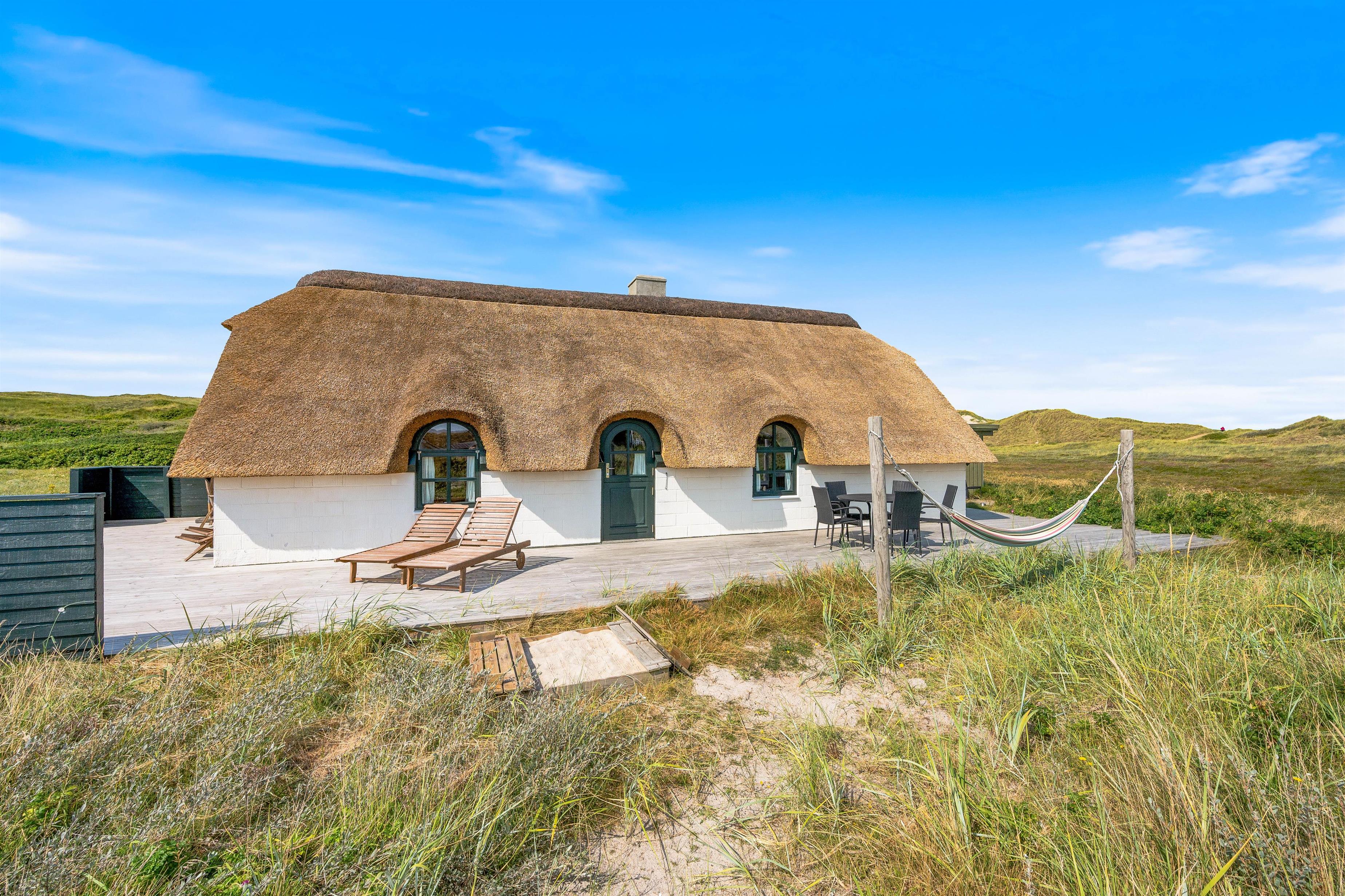 Kom helt tæt på naturen og det brusende Vesterhav med en ferie i dette autentiske stråtækte sommerhus i smukke omgivelser på heden i det rolige Haurvig. Feriehuset på Havbjergevej 22 danner de perfekte rammer for en skøn ferie for op til 5 personer og to hunde.