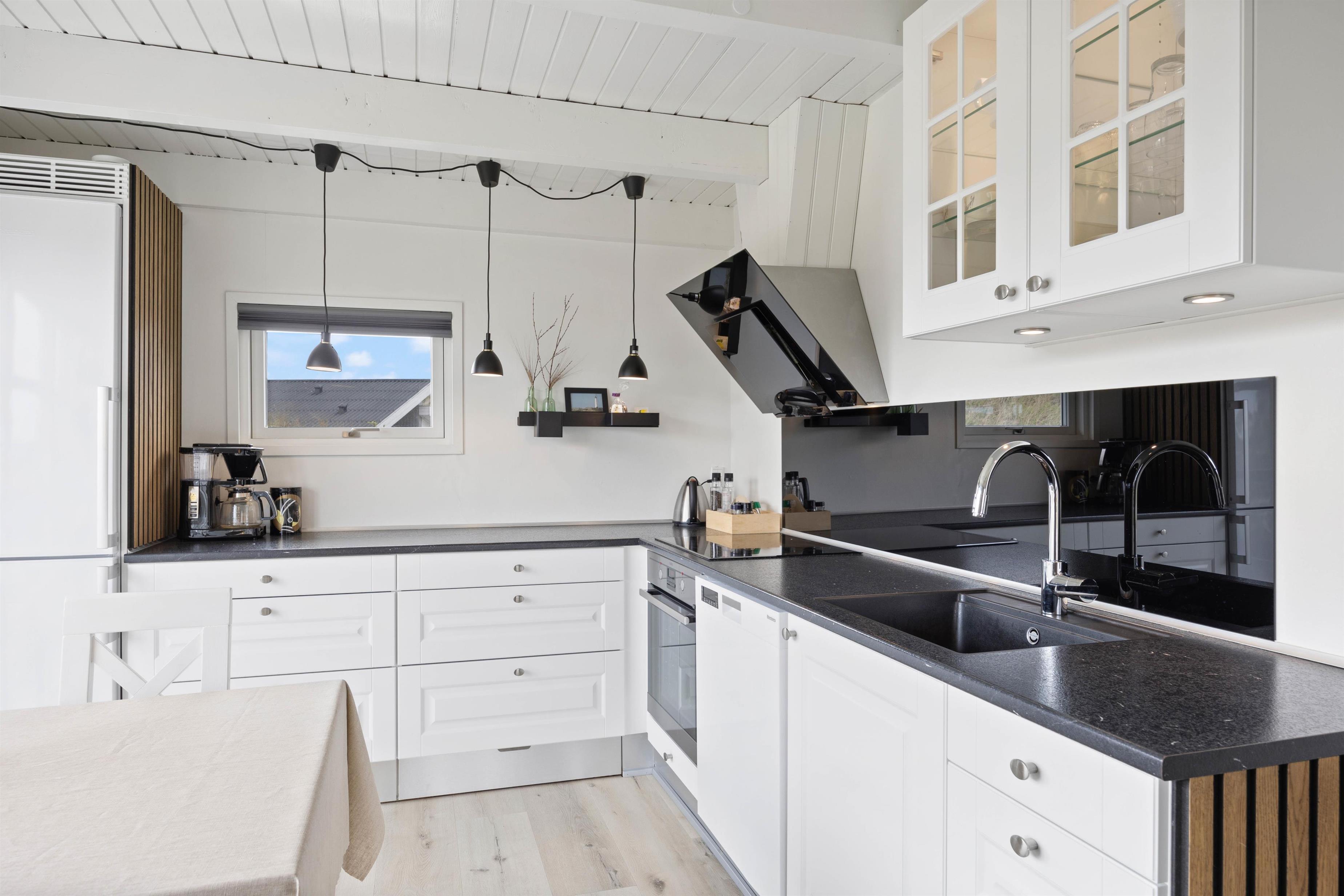 I vil hurtigt føle jer hjemme i dette kærligt indrettede sommerhus med hyggelig atmosfære. Her kan I læne jer tilbage i de komfortable siddepladser og se en god film med en pose bland selv-slik. I kan tænde op i brændeovnen, der kan knitre i baggrunden og sprede varme, hvilket kombineret skaber en ekstra hyggelig feriestemning. Desuden kan I også opvarme sommerhuset med den energibesparende varmepumpe.