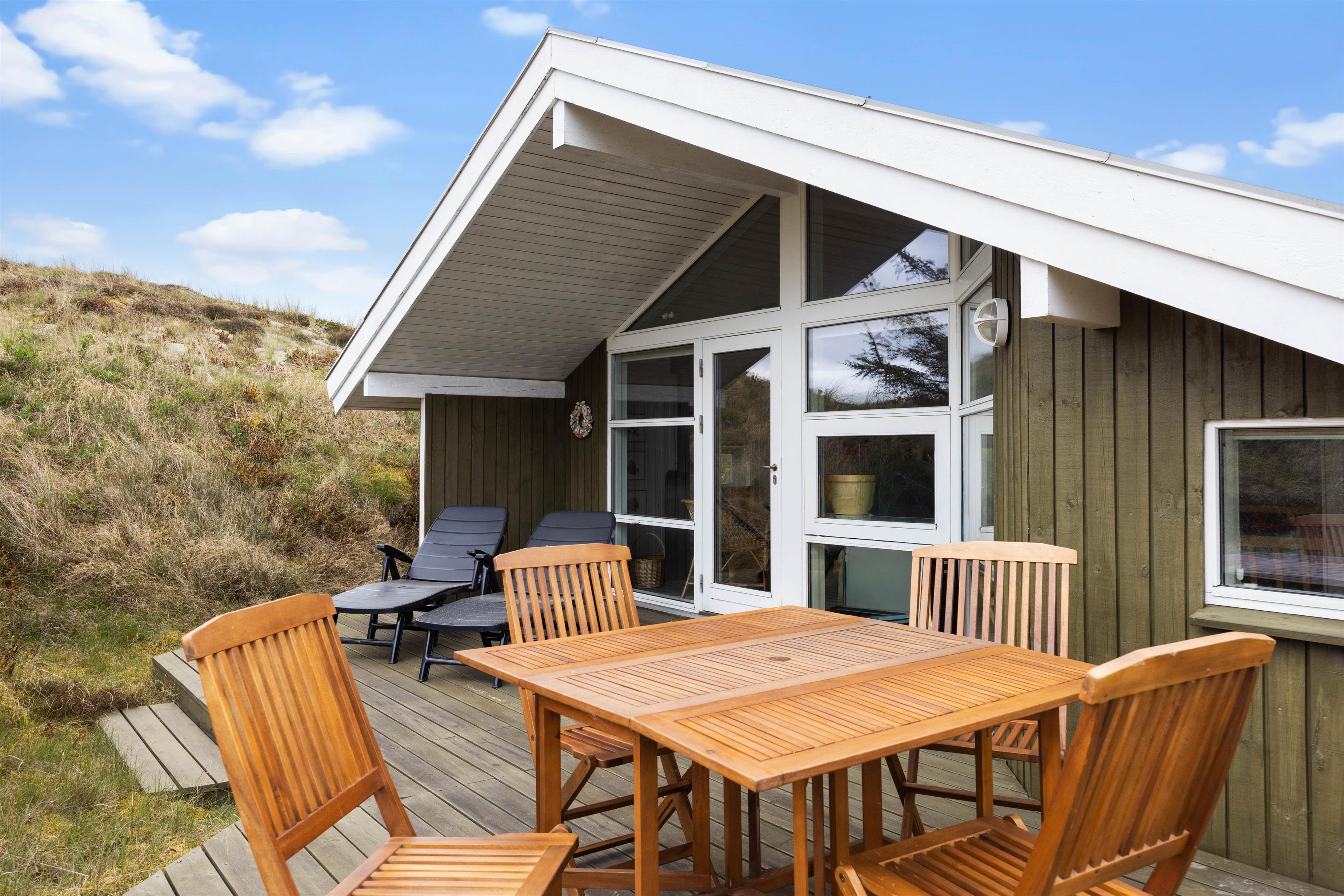 Sommerhuset har en god, afskærmet terrasse, som indbyder til afslapning på lune sommerdage. Til aften kan I naturligvis tænde op i sommerhusets gasgrill. Sæt jer godt til rette i havemøblerne og lad familiens grillmester stege saftige bøffer, kyllingespyd og pølser. Eller måske friskfanget fisk, som I selv har fanget i Ringkøbing Fjord.