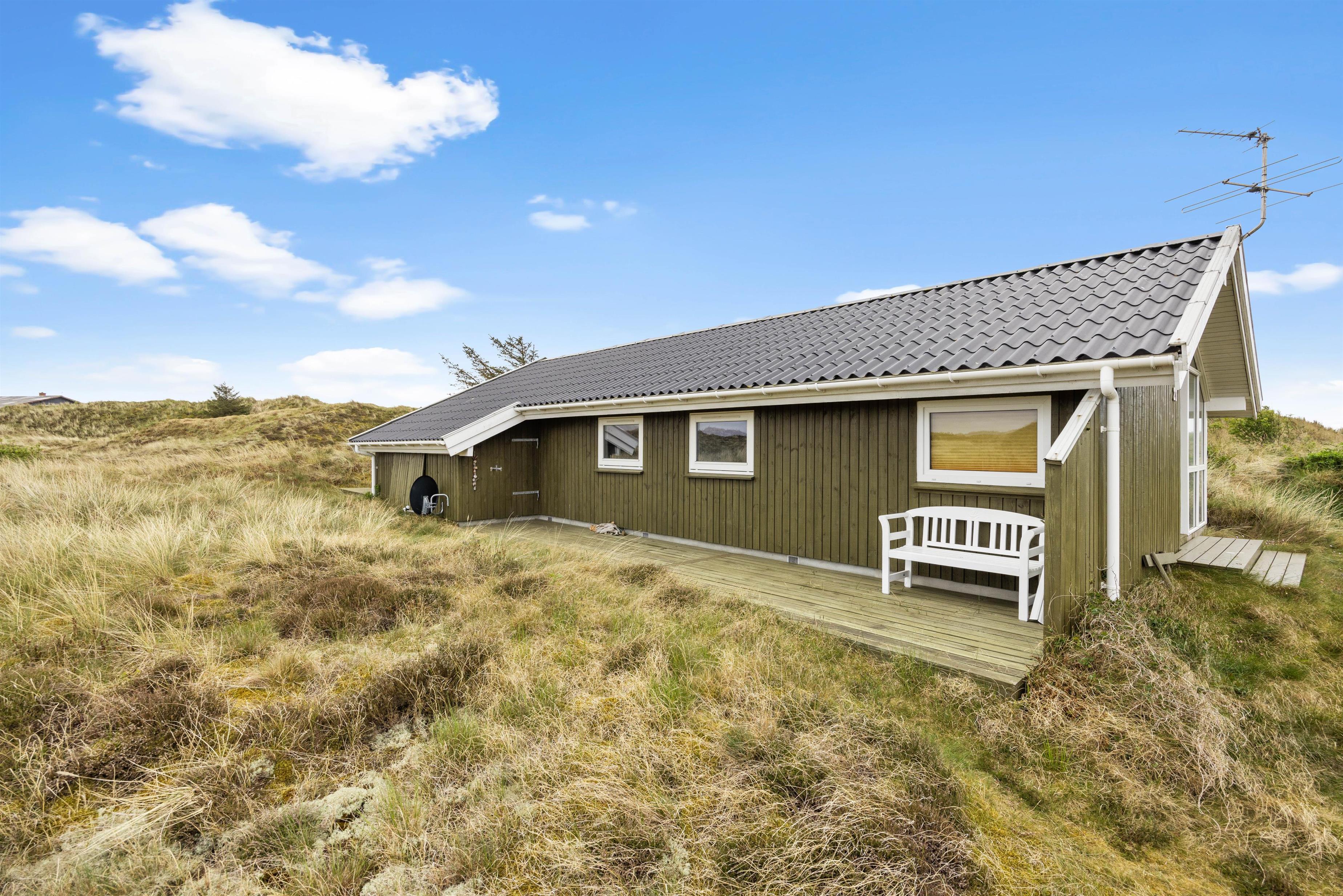 På Fjordbjerrevej 21 i Haurvig ligger dette hyggelige sommerhus til 4 personer. Her kan I holde en afslappende ferie på Holmsland Klit nær Vesterhavet og Ringkøbing Fjord. I sommerhuset kan I hygge jer foran brændeovnen eller på den afskærmede terrasse, hvor havemøbler, liggestole og grill står klar til jer.