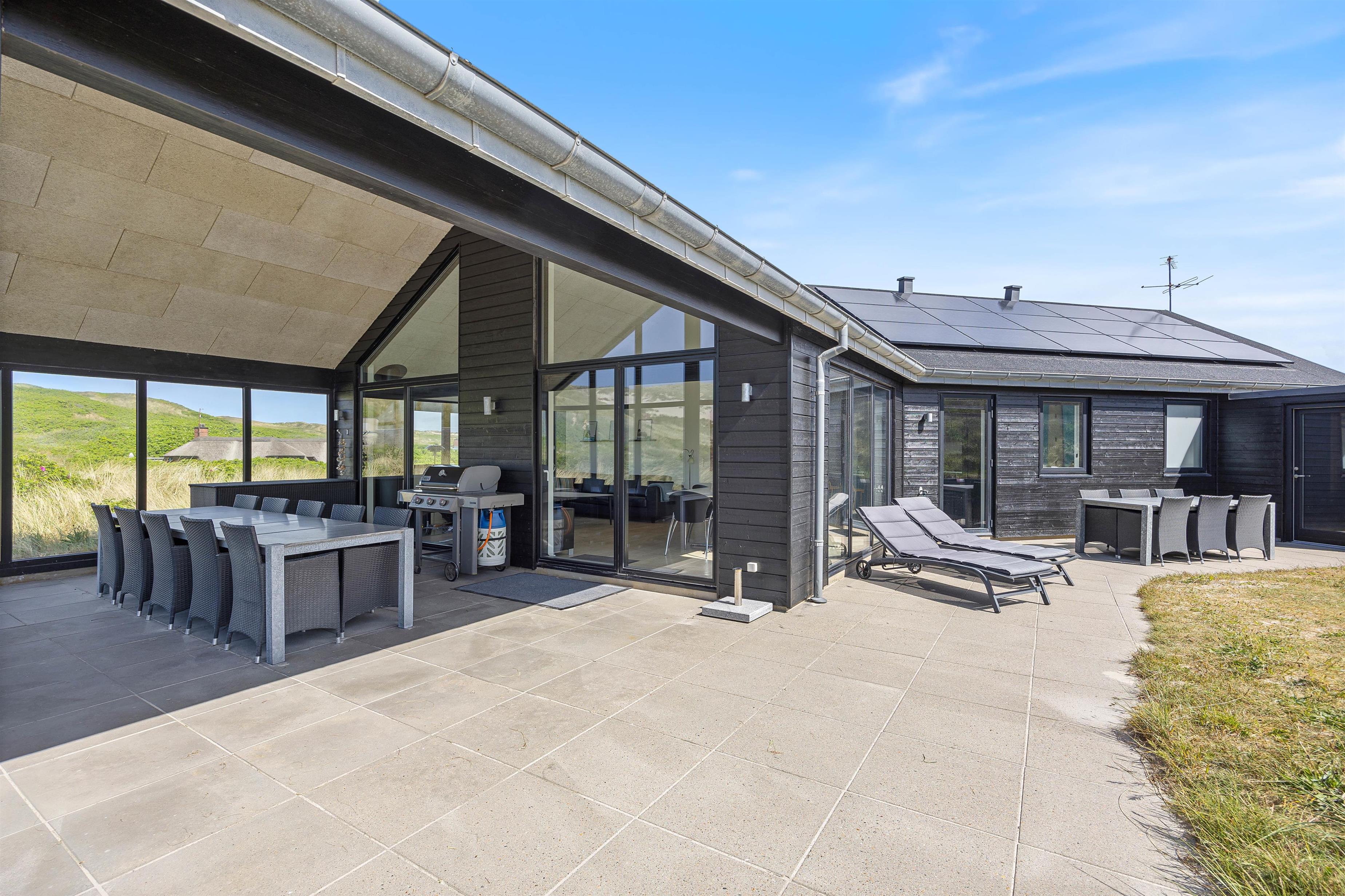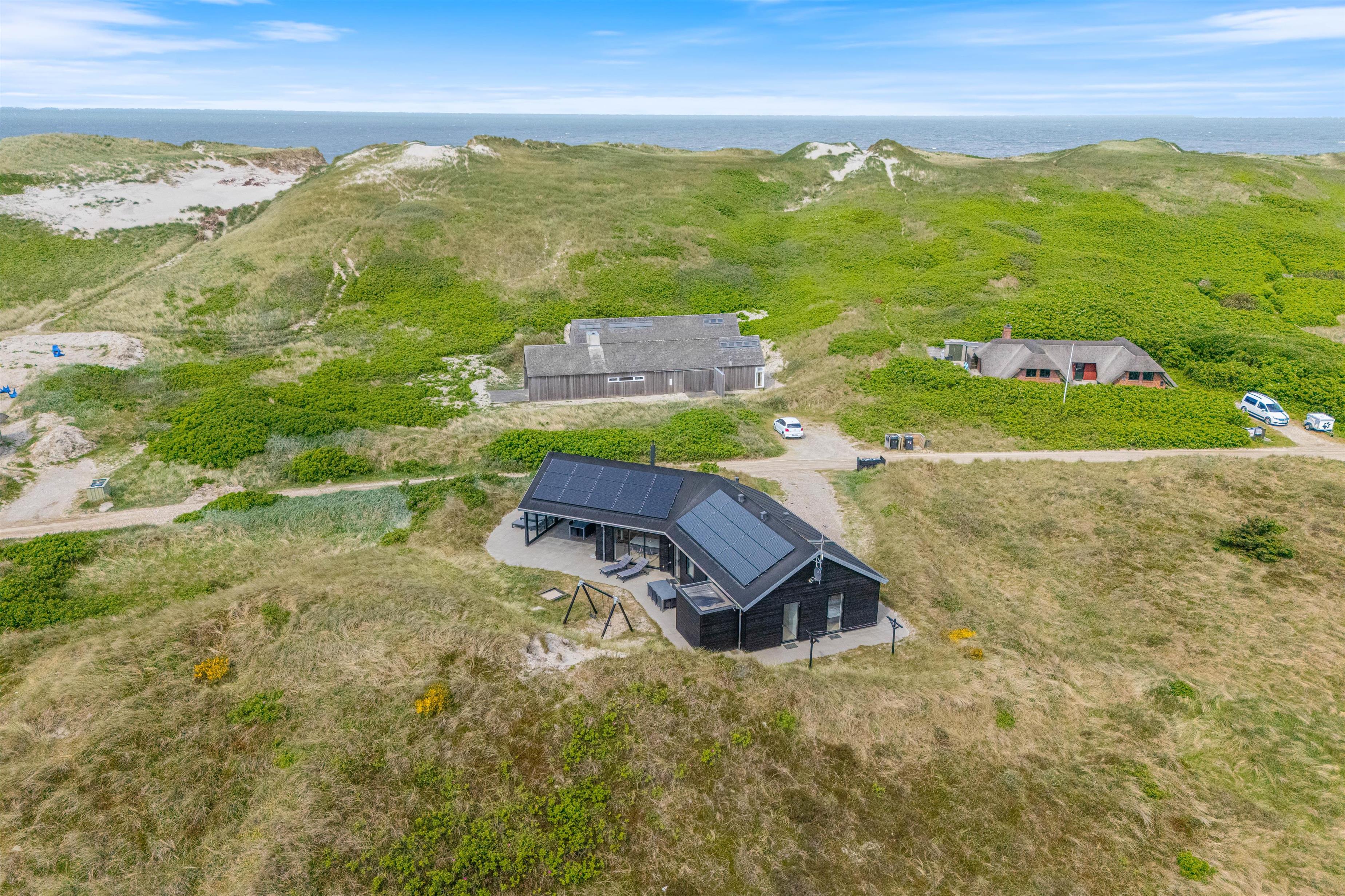 Et yderst lækkert sommerhus beliggende på en kuperet klitgrund i Haurvig kun 150 meter fra Vesterhavet. Et rummeligt sommerhus med al tænkelig komfort og en gennemtænkt indretning. Her får I et stort alrum, hvor hele familien kan samles, spa og sauna, to soveværelser med eget bad og tv. Ankommer I med el-bil, kan I oplade den her såfremt eget kabel medbringes.