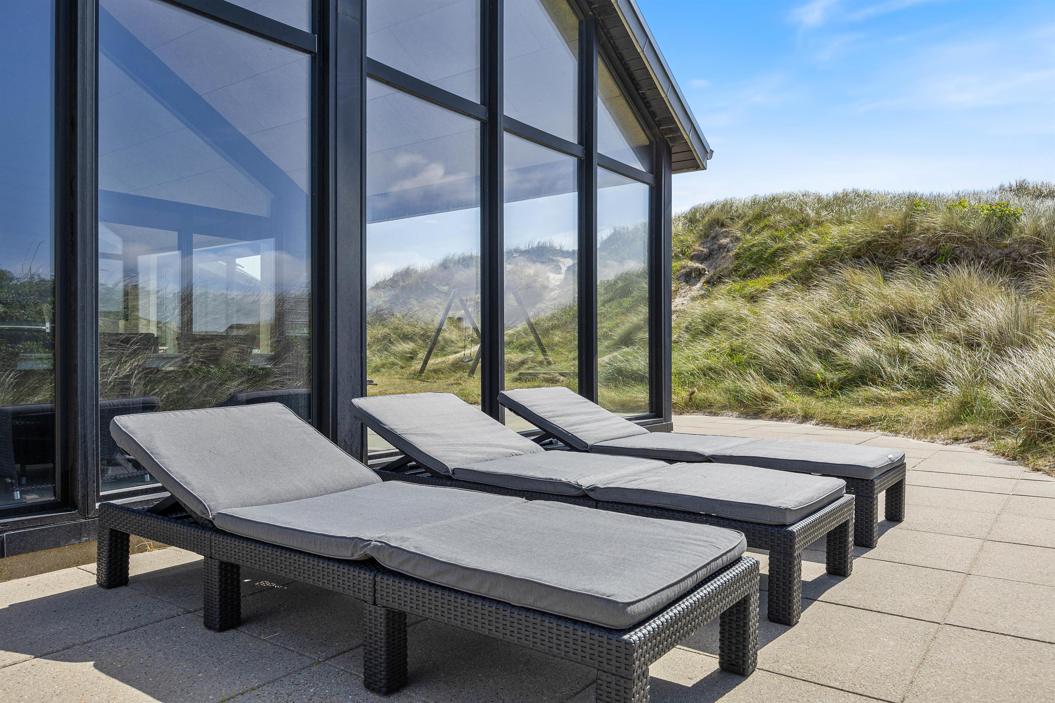 Oplev naturen, fjorden, hedeområderne og klitterne lige udenfor døren. Luksussommerhuset med den skønne beliggenhed er kun 150 meter fra Vesterhavet og midt i den skønne natur – og området her er kendetegnet ved gode cykelstier – igennem sommerhusområdet – væk fra vejen og lige bag klitterne.