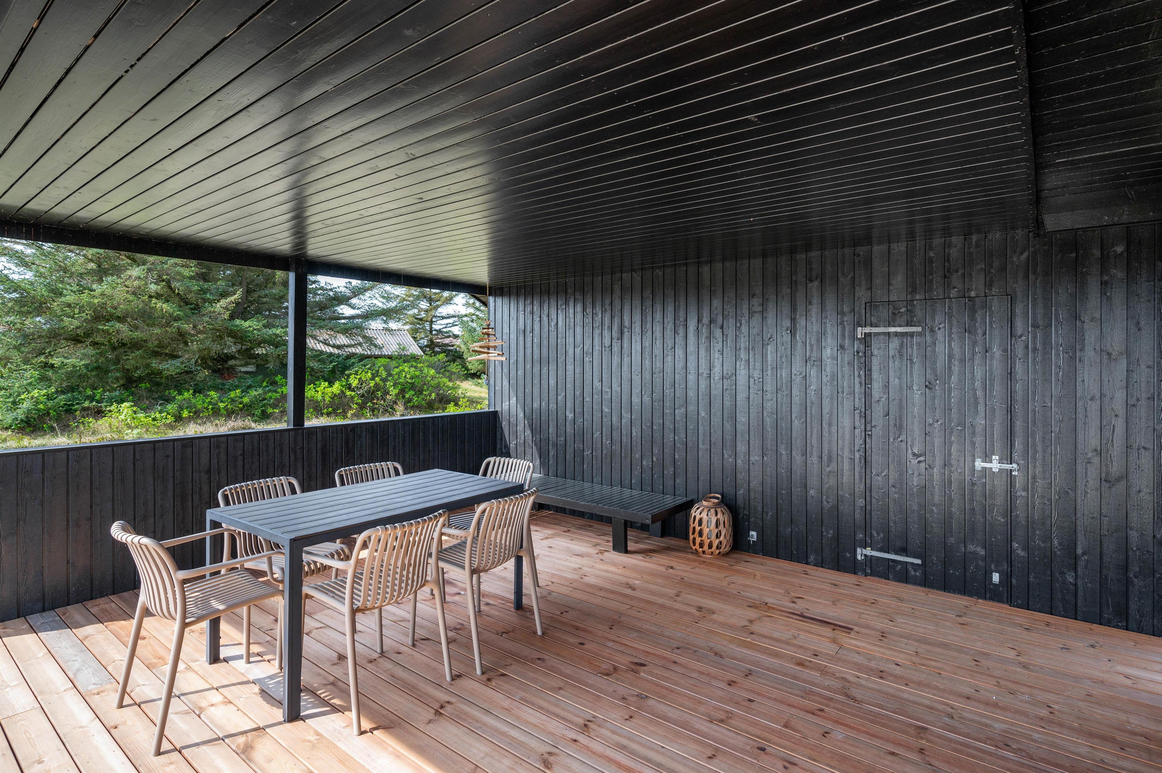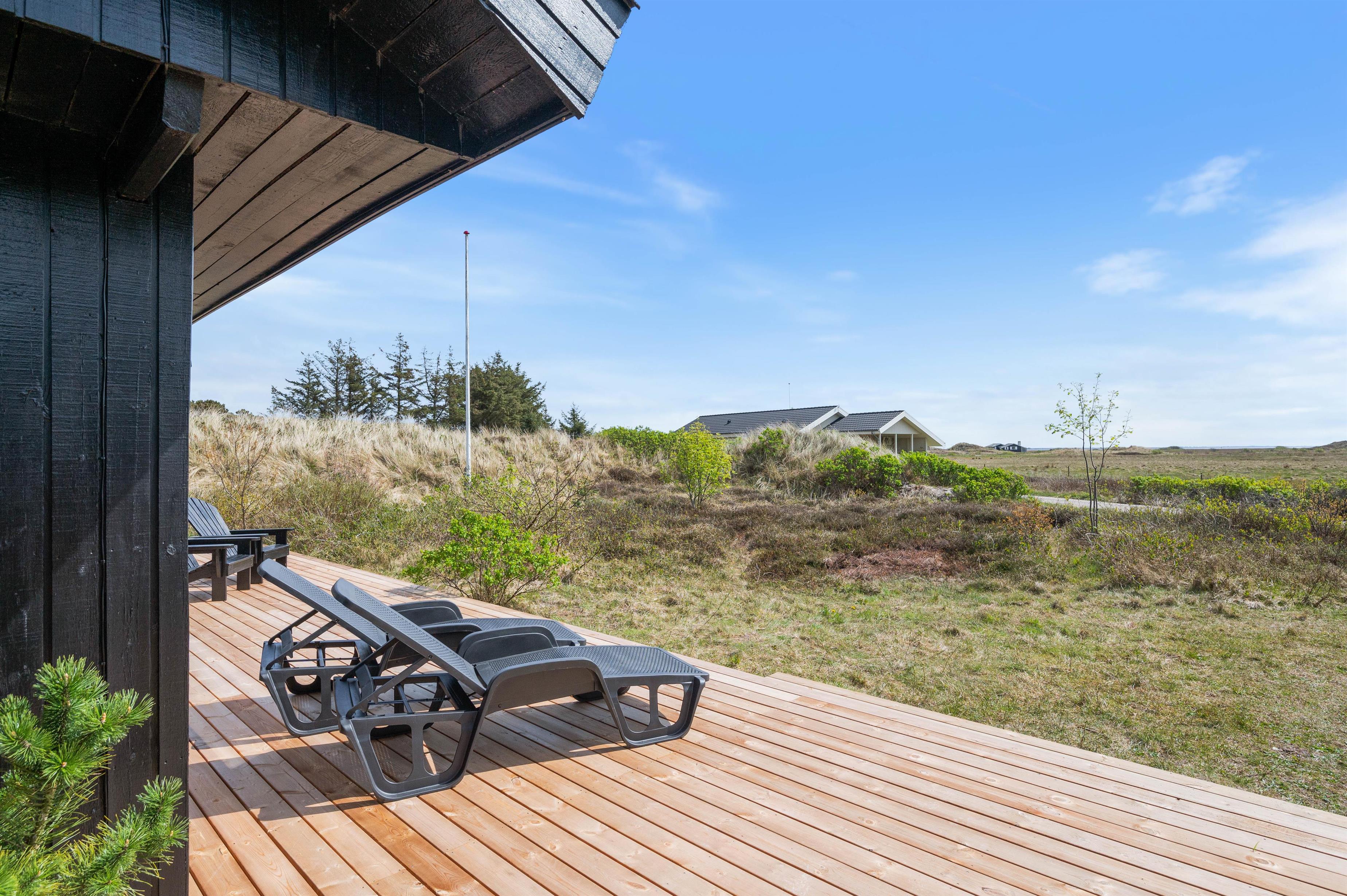 På den store, kuperede naturgrund venter terrassen på jer. Her står havemøblerne klar, så I kan nyde solen og den friske luft. Sæt dig en tidlig morgen på den sydvendte træterrasse, mens solen stiger op, og nyd en friskbrygget kop kaffe. Fra denne beliggenhed har du panoramaudsigt og fjordblik til Ringkøbing Fjord – ren balsam for sjælen.