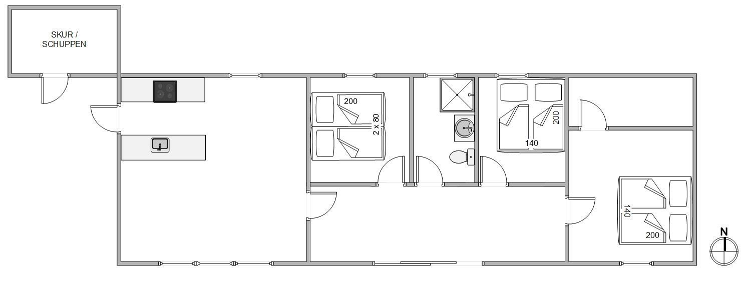Sommerhuset emmer af feriestemning og er ideelt til ferie med både familie og venner. Den personlige stil kombineret med den lyse og indbydende indretning skaber en hyggelig atmosfære, hvor I hurtigt vil føle jer hjemme. På de 79 m² finder I 3 værelser, et badeværelse samt et dejligt alrum.