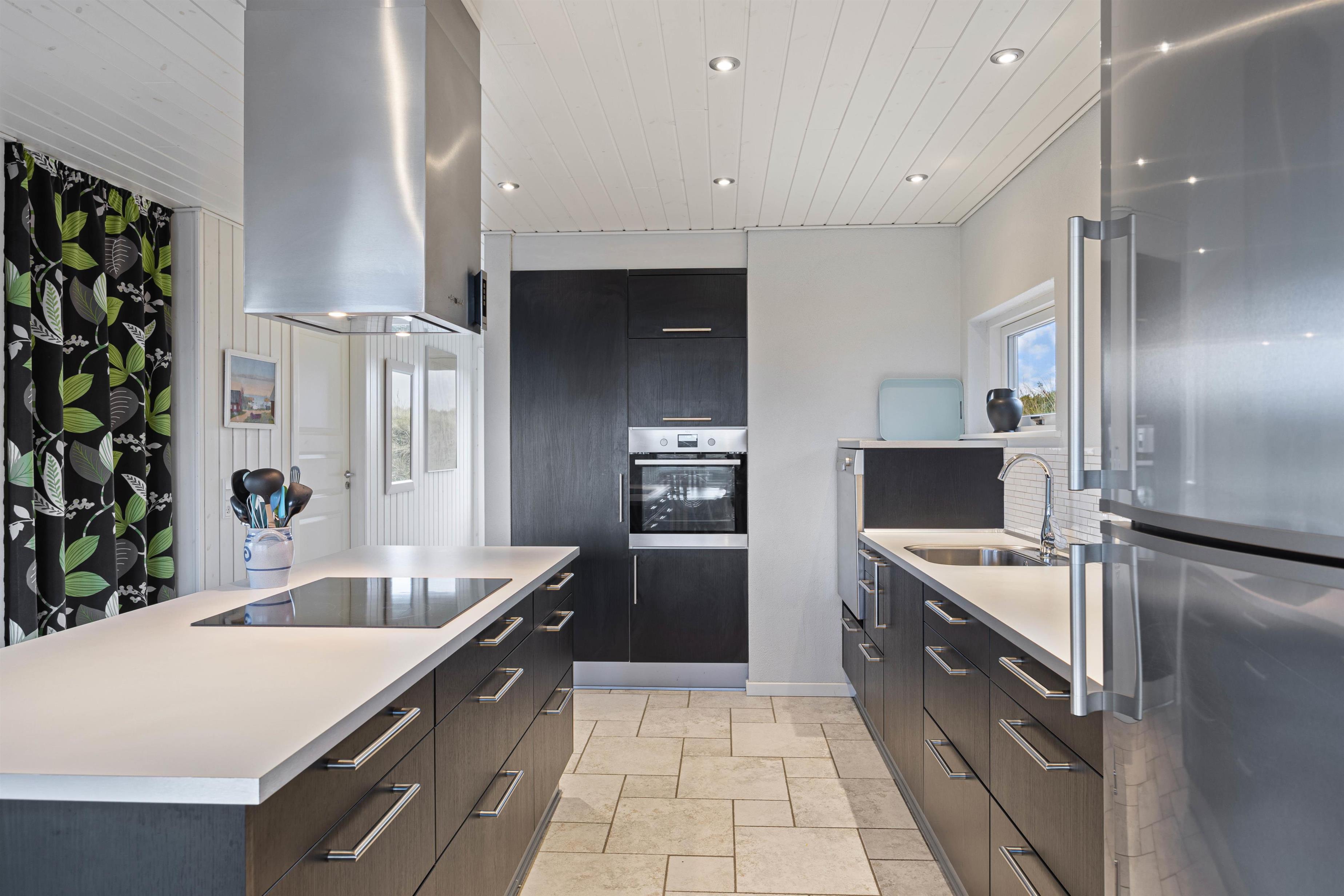 På Vinterlejevej 53 vil I føle jer hjemme, så snart I træder ind ad døren. I stueetagen bydes I velkommen af et rummeligt opholdsrum med åbent køkken og spiseplads. Her kan I sætte jer godt til rette i sofaen og se en film eller tilberede lækre måltider i det veludstyrede køkken, hvor I blandt andet finder induktionskogeplade, opvaskemaskine og en 60-liters fryser. Nyd morgenmaden eller en drink ved køkkenøen imens en lækker middag tilberedes. Køb eventuelt frisk fisk med hjem fra Hvide Sande, hvor der er mange fiskebutikker med et varieret udvalg af det lokale guld.