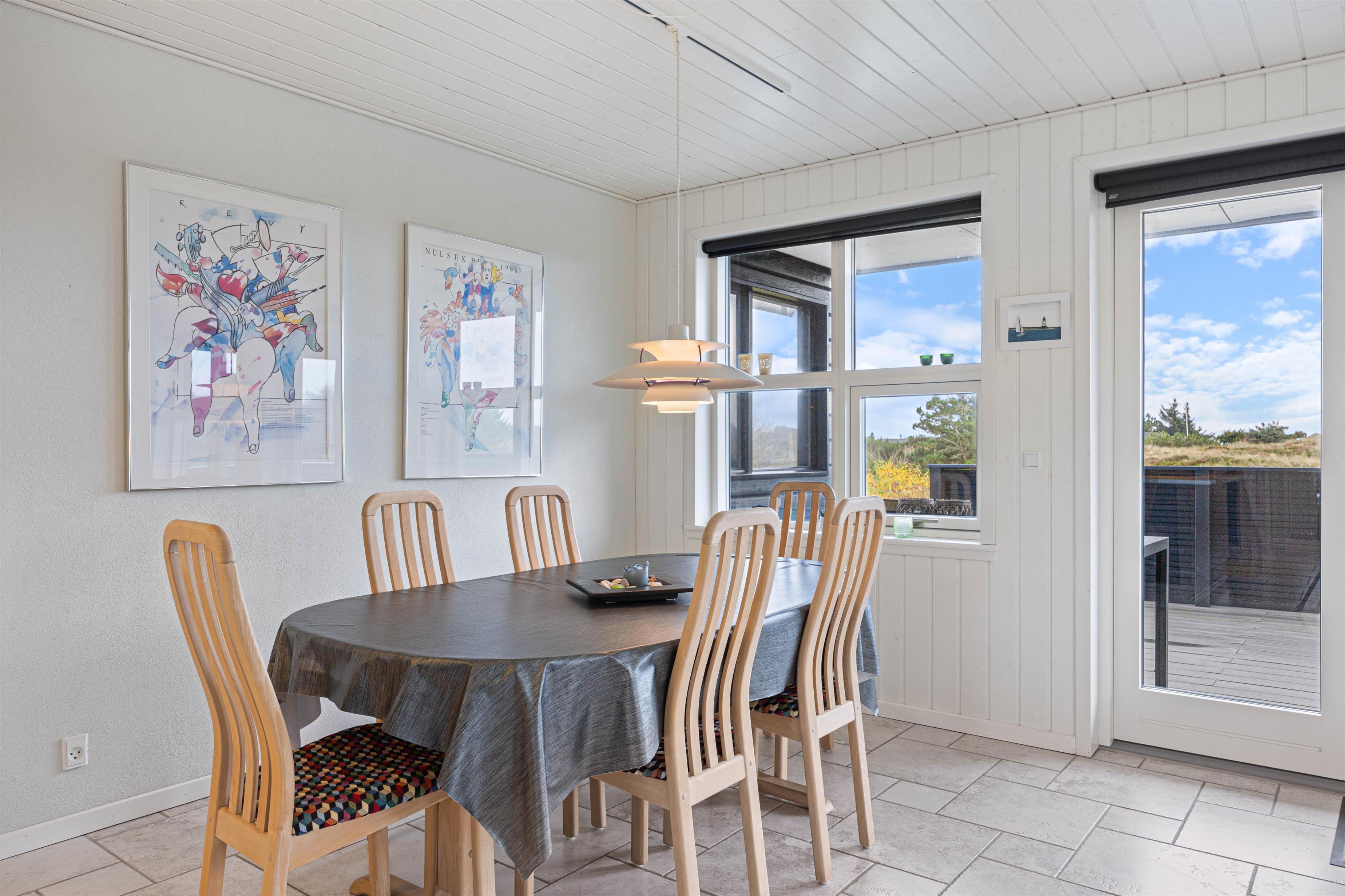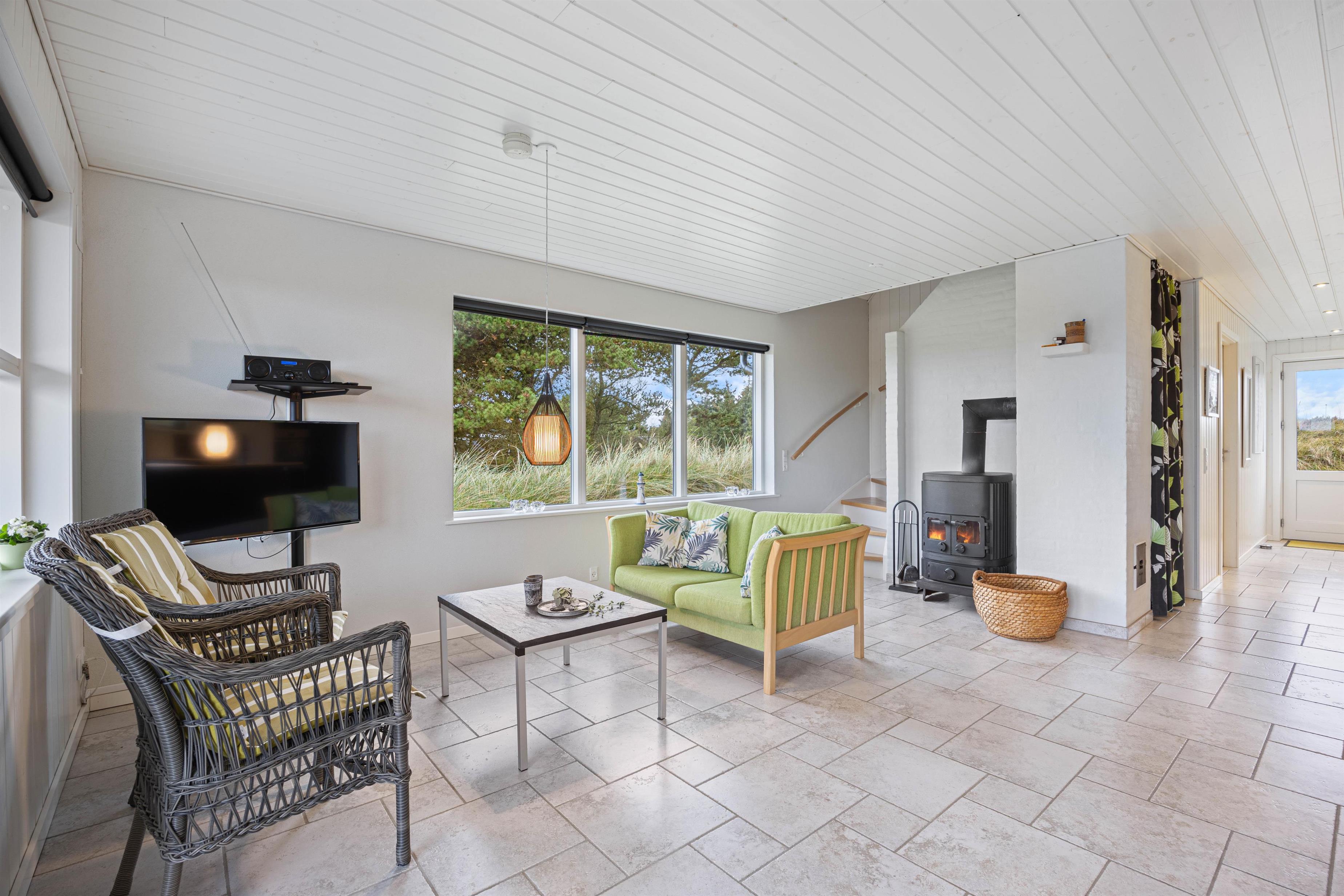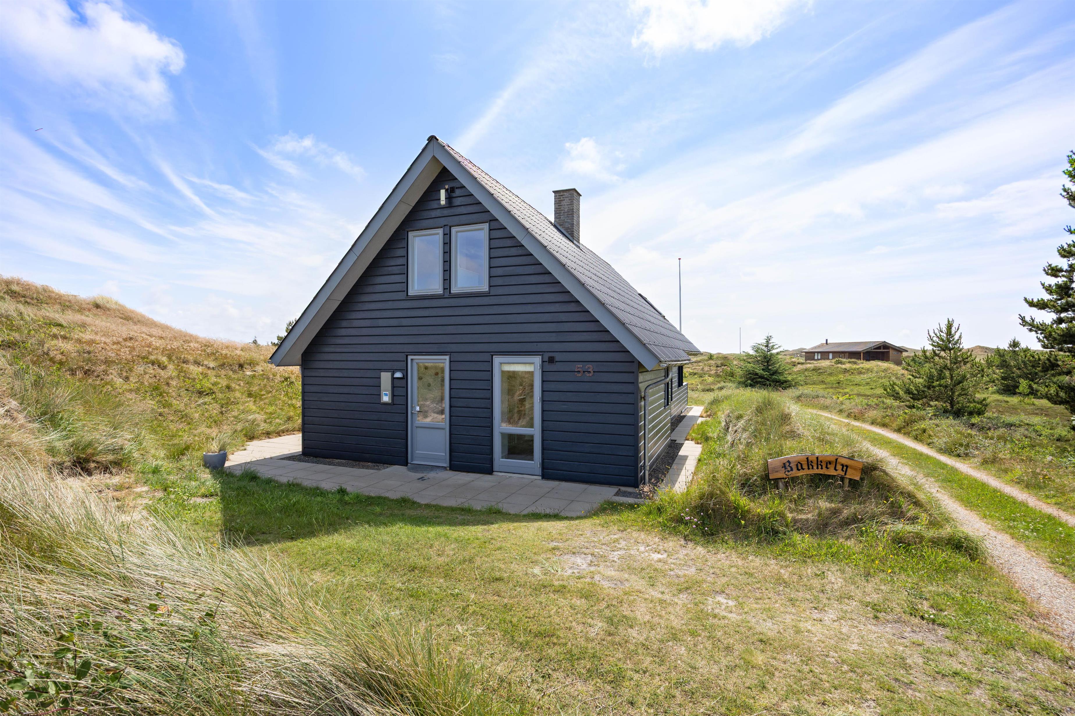 Sommerhuset på Vinterlejevej 53 ligger idyllisk mellem klitter og hede på en 2500 m² stor naturgrund. På den sydvendte terrasse, som er delvist overdækket, finder I hyggelige havemøbler, som indbyder til afslapning i den friske luft. Der er også en grill til rådighed, så I kan nyde et lækkert grillmåltid sammen imens skyggerne bliver lange. En aftentur til Ringkøbing Fjord vil være en dejlig afslutning på feriedagen.