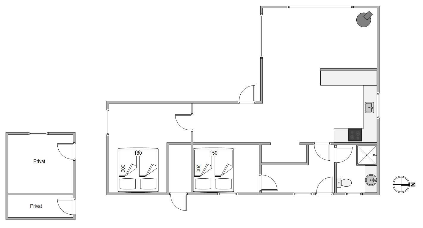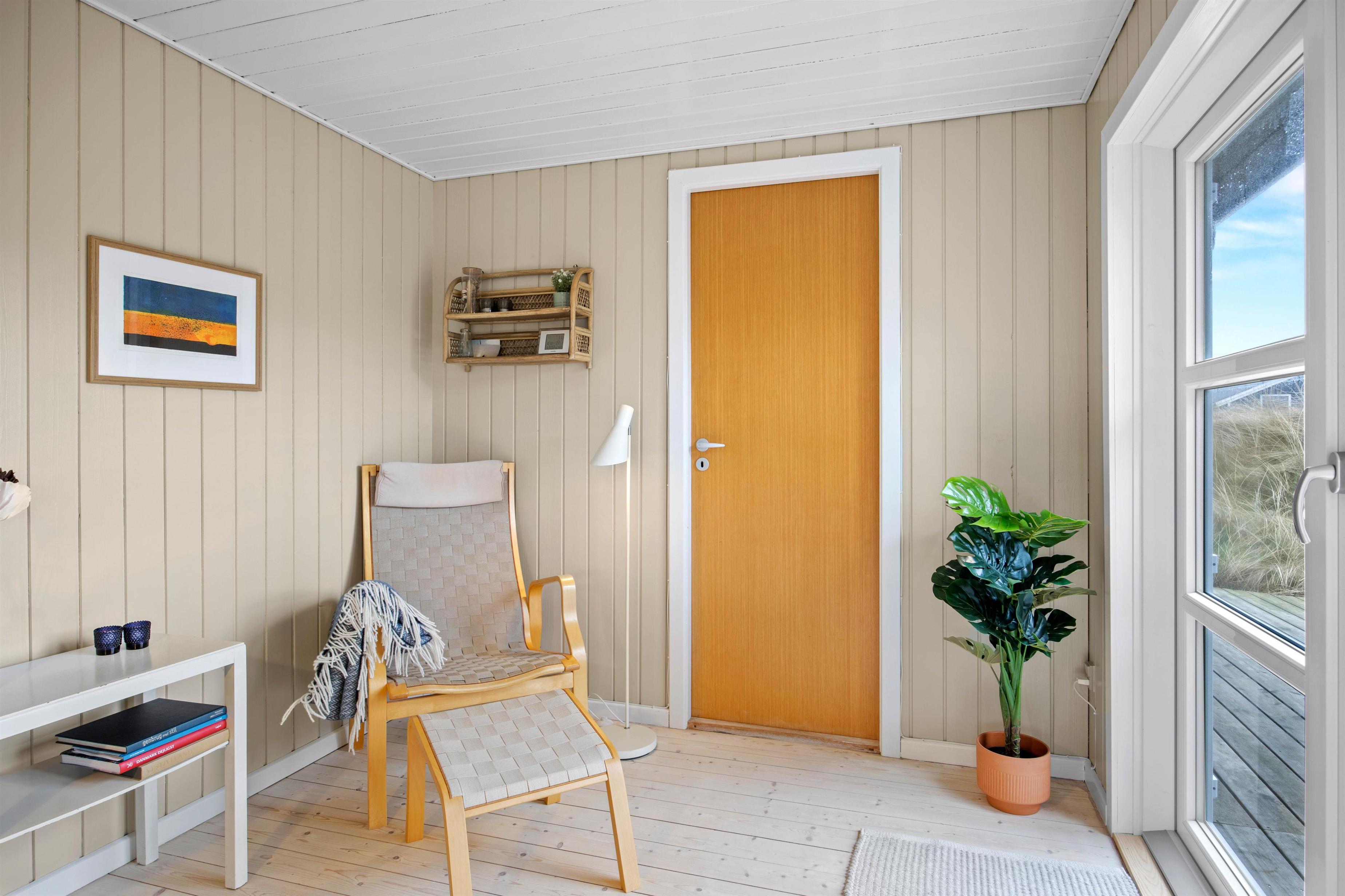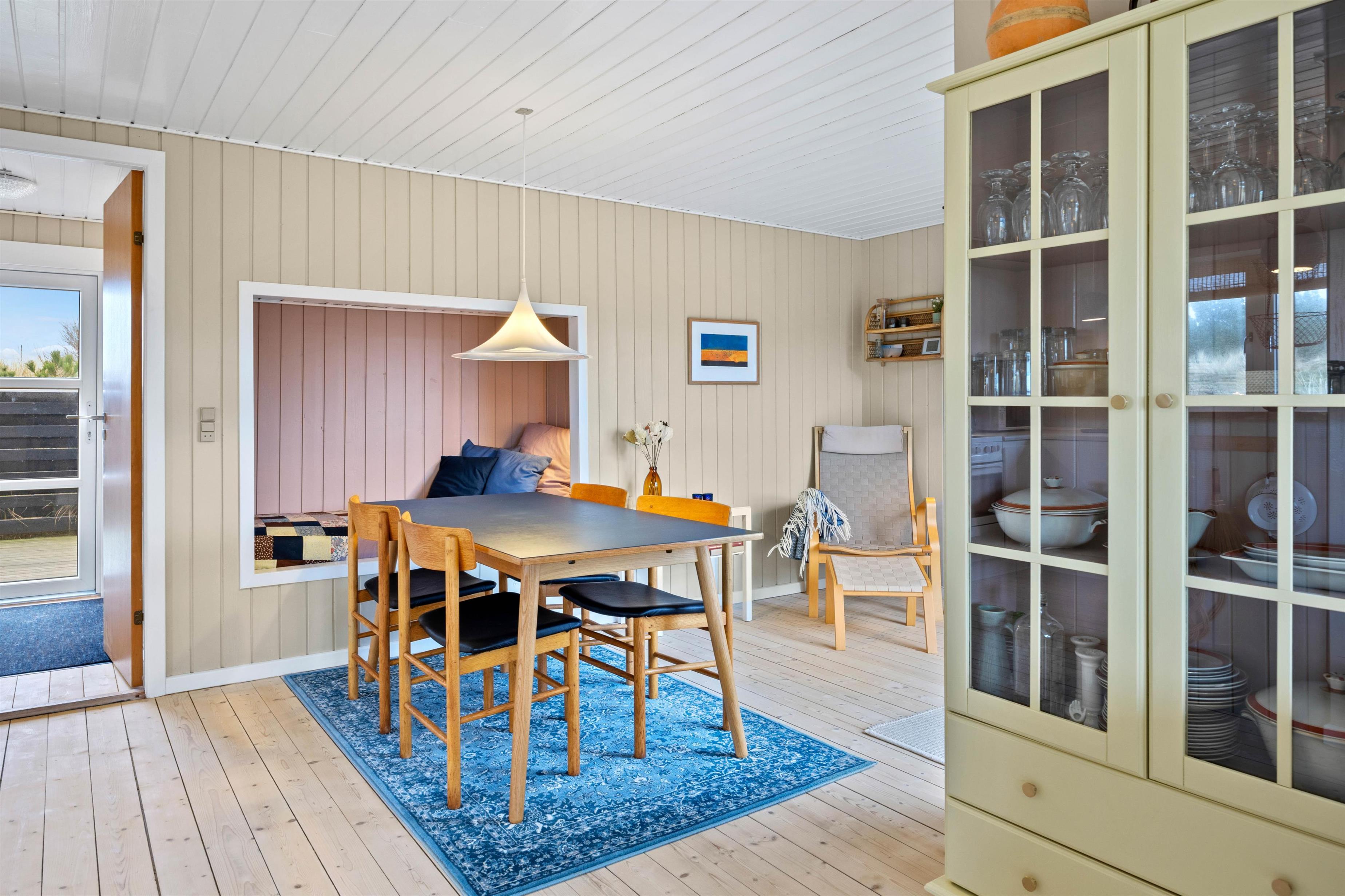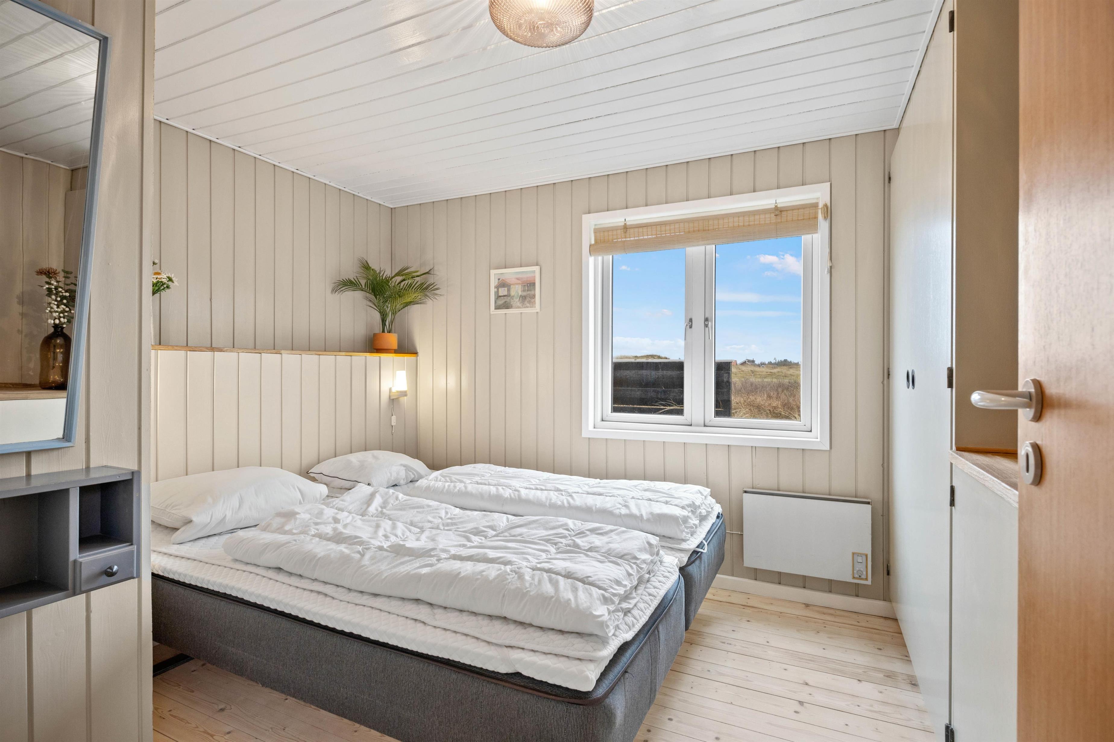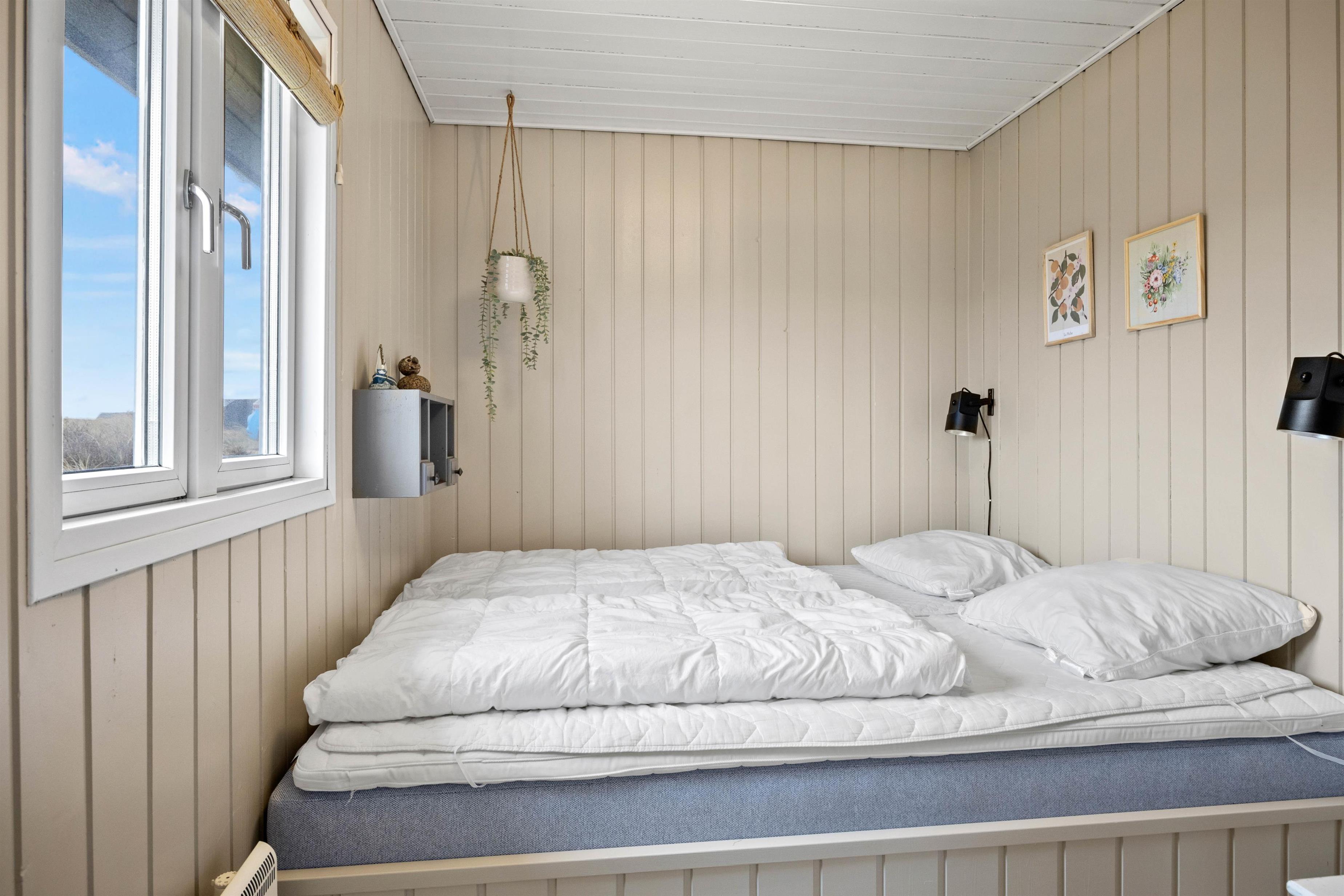 De to komfortabelt indrettede soveværelser indeholder hver en dobbeltseng, hvor I kan hvile ud i den friske vesterhavsluft efter dagens strabadser. Derudover er der også en ekstra sengeplads i sommerhusets hyggelige alkove.