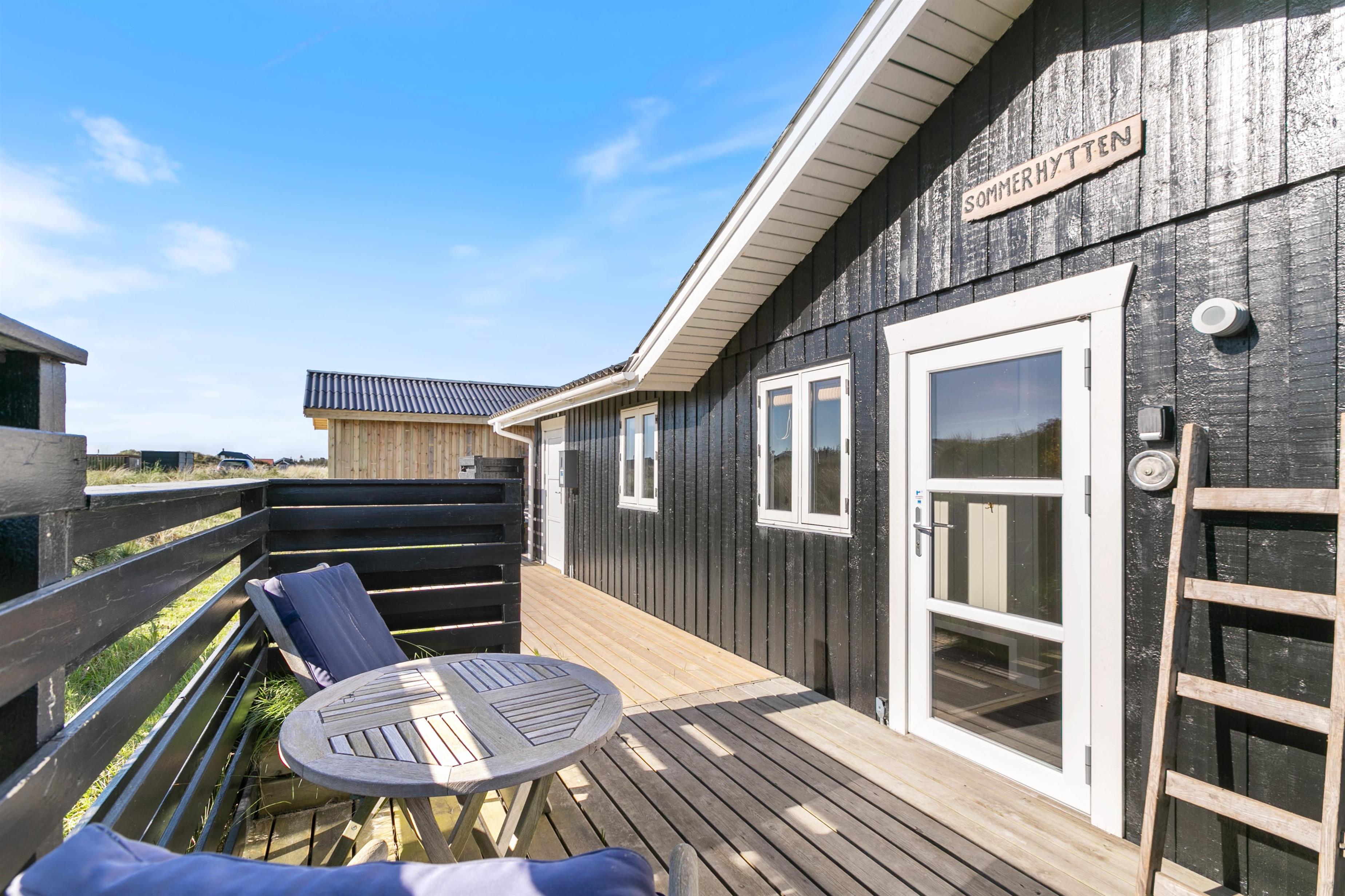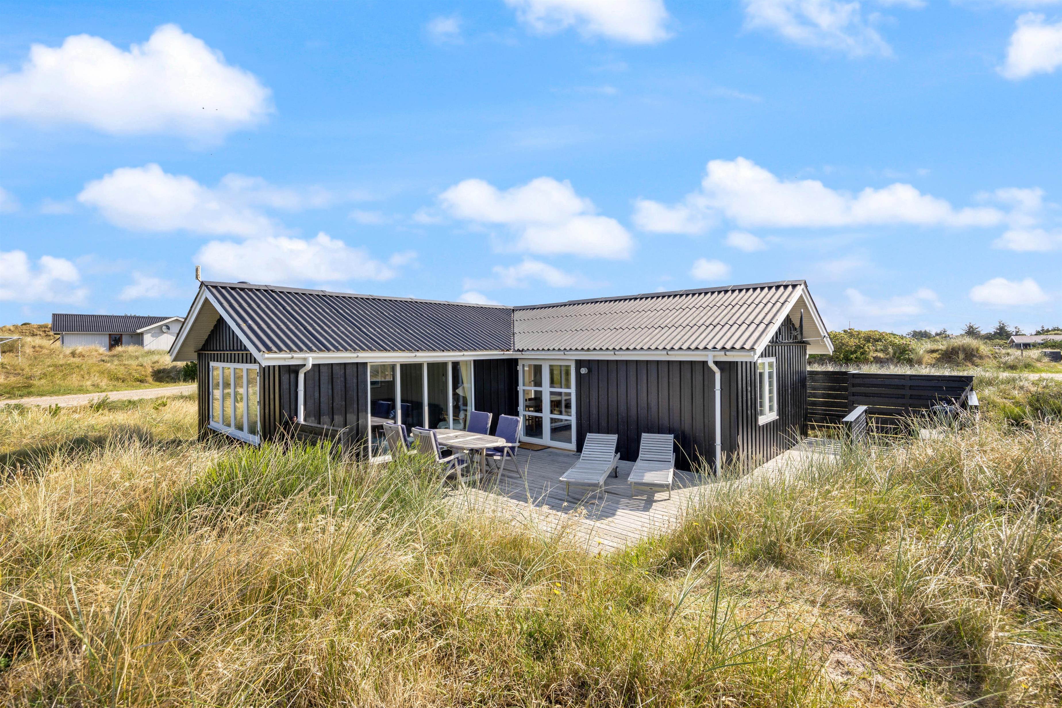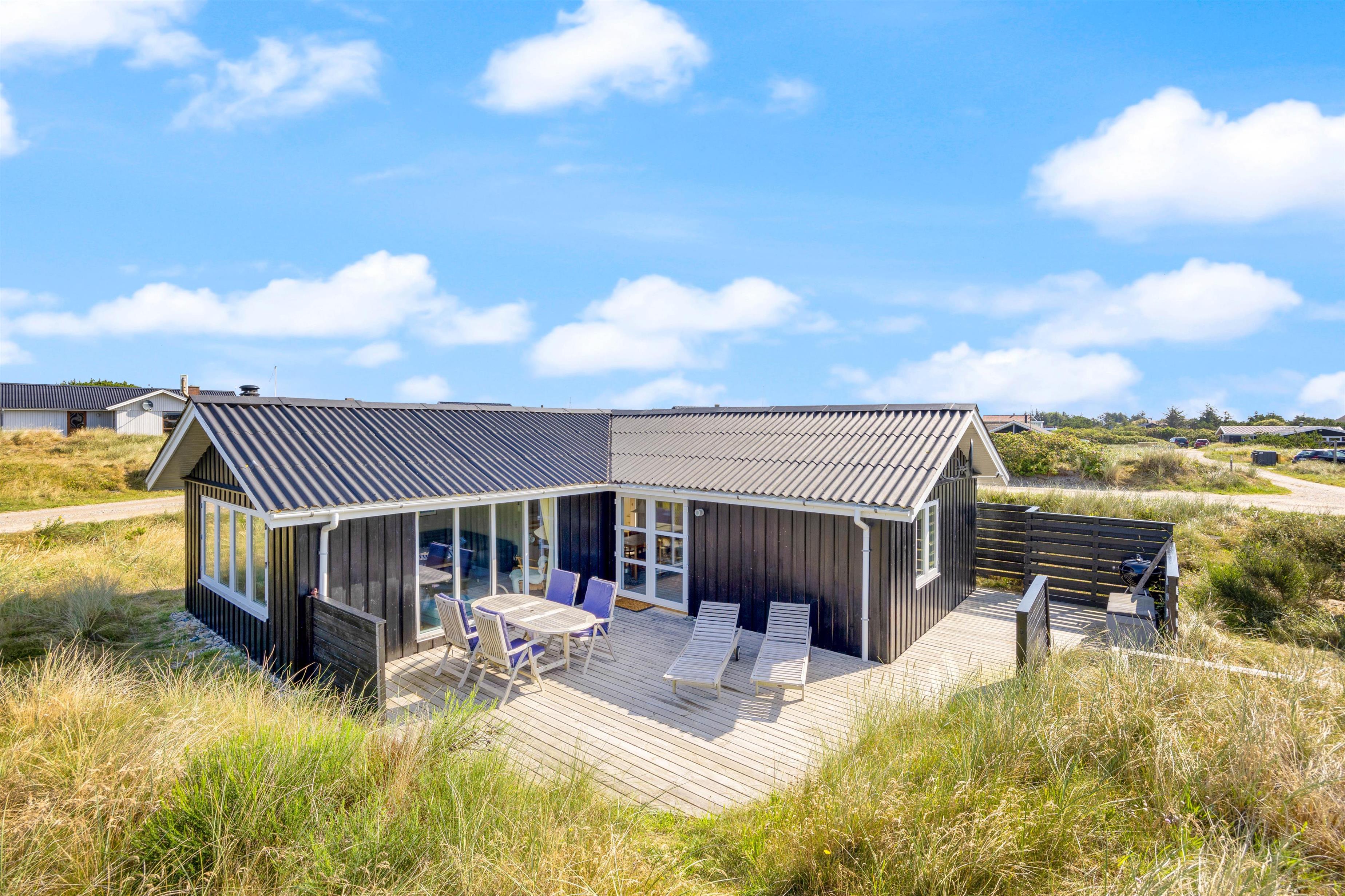 Terrassen omkring sommerhuset er delvist afskærmet, så du kan altid finde en rolig plet, hvor du kan sidde med en god bog. Slap af i de komfortable havemøbler, imens børnene udforsker naturgrunden eller leger på gyngerne. Om aftenen kan I slutte af med en lækker BBQ, imens solen går ned bag klitterne.