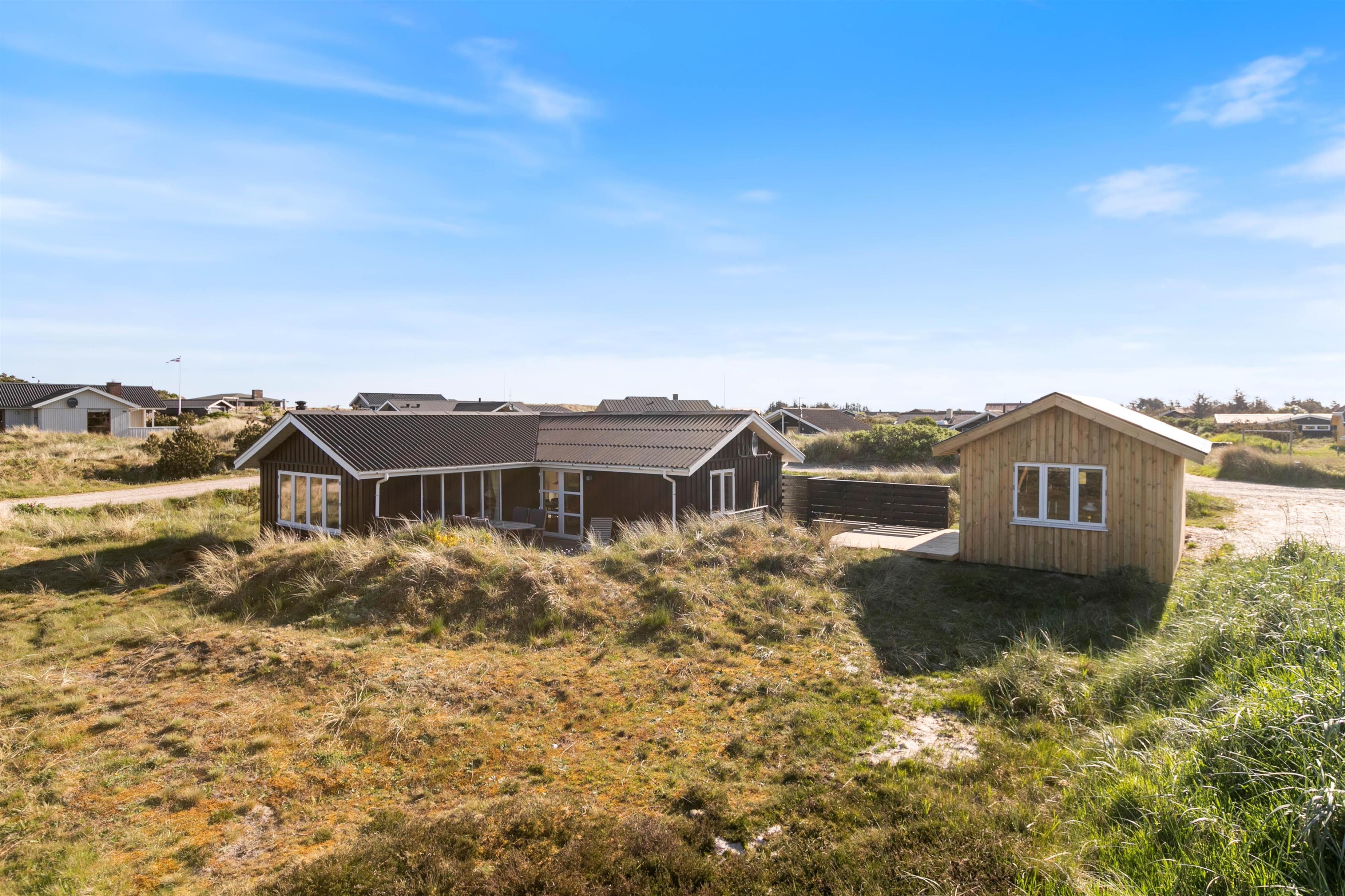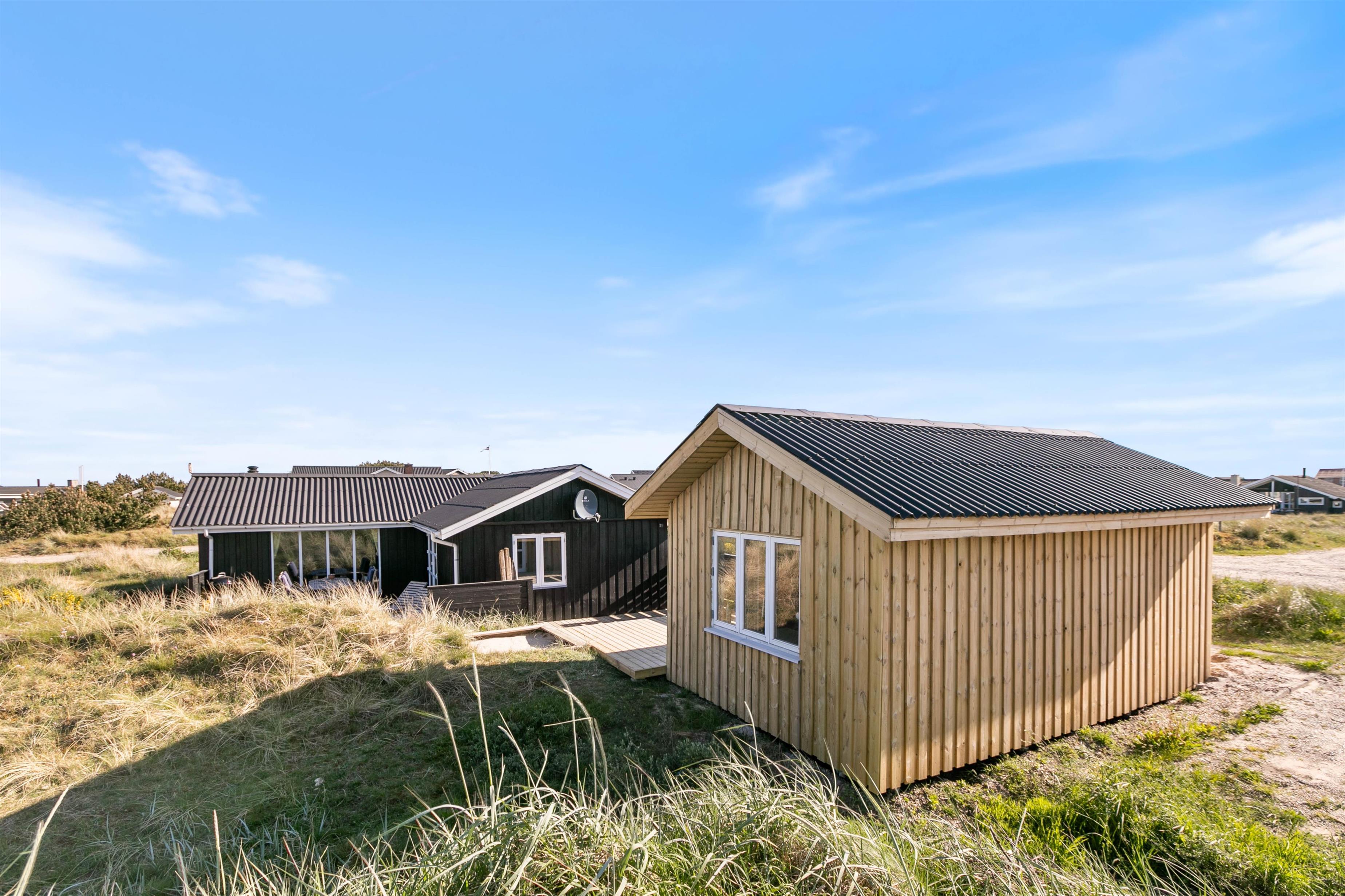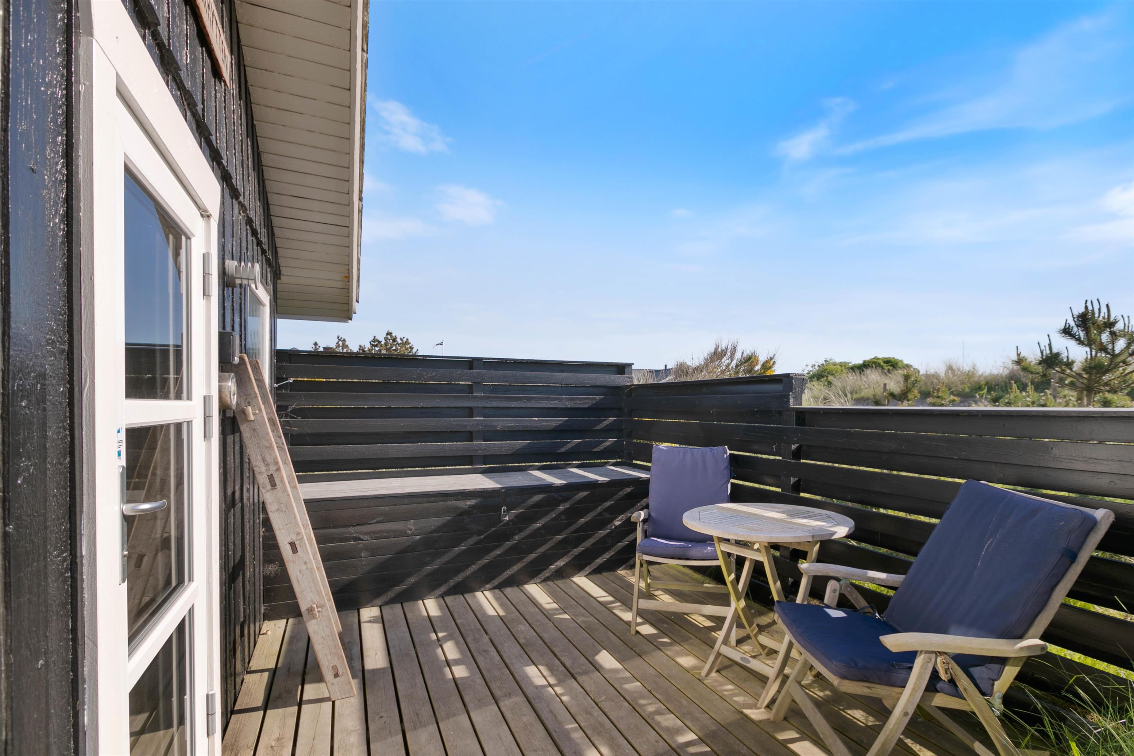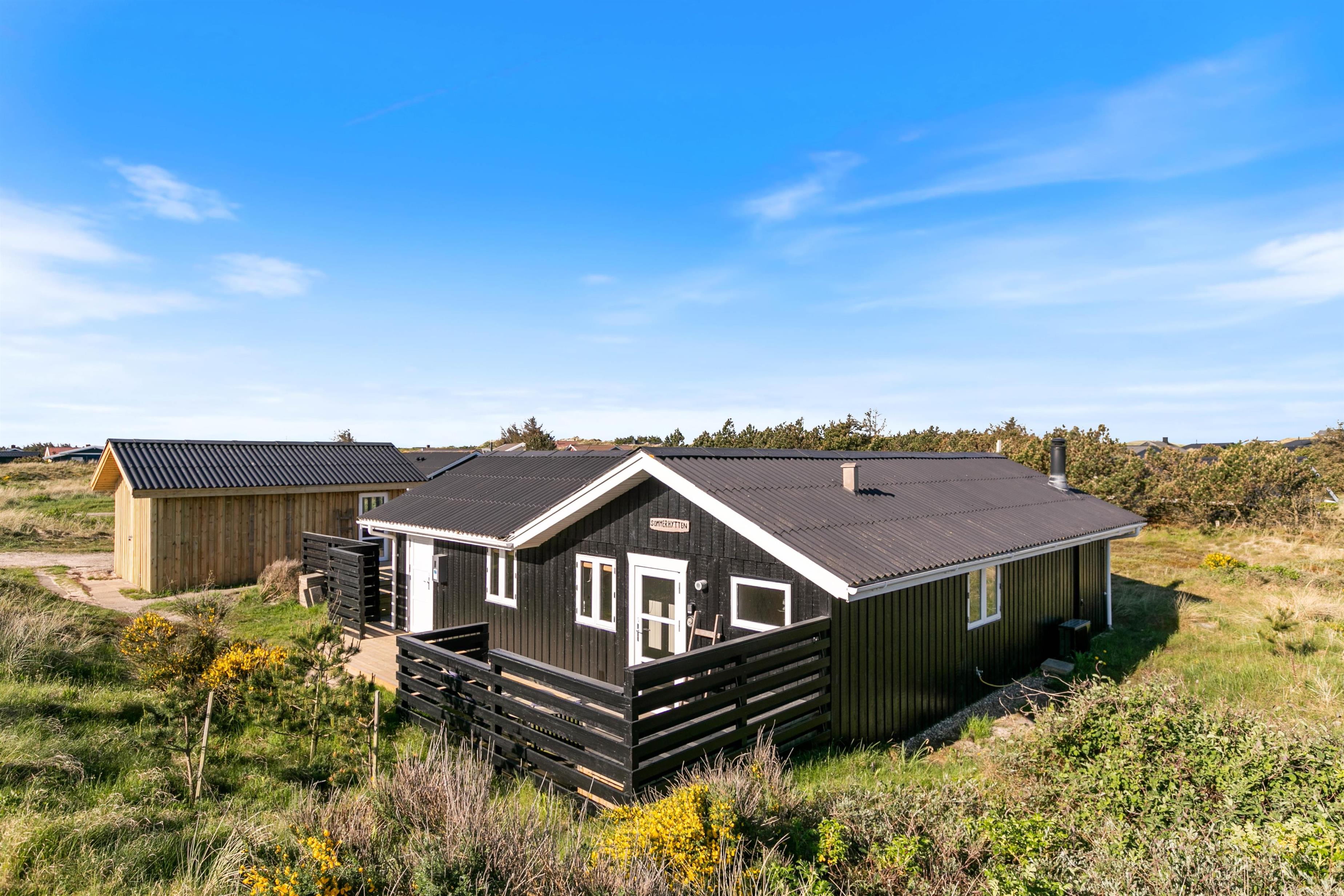 Terrassen omkring sommerhuset er delvist afskærmet, så du kan altid finde en rolig plet, hvor du kan sidde med en god bog. Slap af i de komfortable havemøbler, imens børnene udforsker naturgrunden eller leger på gyngerne. Om aftenen kan I slutte af med en lækker BBQ, imens solen går ned bag klitterne.