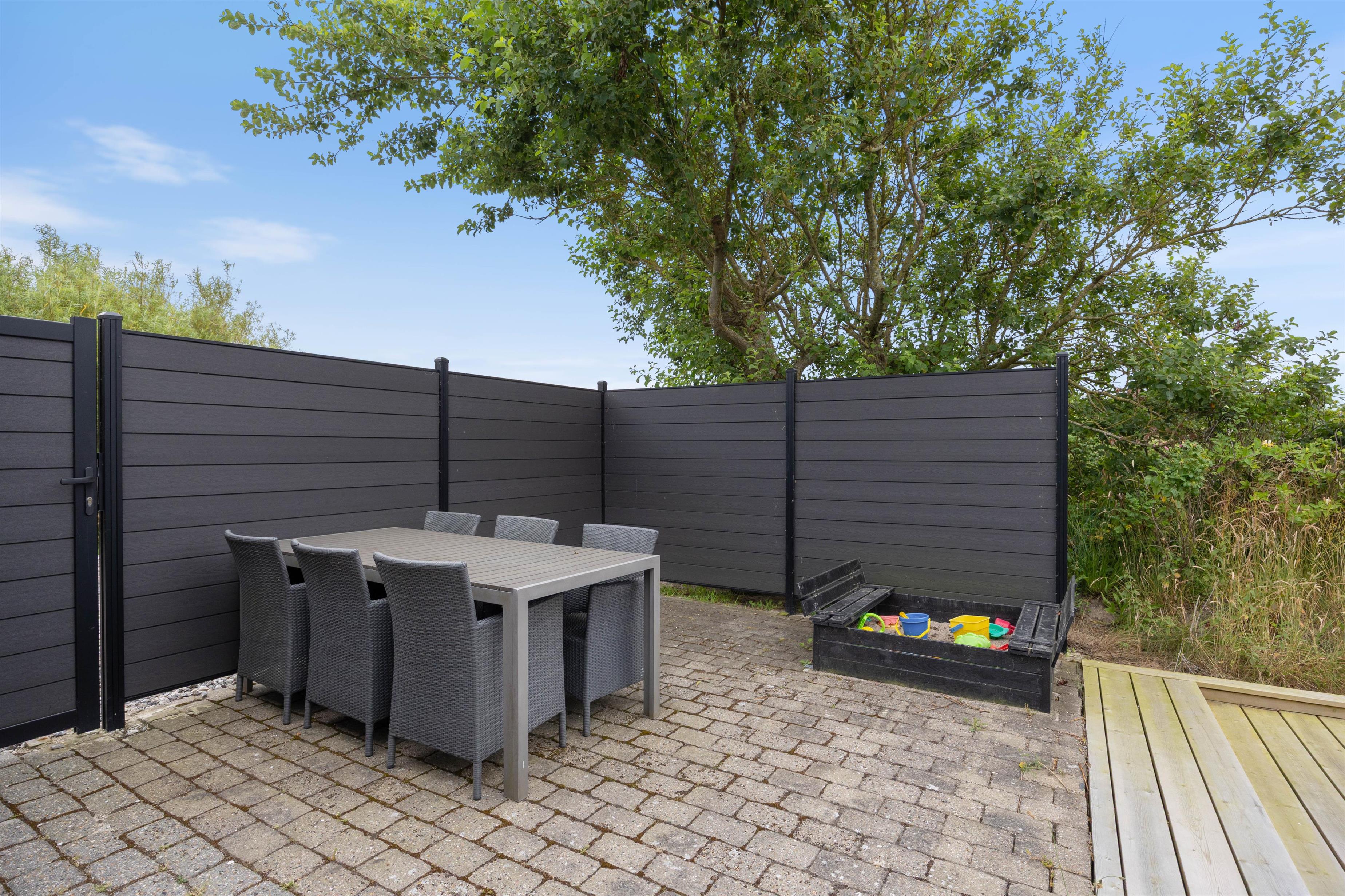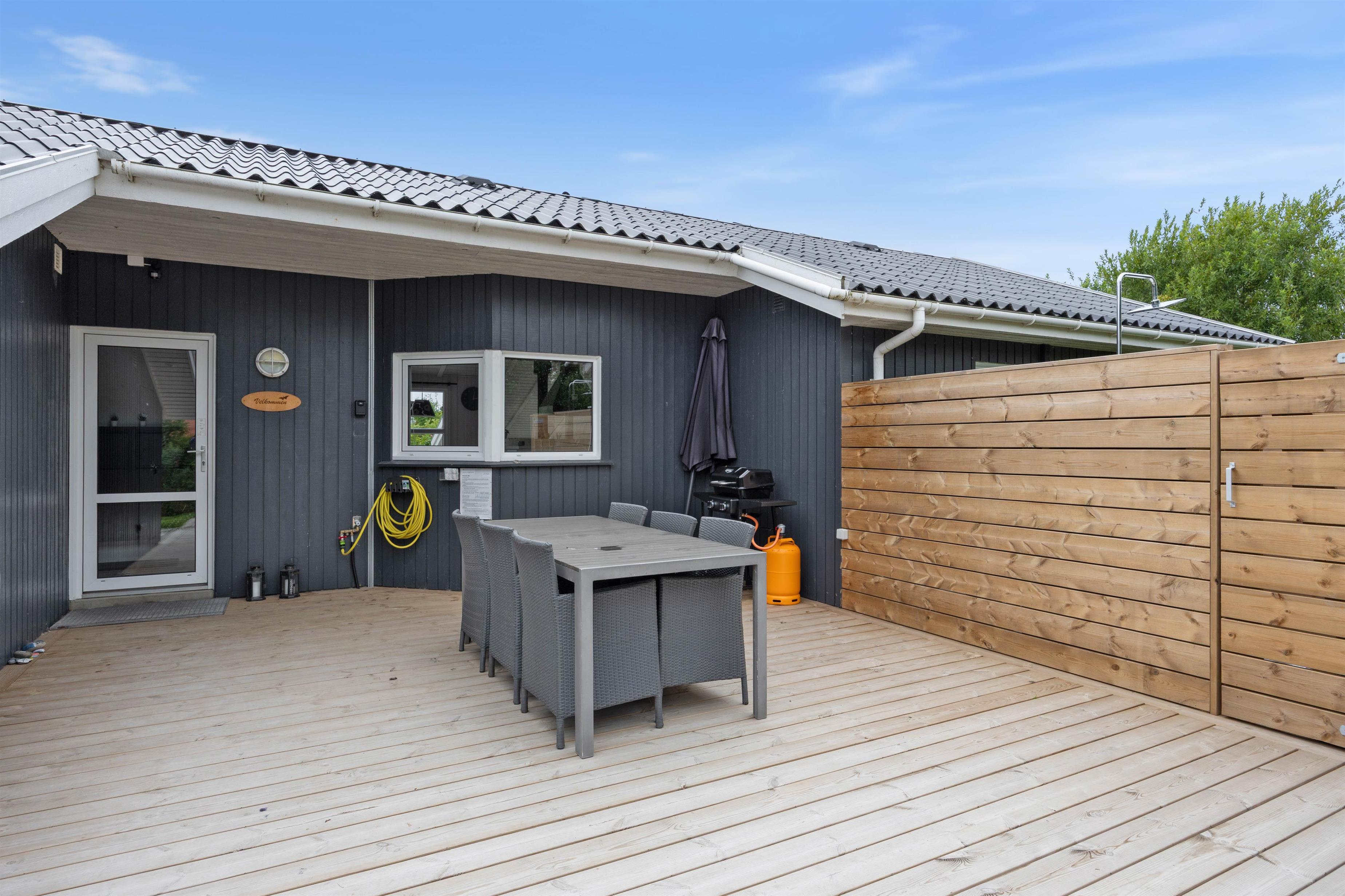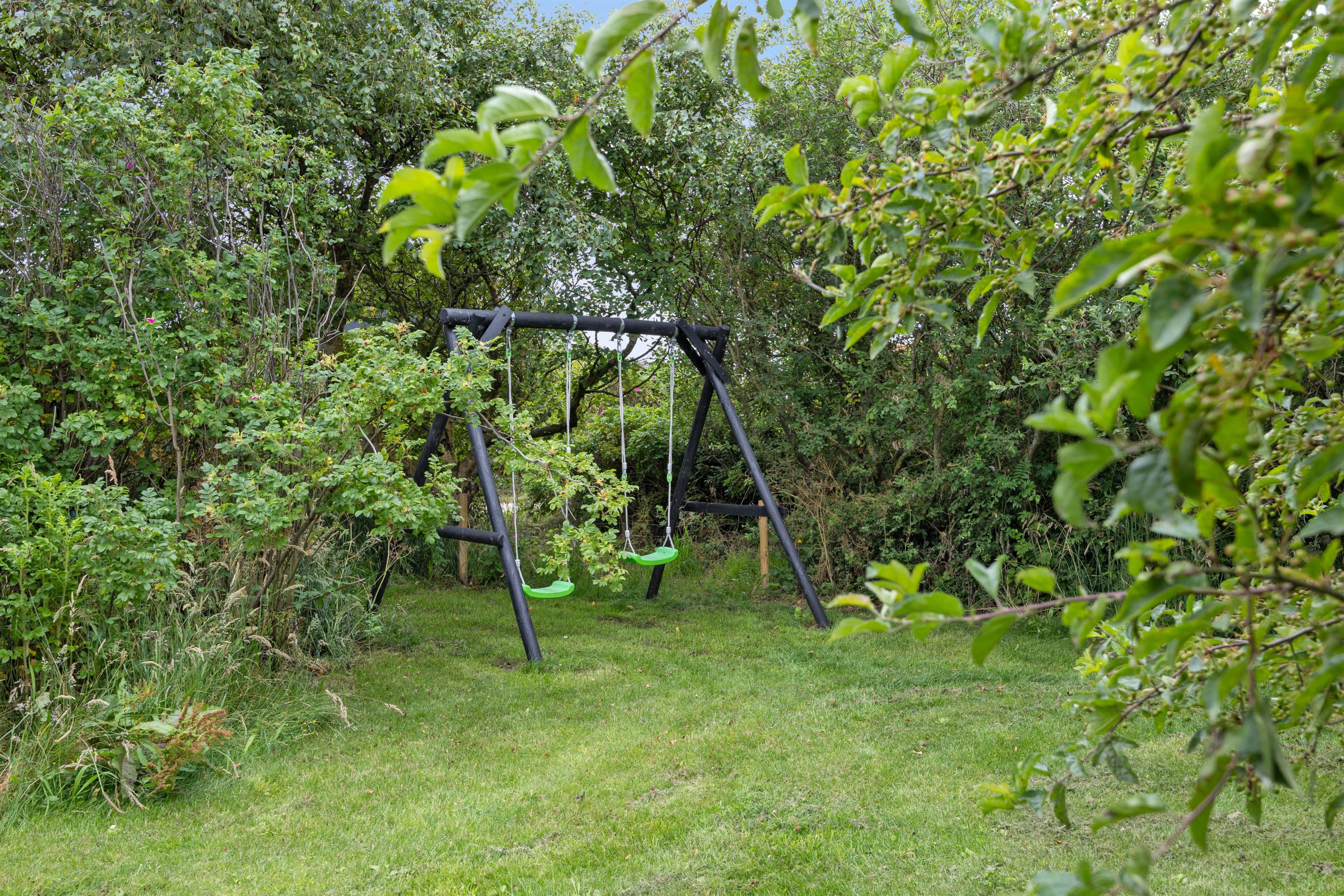 Udenfor venter jer en dejlig terrasse, hvor I kan nyde morgenkaffen, slappe af i solen eller samle hele familien til en dejlig grillaften. Her er der rig mulighed for at nyde solskinstimerne – havemøblerne venter her allerede. Slap af i solen og se børnene lege. Her er både gynger og sandkasse at finde.