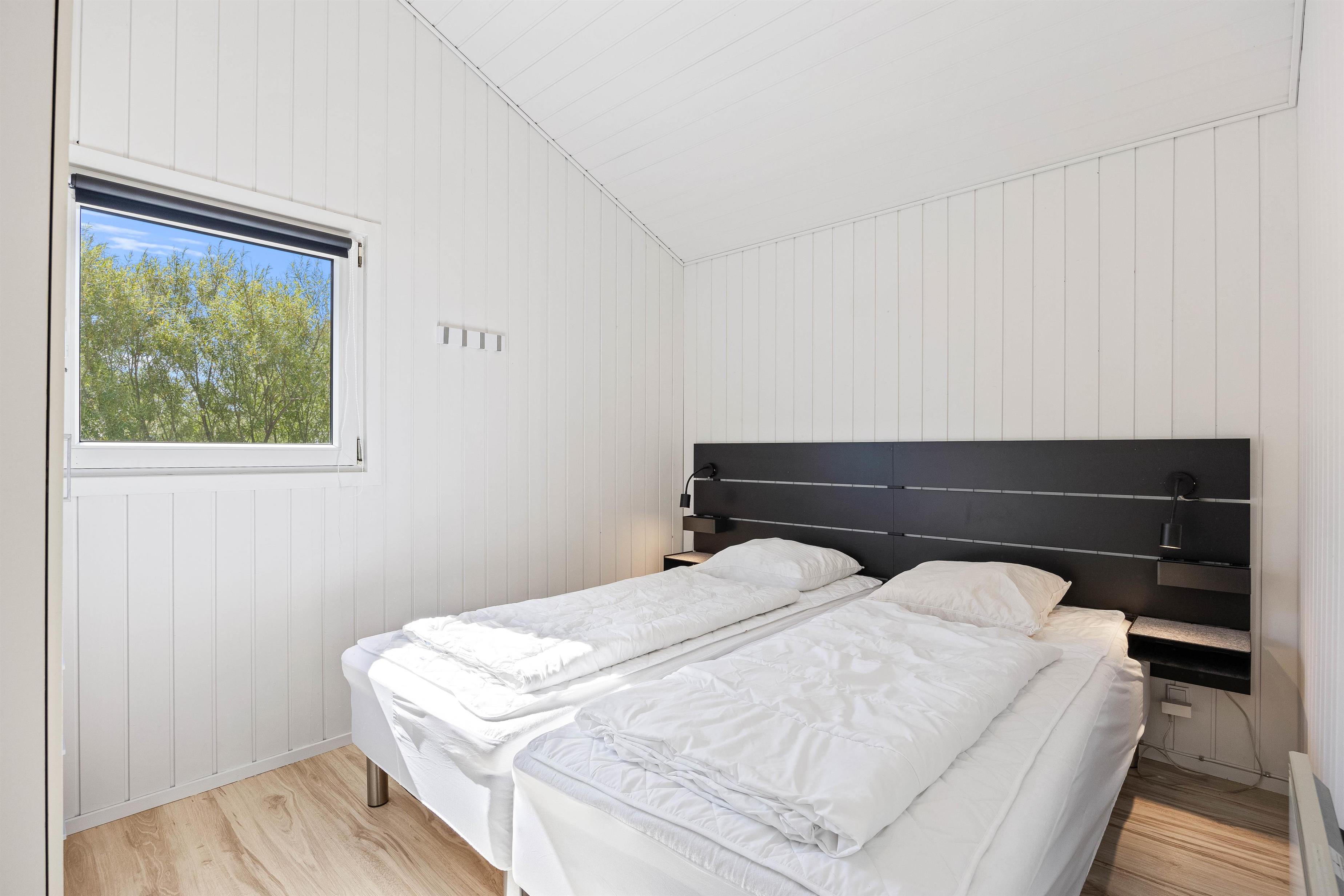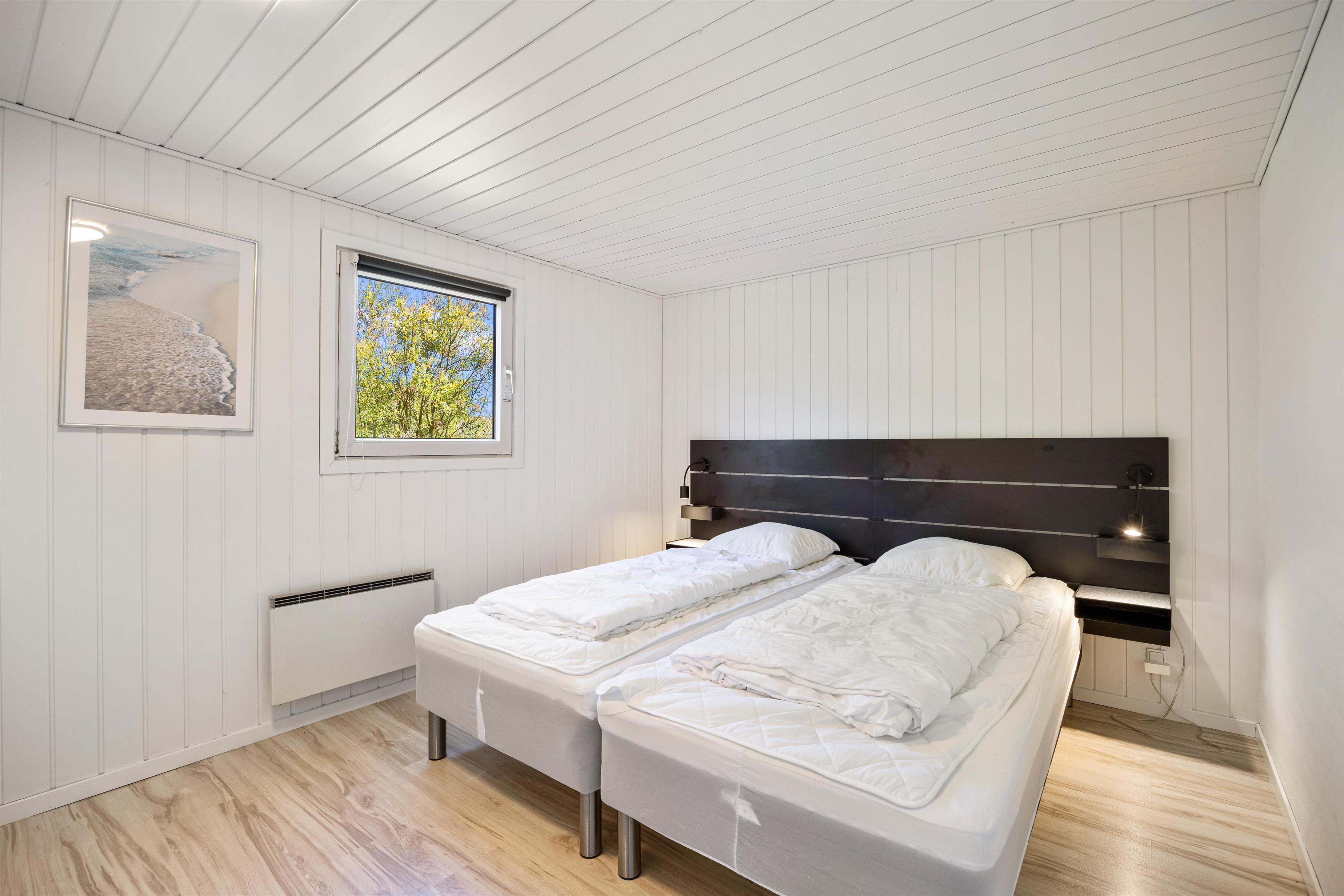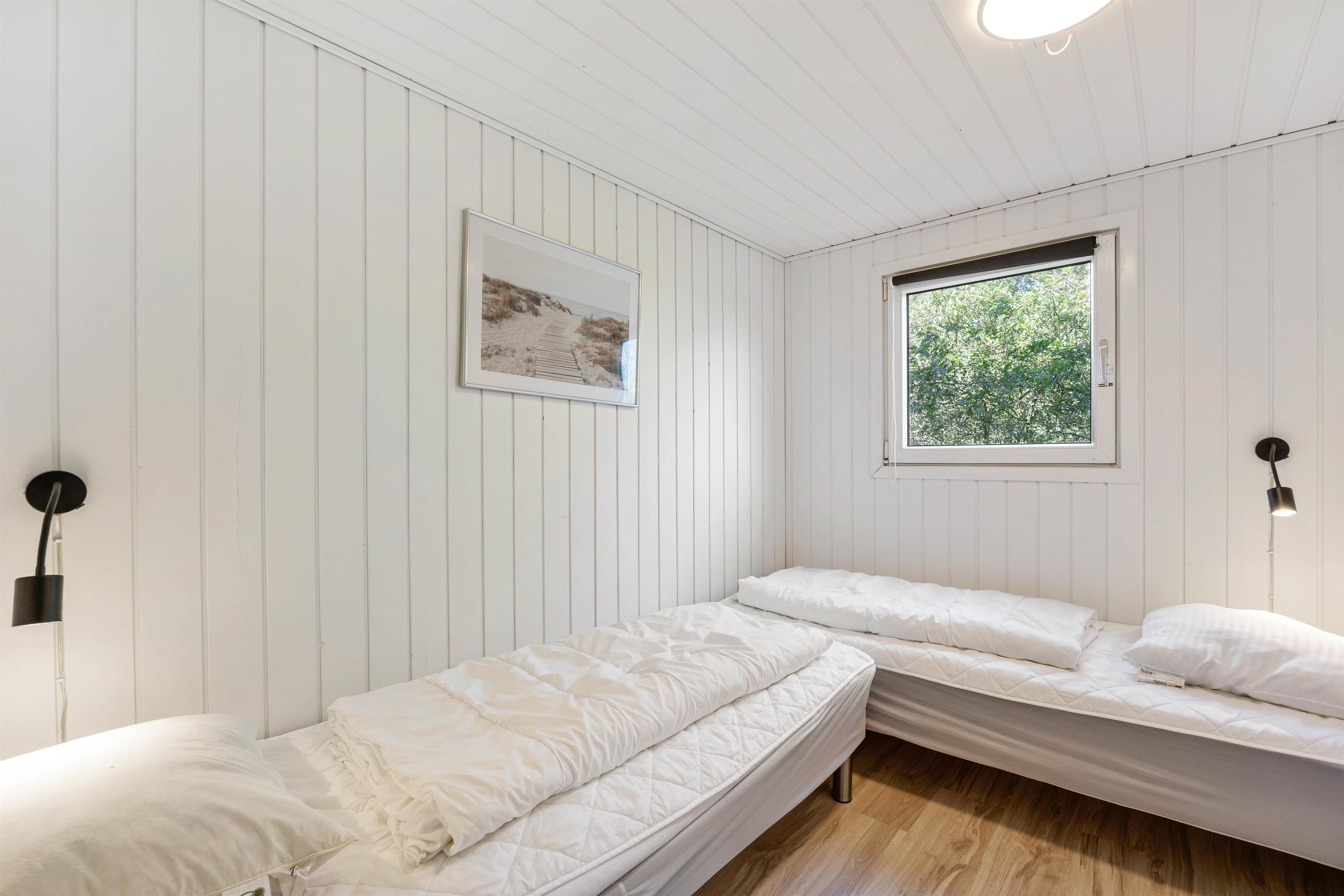 Sommerhuset er indrettet med 4 gode soveværelser, alle med komfortable enkeltmandssenge. Praktisk er her 2 badeværelser, én i hver sin ende og begge med gulvvarme. På det ene finder I både spabad og sauna, hvor I kan blive varmet godt igennem – også helt perfekt efter en tur ved Vesterhavet.