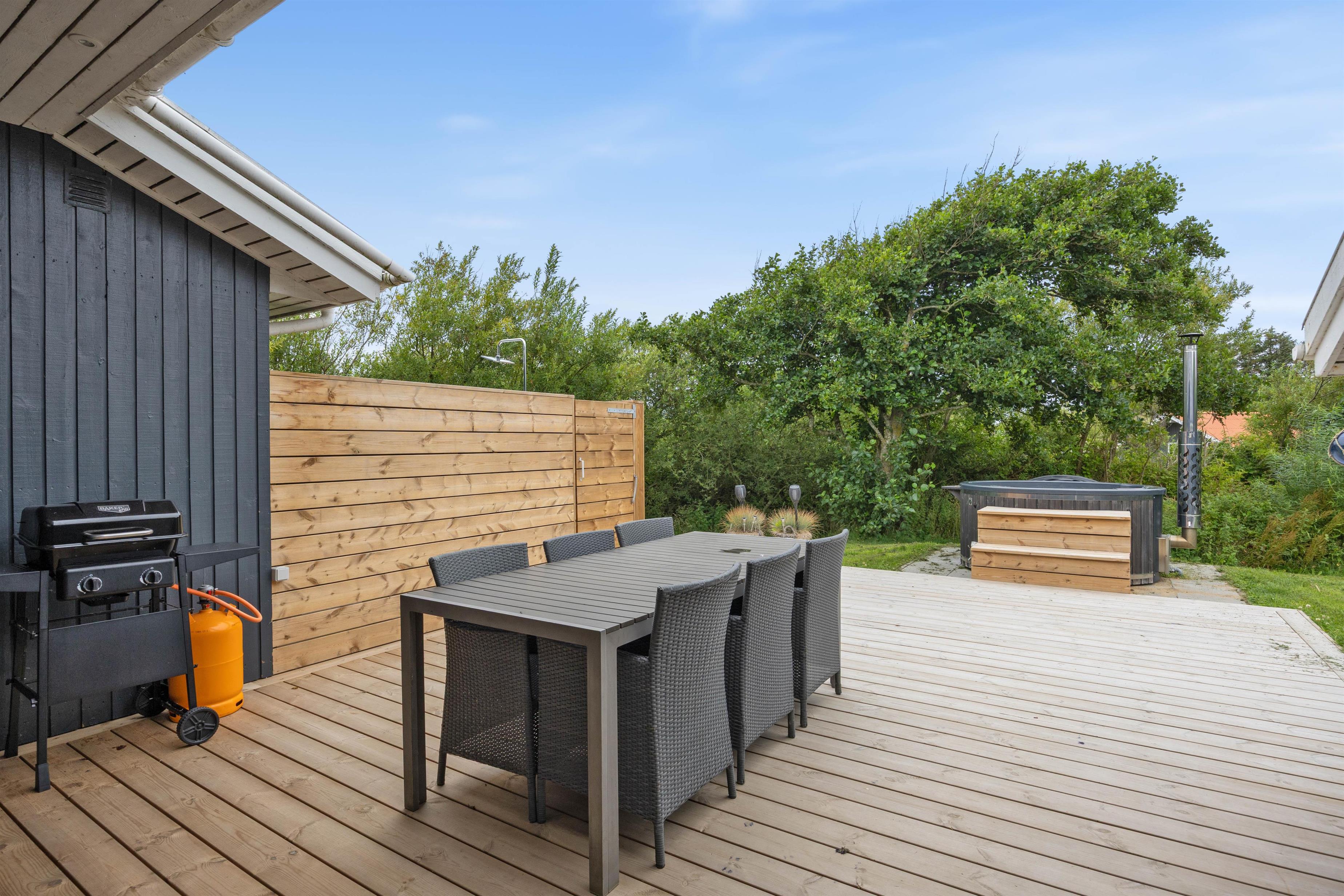 Leder I efter et rummeligt sommerhus i naturskønne omgivelser? Så er dette skønne sommerhus på Kr Madsens Vej 15 syd for Hvide Sande et godt bud. Med plads til 8 feriegæster og både indendørsspa, sauna, vildmarksbad og udebruser kan I slappe helt af. Det funktionelle sommerhus ligger cirka 200 meter fra Ringkøbing Fjord – velkommen indenfor.