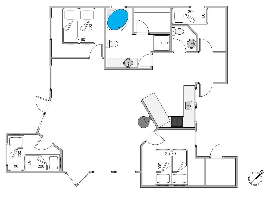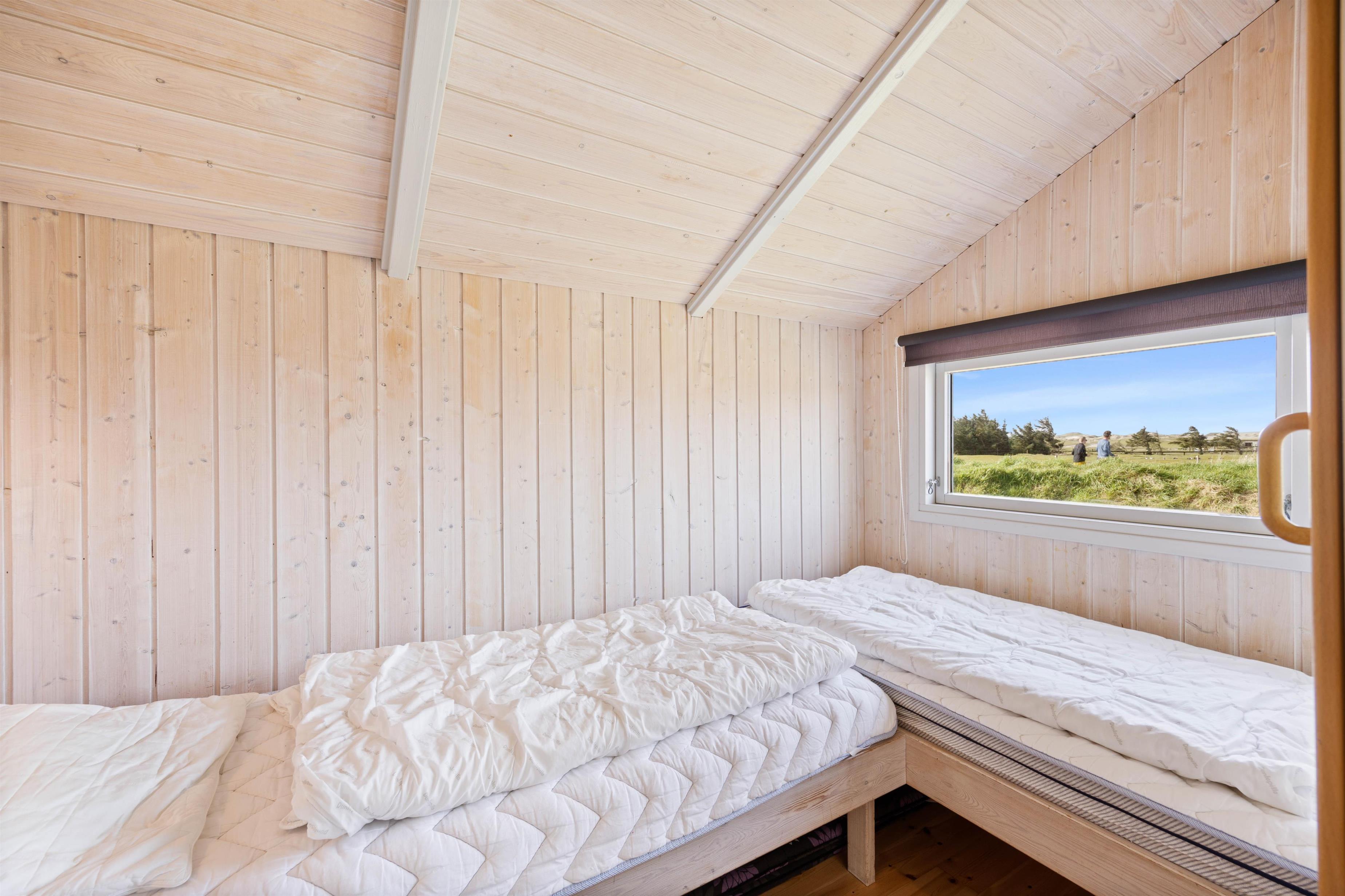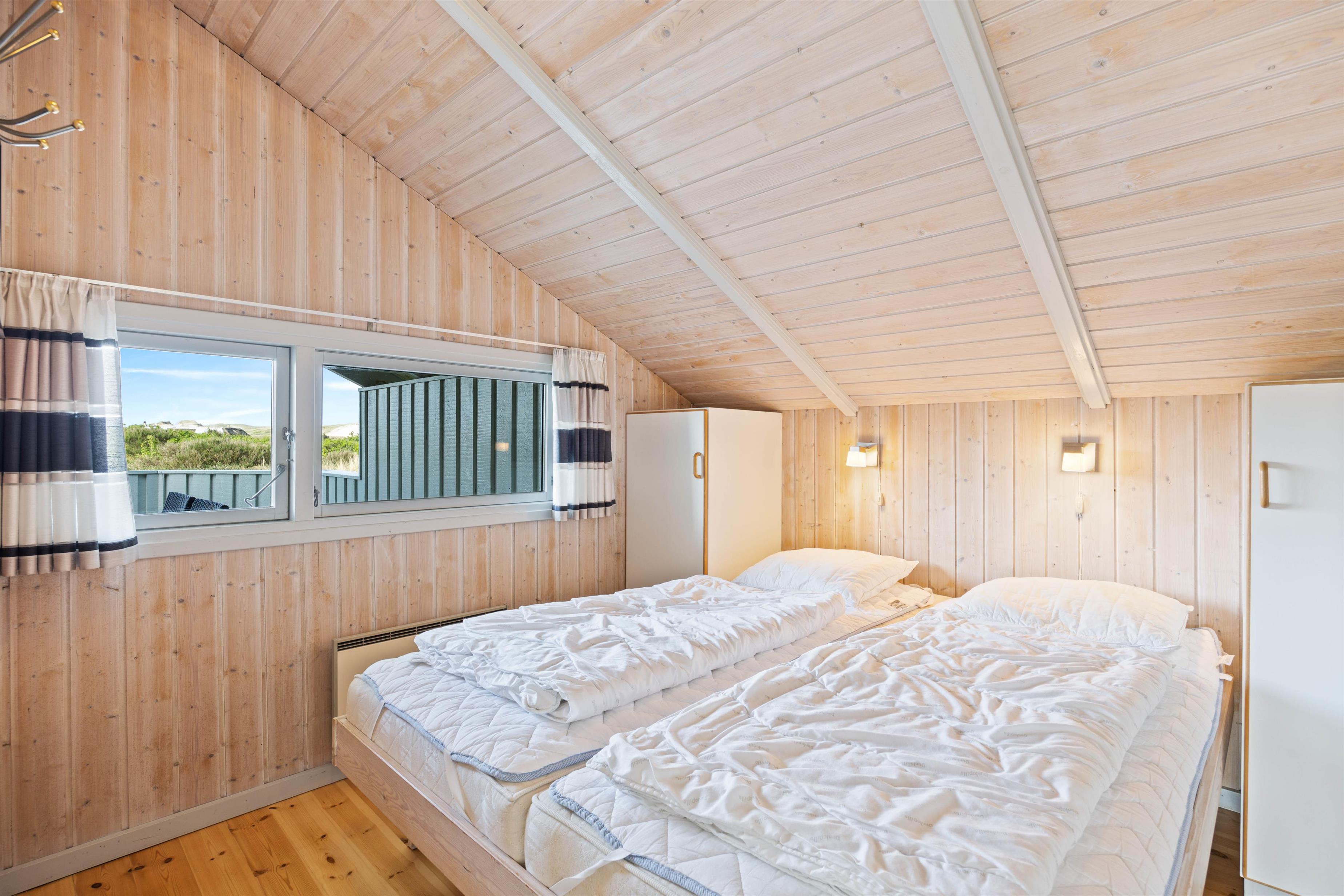 Det åbne køkken er veludstyret og indbyder til tilberedning af lækre måltider, og opvaskemaskinen tager sig af opvasken bagefter. Så har I tid til at nyde spaen eller en tur i saunaen, som er placeret i badeværelset med dagslys og bruser. Der er også et praktisk gæstetoilet, så I kan dele jer op. Efter en god nats søvn i de 2 soveværelser med dobbeltsenge og 2 soveværelser med tre enkeltsenge i alt, vil I vågne op veludhvilede. Bemærk, at den friske vesterhavsluft gør noget godt for nattesøvnen.