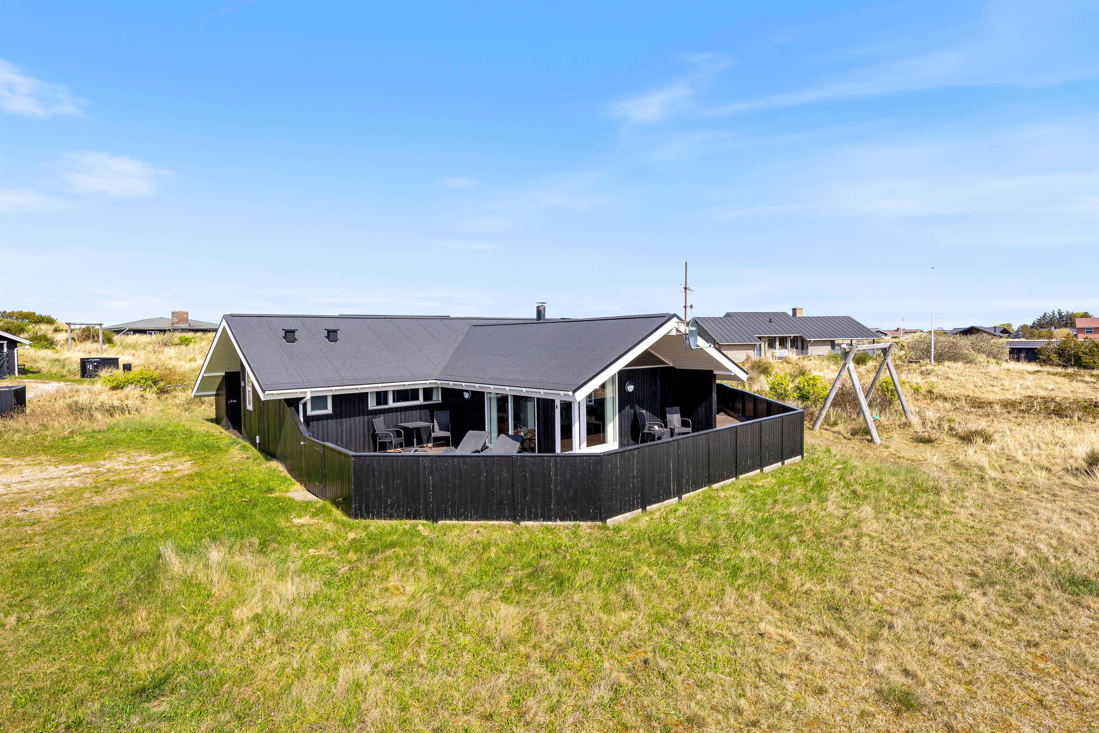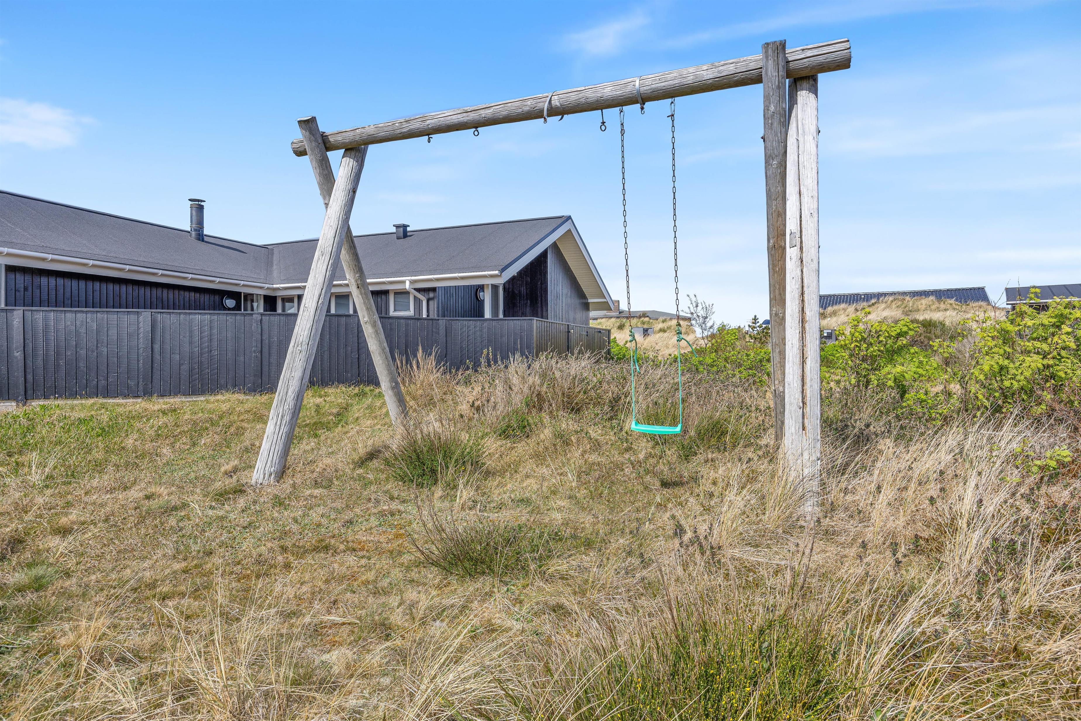 Den tilhørende naturgrund strækker sig omkring huset og indbyder til masser af udeliv for hele familien. Her er god plads til både leg og afslapning i grønne omgivelser, og med både gynge og sandkasse er børnene godt underholdt. Imens kan de voksne nyde en stille stund i havemøblerne, læne sig tilbage med en bog eller bare nyde fuglesang og den friske luft fra Vesterhavet.
