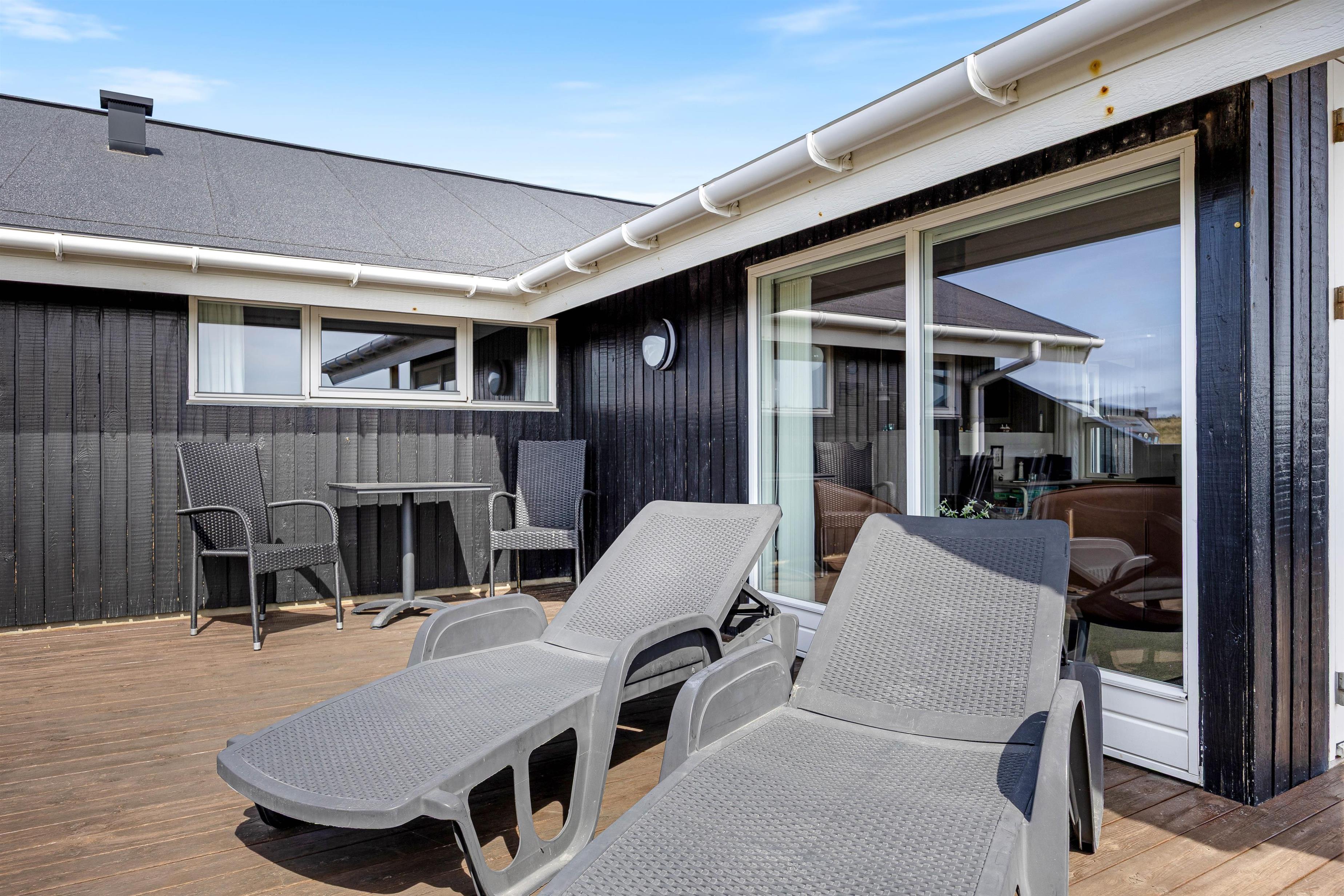 På den lukkede terrasse har I både overdækkede og afskærmede kroge, hvor I kan finde læ og ro – uanset om I vil nyde morgenmaden i stilhed, samles om aftensmaden i aftensolen eller tage et spil kort i skyggen midt på dagen. Her er der plads til nærvær og hyggelige stunder i det fri, uanset vejret.
