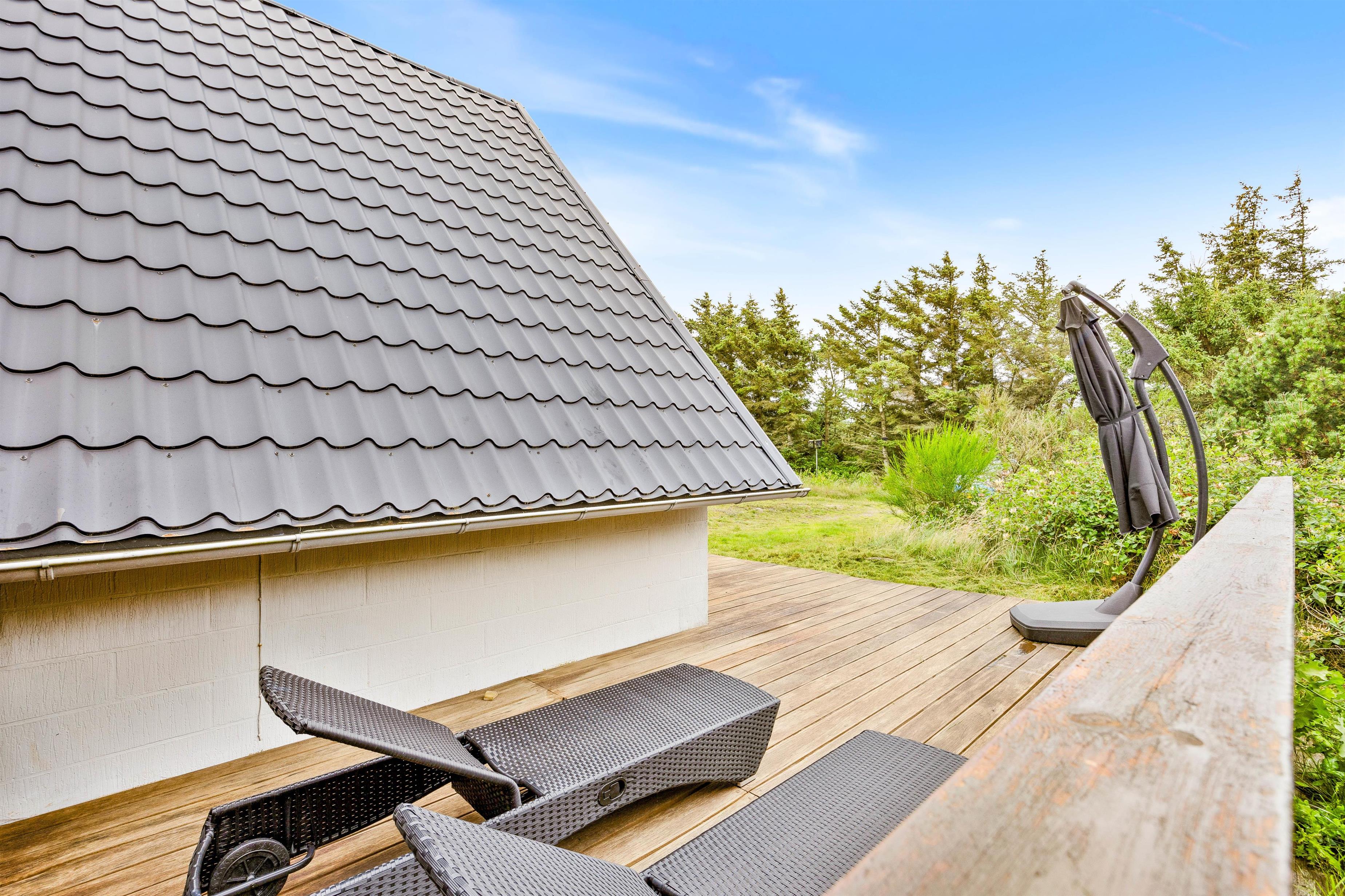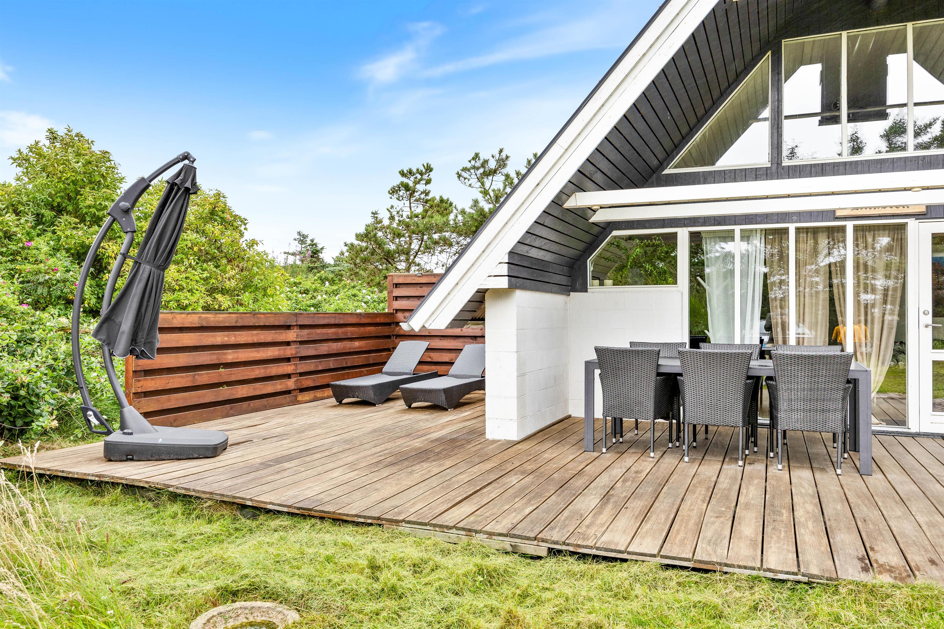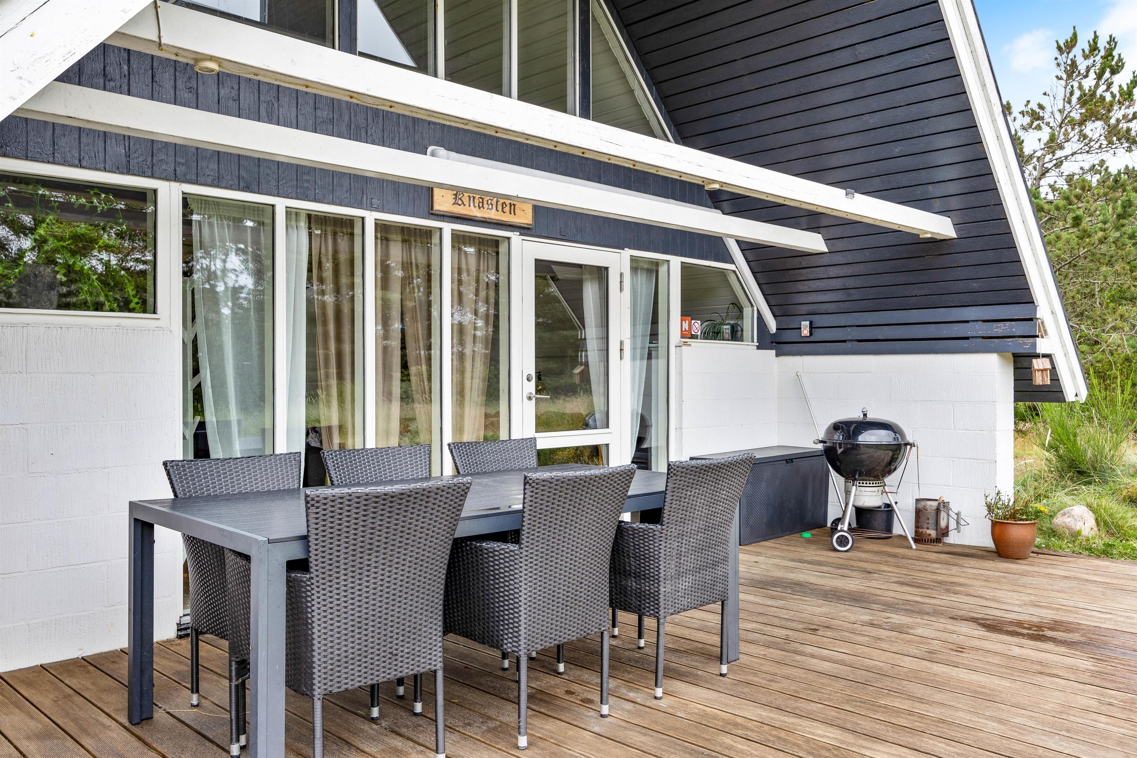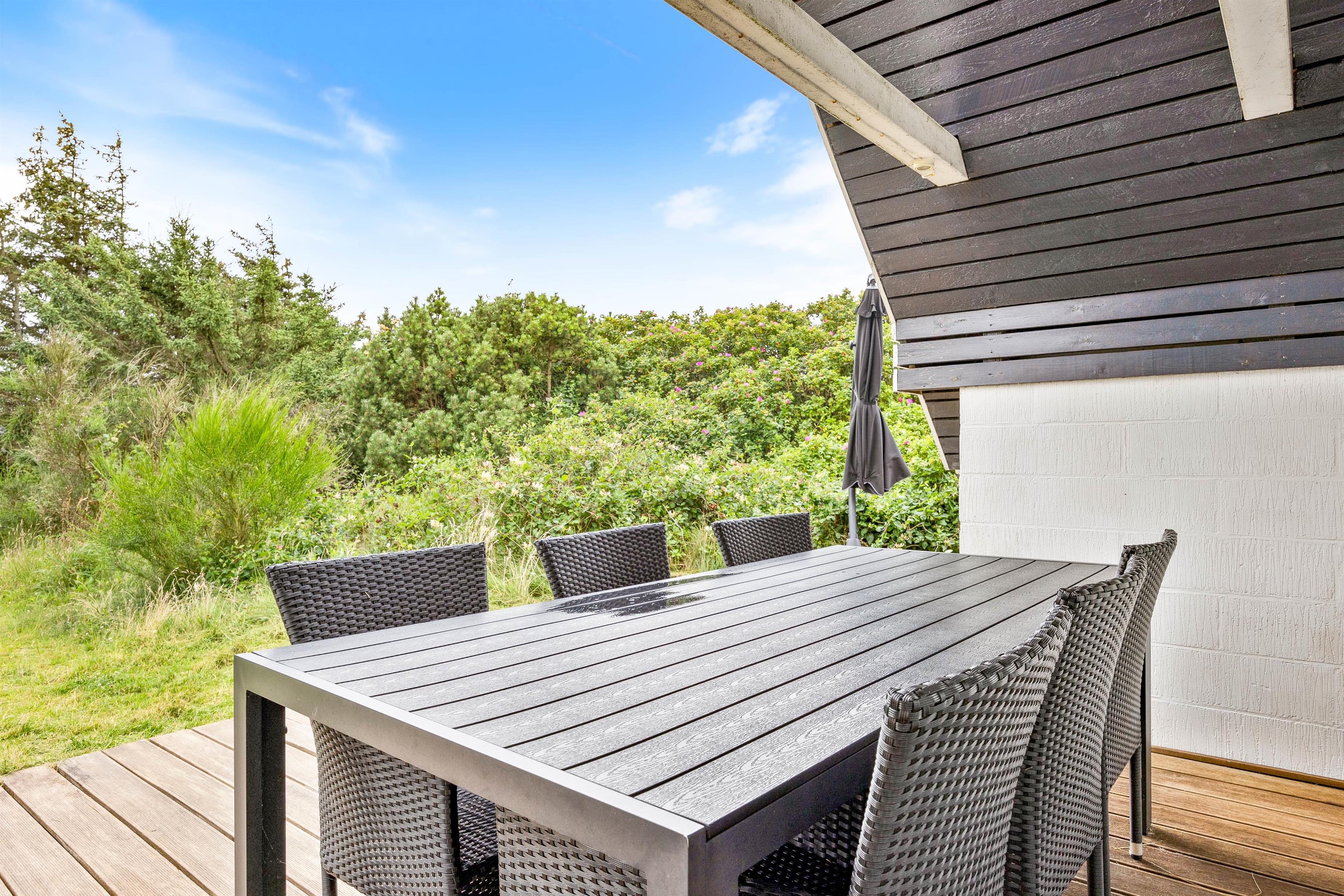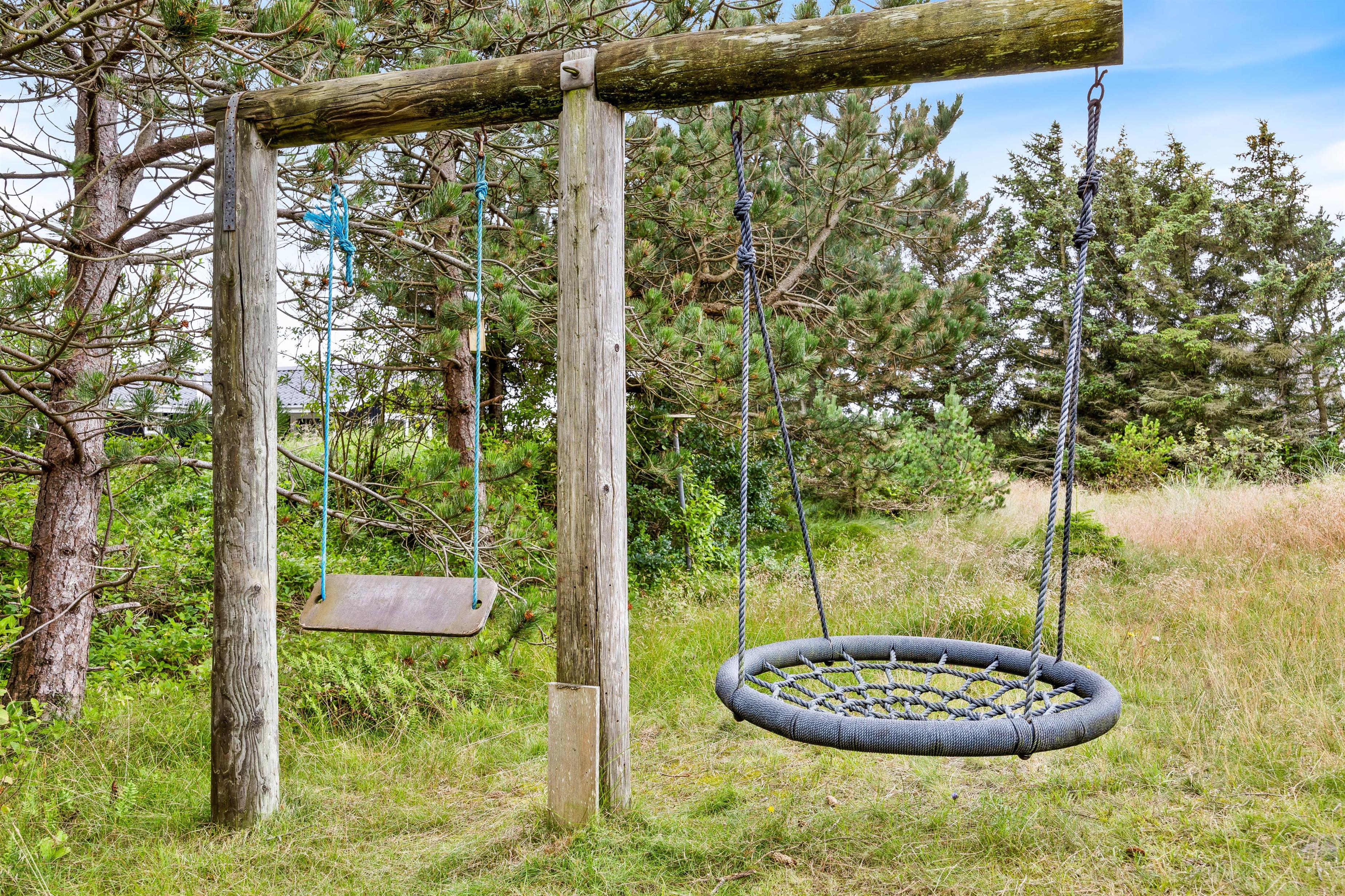 Slap af på den delvist overdækkede terrasse i de komfortable havemøbler, mens børnene gynger eller udforsker naturgrunden. De opvoksede buske og træer omkring grunden betyder, at du kan føle dig privat og er beskyttet mod vinden. Om aftenen kan I tænde op i grillen og nyde et lækkert grillmåltid sammen i den friske luft. Med kun 1 kilometer til Vesterhavet kan I bagefter opleve solnedgangen i Vesterhavet. Det er altid en storslået oplevelse.