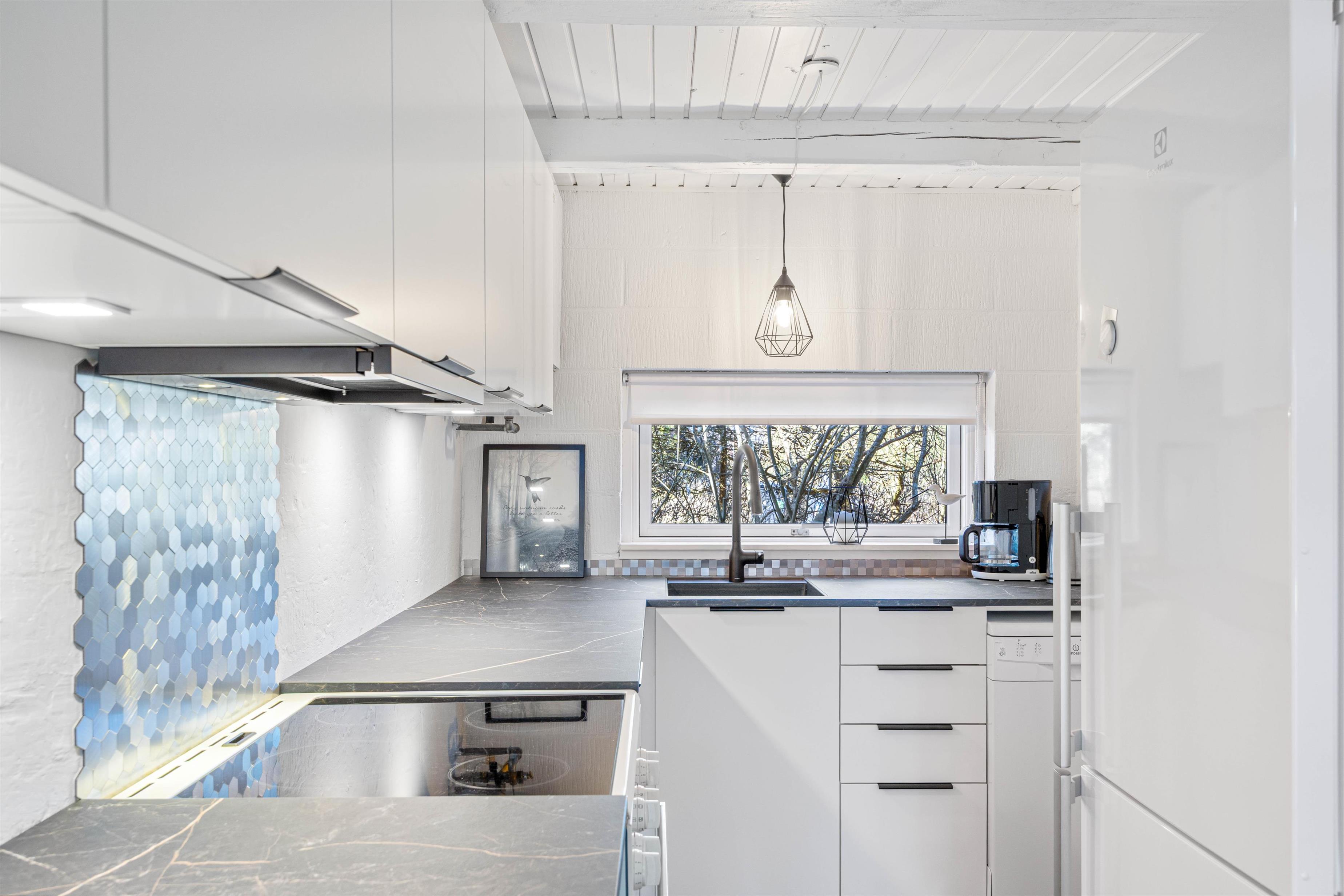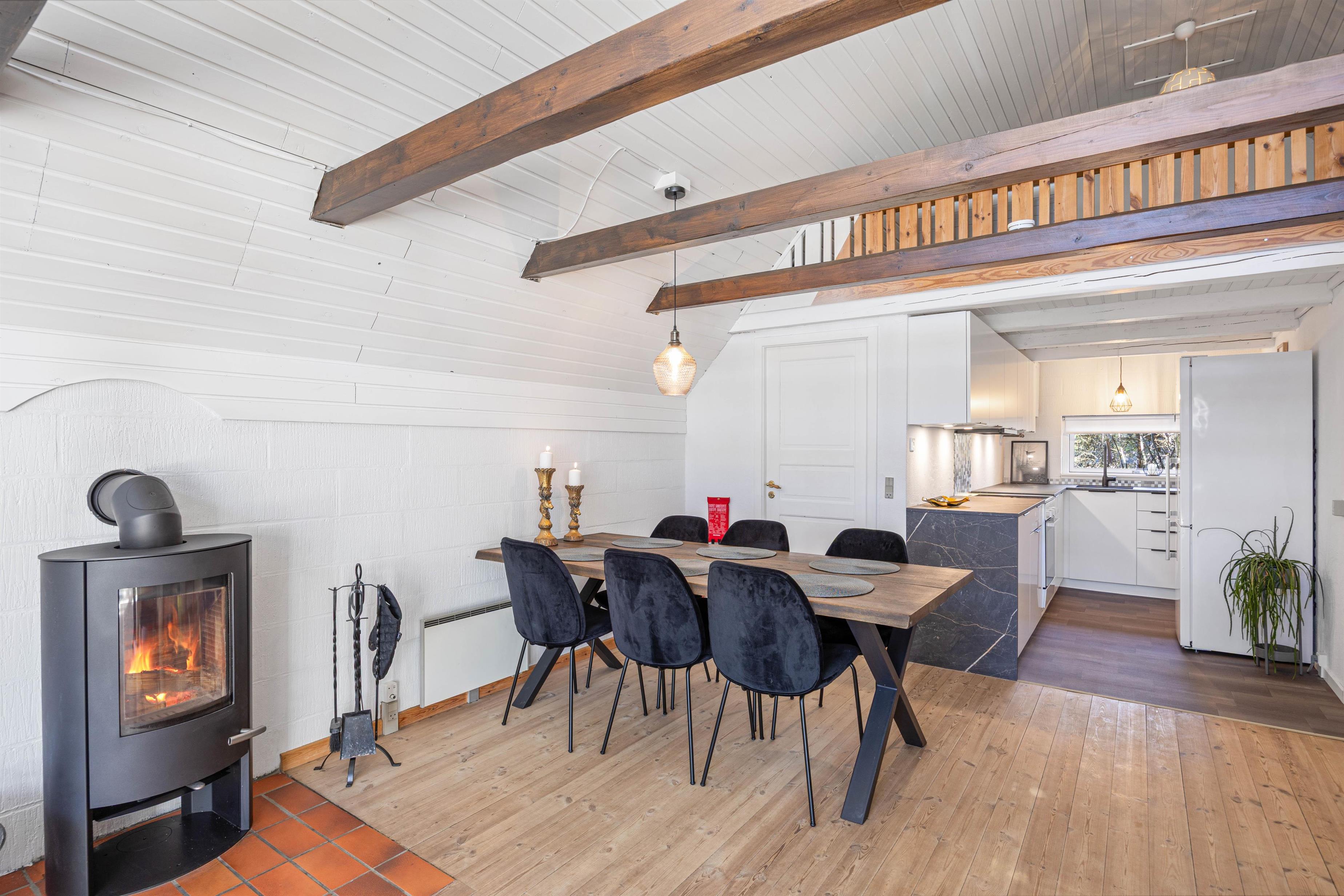 Det åbne køkken, som er renoveret i 2025, ligger i forbindelse med stuen og indeholder alt, hvad I behøver for at forkæle hinanden med lækre hjemmelavede måltider. Nyd dem ved spisebordet og spil eventuelt et brætspil bagefter. I de 2 soveværelser er der komfortable dobbeltsenge og på hemsen en sovesofa, så I alle kan sove godt ud i den friske vesterhavsluft. En energibesparende varmepumpe hjælper til en hurtig og behagelig opvarmning af sommerhuset.