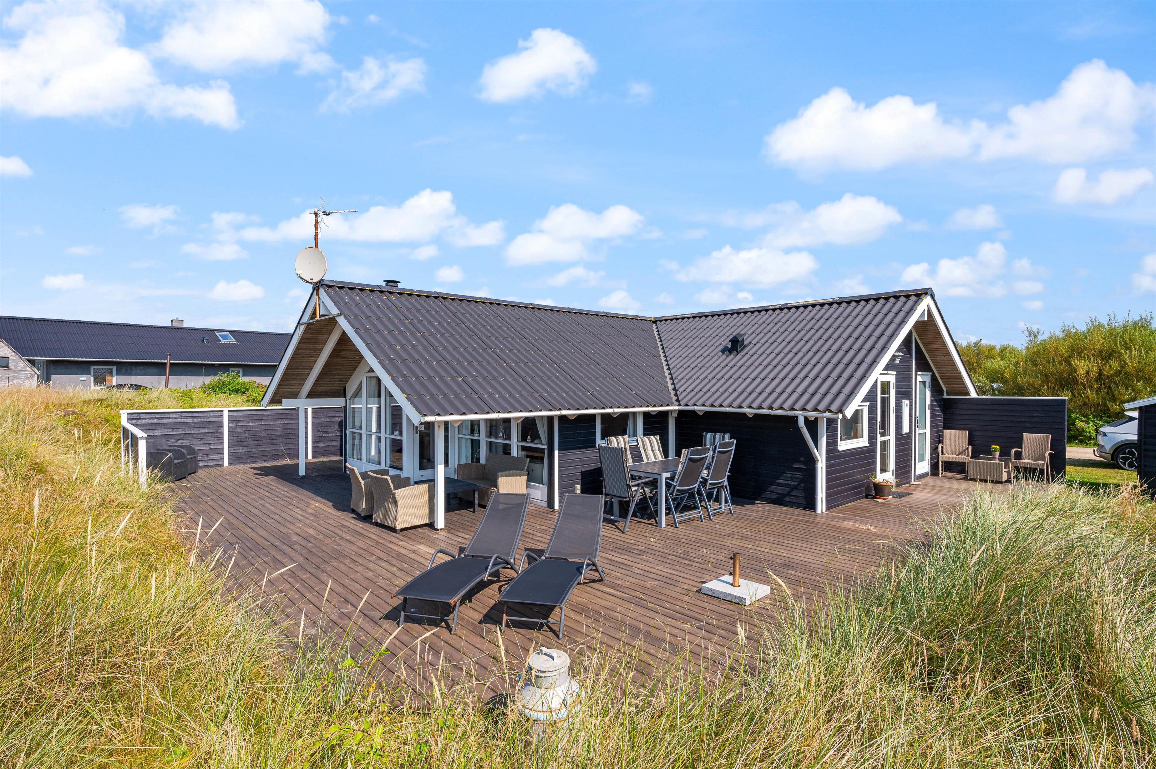 Når vi holder ferie i et sommerhus, så har inde- og udelivet en tendens til at flyde sammen. Vi tiltrækkes af den friske luft og den smukke natur, og på en ferie ved Vesterhavet og i Haurvig er det bestemt ingen undtagelse. Til dette feriehus hører derfor også et rigtigt dejligt terrasseområde, som inviterer til hygge med familien i den friske natur. En del af terrassen er let overdækket, så du kan trække lidt i læ, hvis vejret kræver det. Samtidig er der anlagt terrasse fra flere vinkler, så du har mulighed for at rykke i læ og sol. Til terrassen hører naturligvis gode havemøbler, liggestole og grill. Perfekt til hyggelige grillaftener med gode venner og familie.