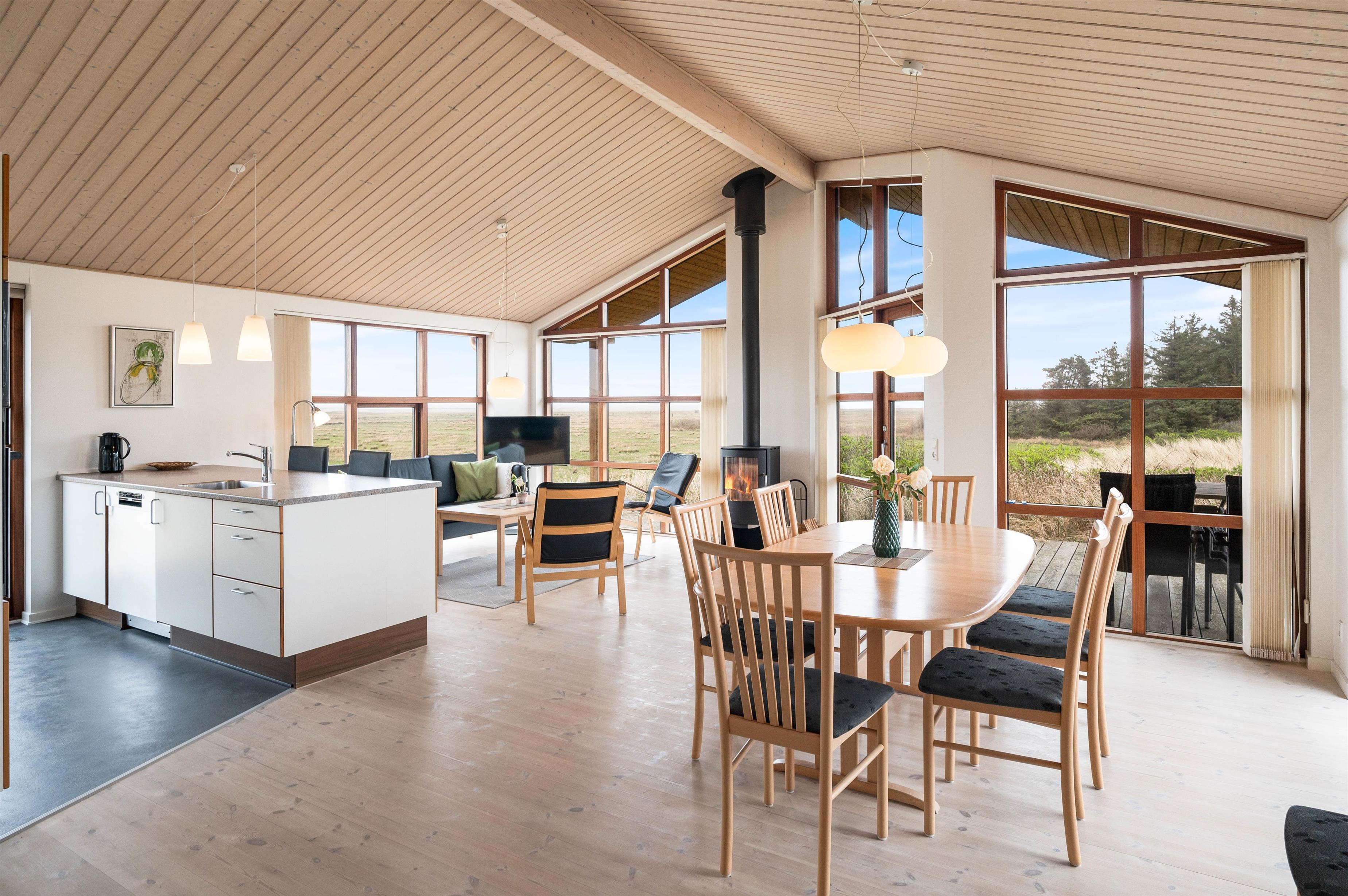 I får glæde af den skønne beliggenhed ved Ringkøbing Fjord den første dag, I ser solopgangen over fjorden. Det er et syn, man husker længe. Sommerhusets lyse og venlige indretning og lysindfaldet gennem panoramavinduerne sætter feriestemningen i top. Indendørs har I både spabad, sauna og brændeovn, så I får mulighed for at forkæle jer selv med wellness i løbet af ferien. Velegnet til familien eller til venner, som ønsker at holde ferie sammen.