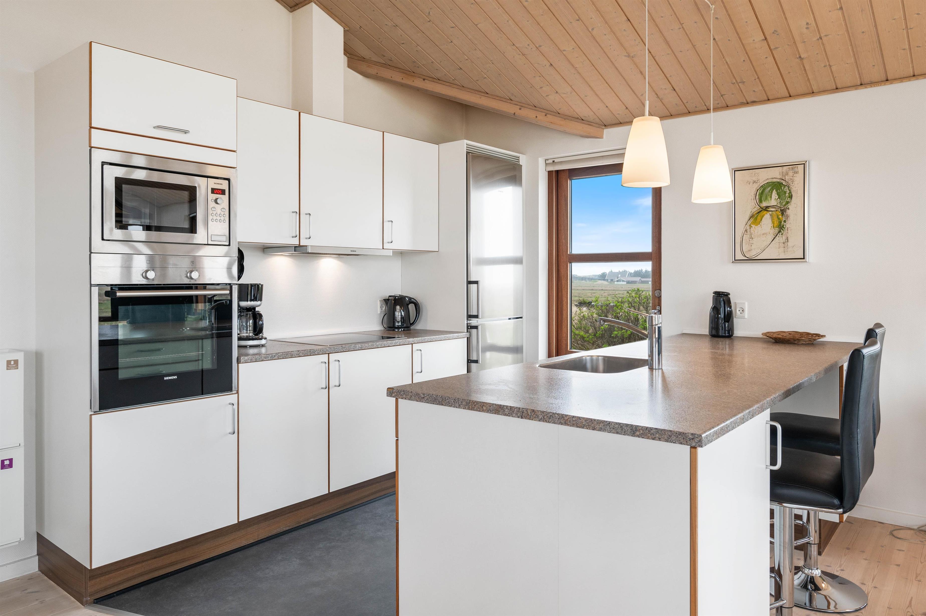 På Tornbjerrevej 10 i Haurvig kan 6 personer holde en uforglemmelig ferie sammen. I føler jer hjemme, straks I træder ind ad døren – her er lys, luft og hygge i rigelige mængder på de 112 m2 med loft til kip. Morgenkaffen kan med fordel nydes på den østvendte terrasse, så I kan nyde solopgangen. I den rummelige opholdsstue med åbent køkken kan I sammen tilberede lækre hjemmelavede måltider. Køkkenet har alt, hvad I behøver af udstyr. Imens kan nogle spille brætspil ved spisebordet, mens andre trækker sig tilbage i sofaen og nyder varmen fra ilden i brændeovnen.