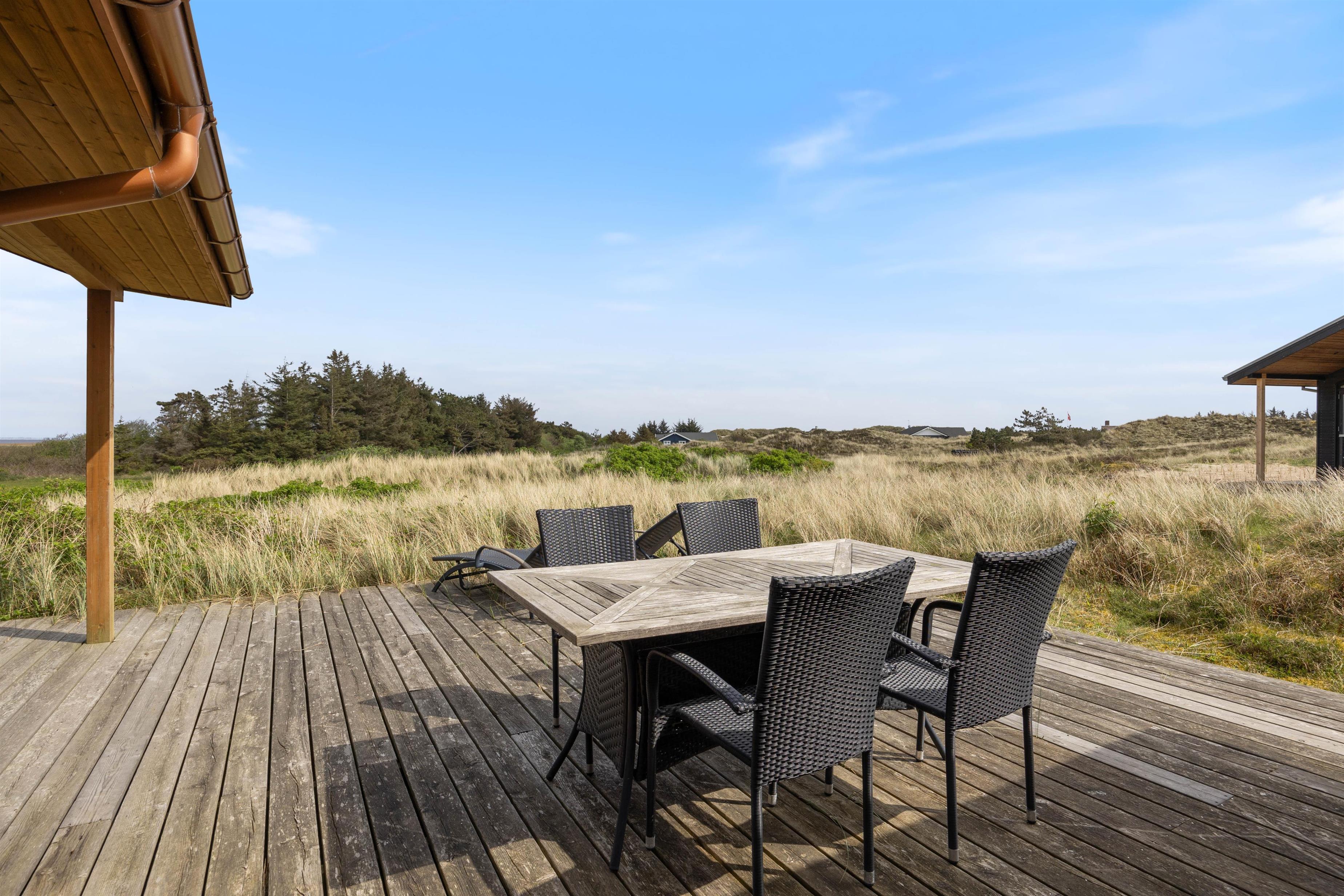 Udendørs kan I slappe af i havemøblerne eller slikke sol på liggestolene. Naturgrunden ved Ringkøbing Fjord er kuperet og har en unik udsigt, som bringer ro i sjælen. Nyd den friske vesterhavsluft og opholdet i den vestjyske natur, og slut eventuelt dagen af med at tænde op i grillen til et lækkert grillmåltid, imens skyggerne bliver lange. Efterfølgende kan I nå en tur til Vesterhavet og runde dagen af med at betragte solnedgangen her.