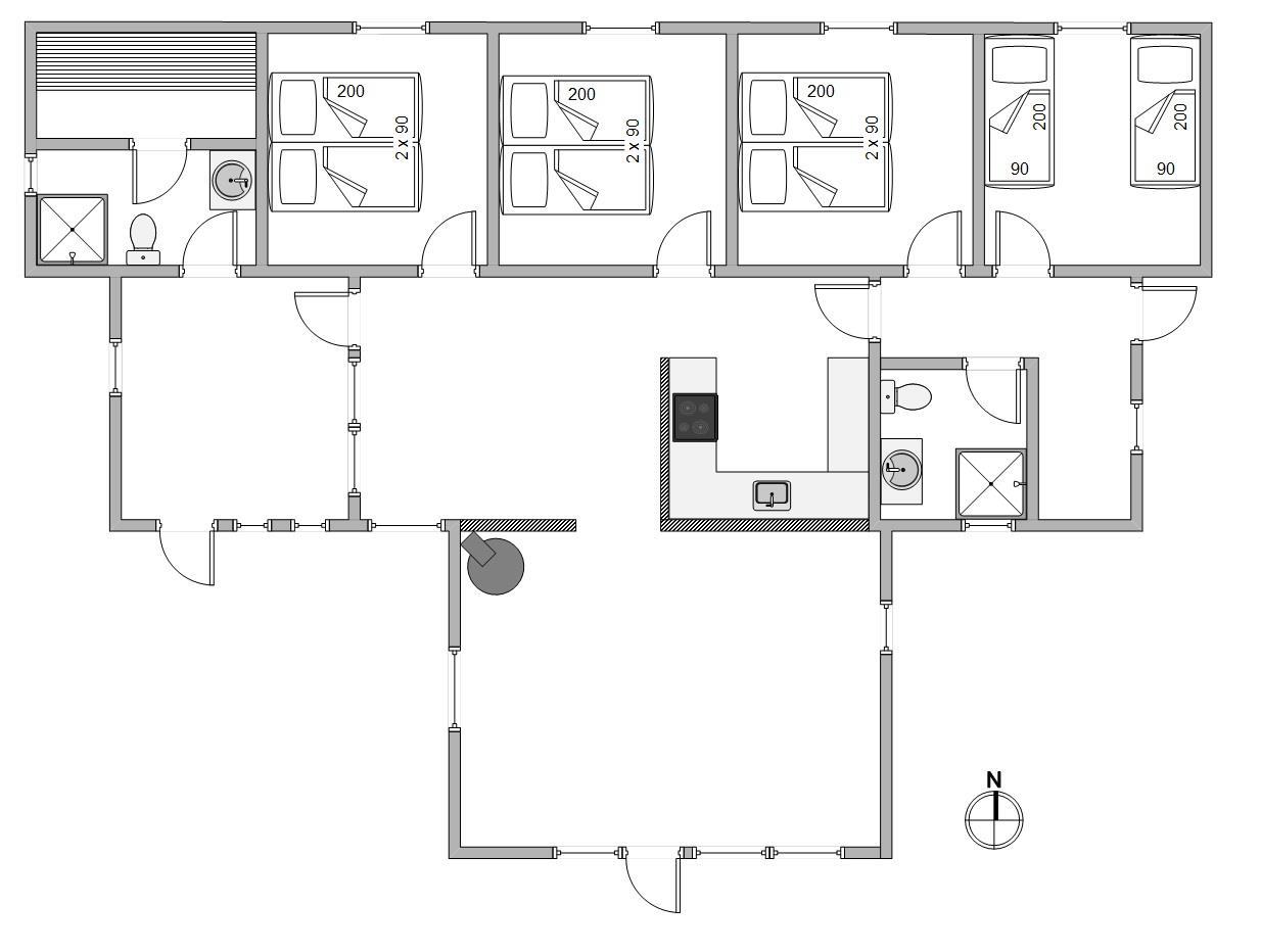Rundt om feriehuset har du flere gode terrasser, så der stort set altid er mulighed for at finde en plads i læ. Den ene terrasse er godt afskærmet og overdækket, så du har den perfekte plads til de hyggelige grillaftener.