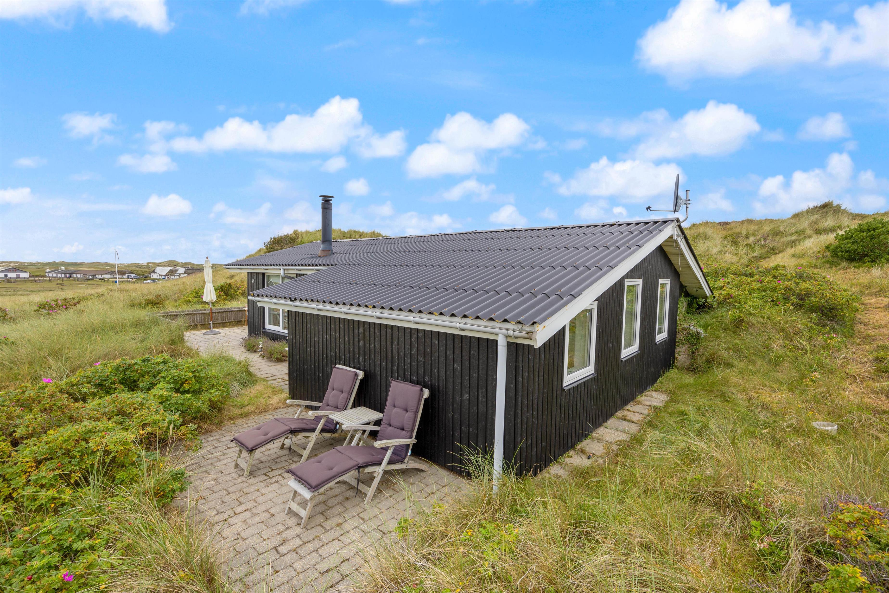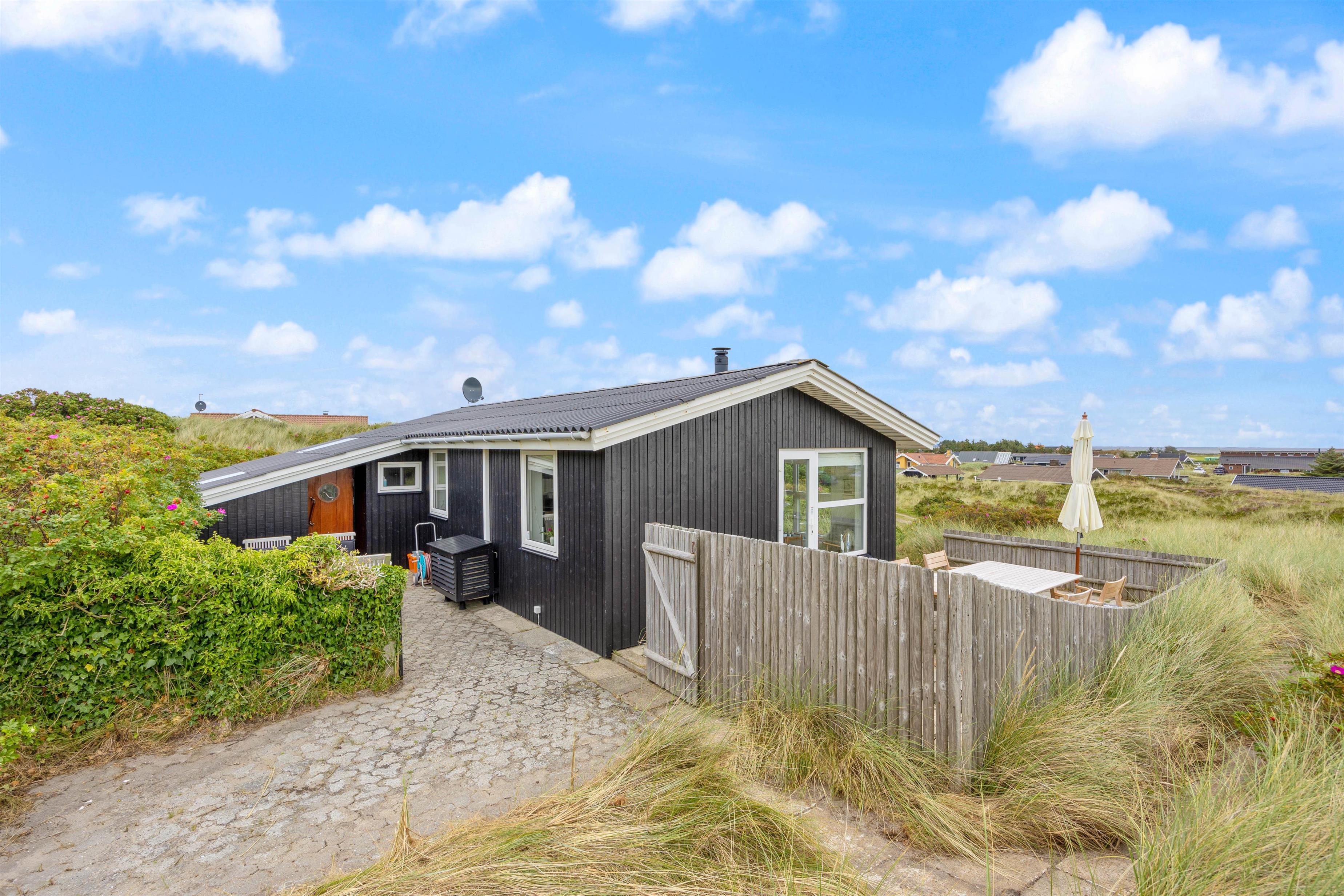 Er I på udkig efter et sommerhus nær Vesterhavet i rolige omgivelser for enden af en stikvej? Med udsigt over det smukke klitlandskab indbyder terrassen til hyggelige stunder med familien. Det hyggelige og velholdte træsommerhus kan huse fire gæster og deres firbenede ven.