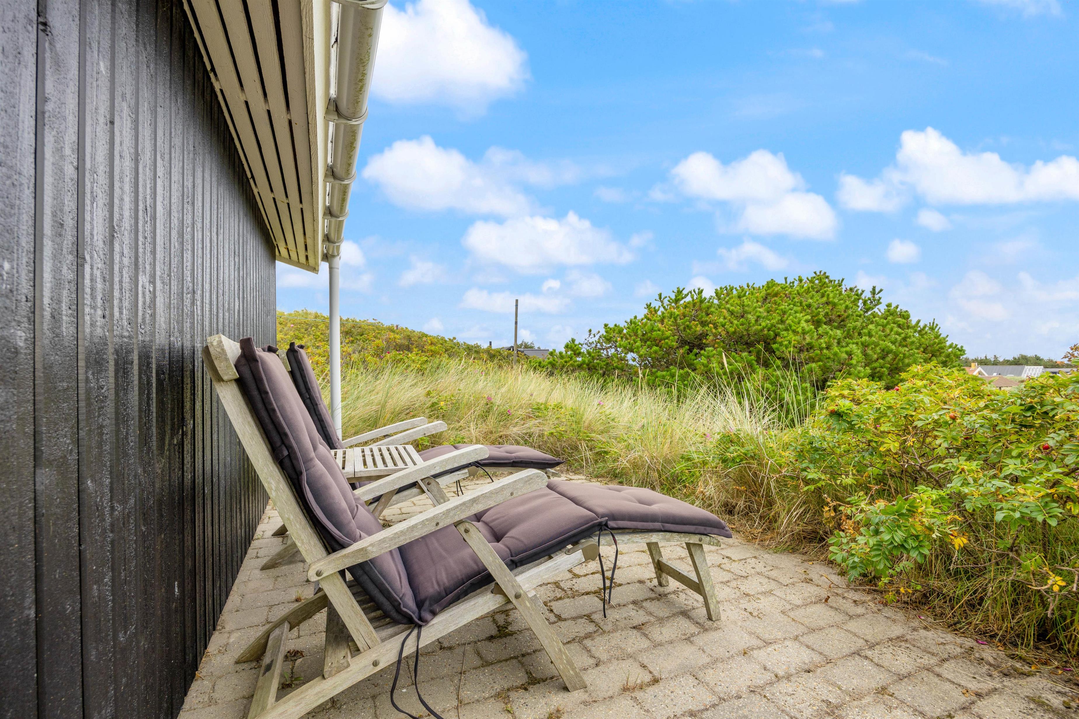 Terrassen er åben og delvist afskærmet, så her er der god mulighed for, at I kan sidde og nyde jeres ferie og solens varme stråler fra havemøblerne og liggestolene i fredelige omgivelser.