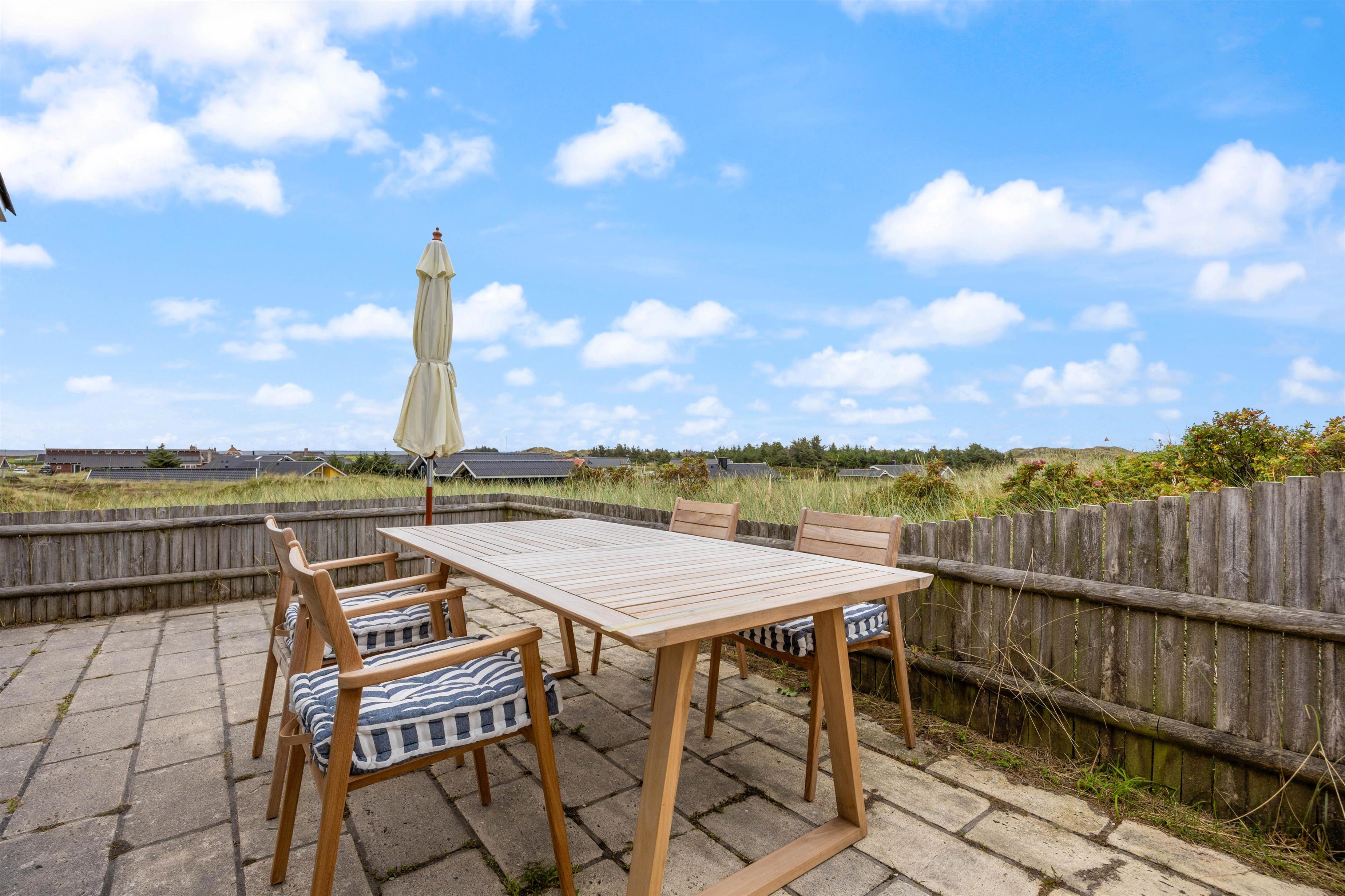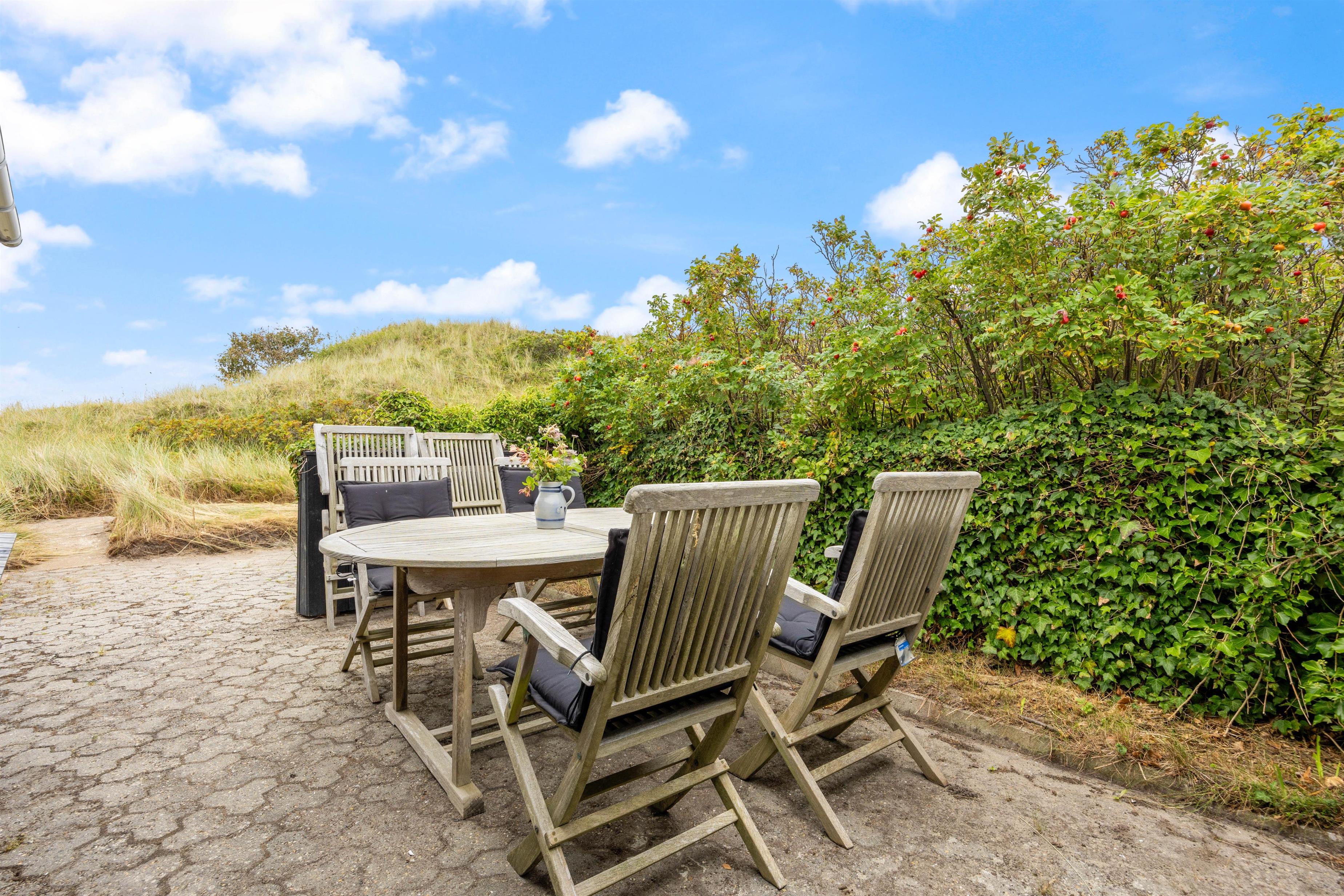På terrassen har I også en gasgrill til rådighed, så I kan lave en lækker grillmiddag om aftenen. Efter et lækkert måltid og noget koldt at drikke, kan I begå jer langs stierne i klitterne, som vil føre jer til det smukke brusende Vesterhav. Her venter jer en smuk solnedgang.