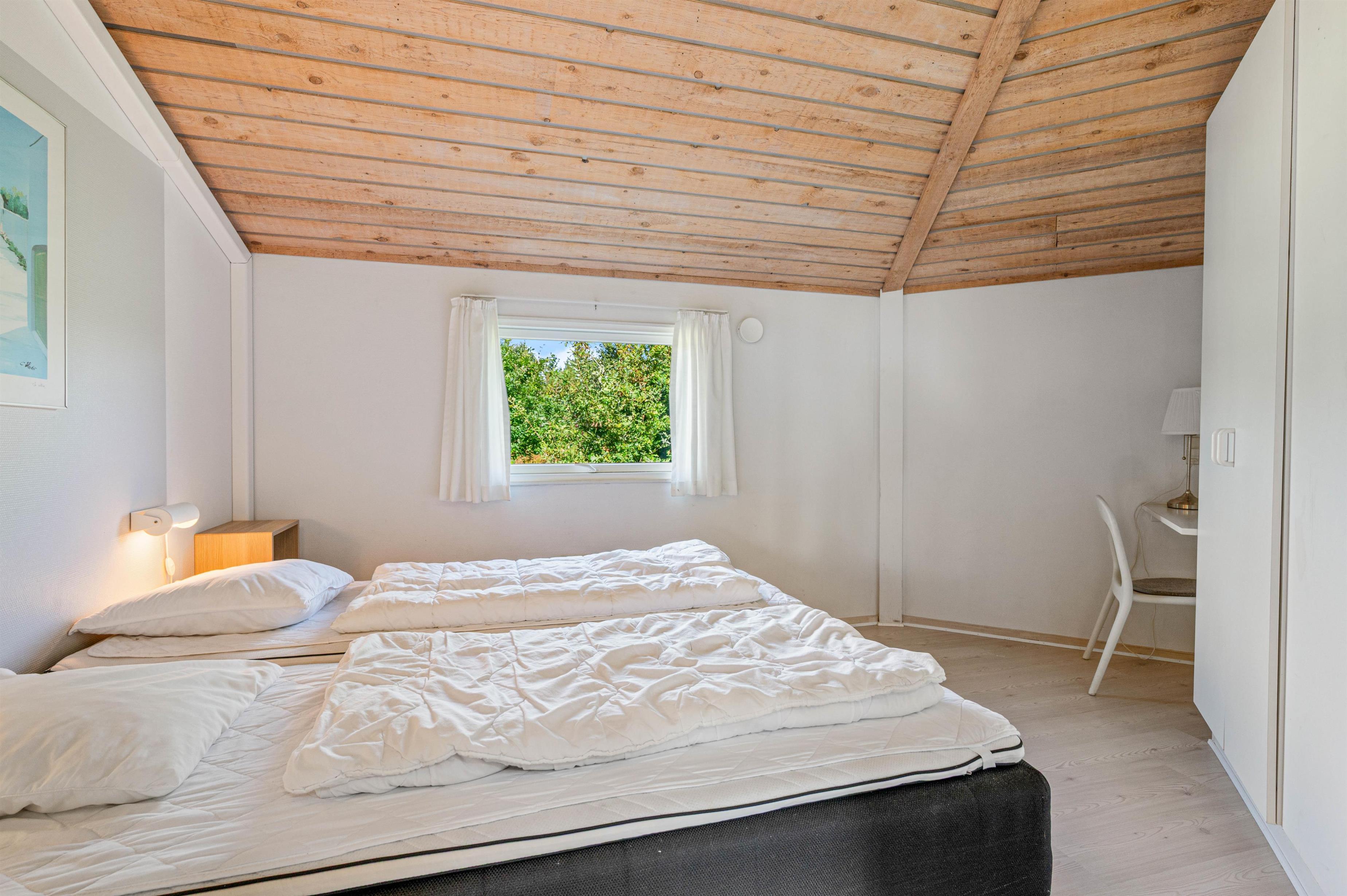 Der er plads til 8 feriegæster i sommerhuset, som kan fordele sig på de 4 soveværelser. Alle værelser er indrettet med gode dobbeltsenge, så I kan få en god nats søvn og samle energi til morgendagens aktiviteter. Sommerhuset har desuden 2 rummelige badeværelser, som begge har gulvvarme.