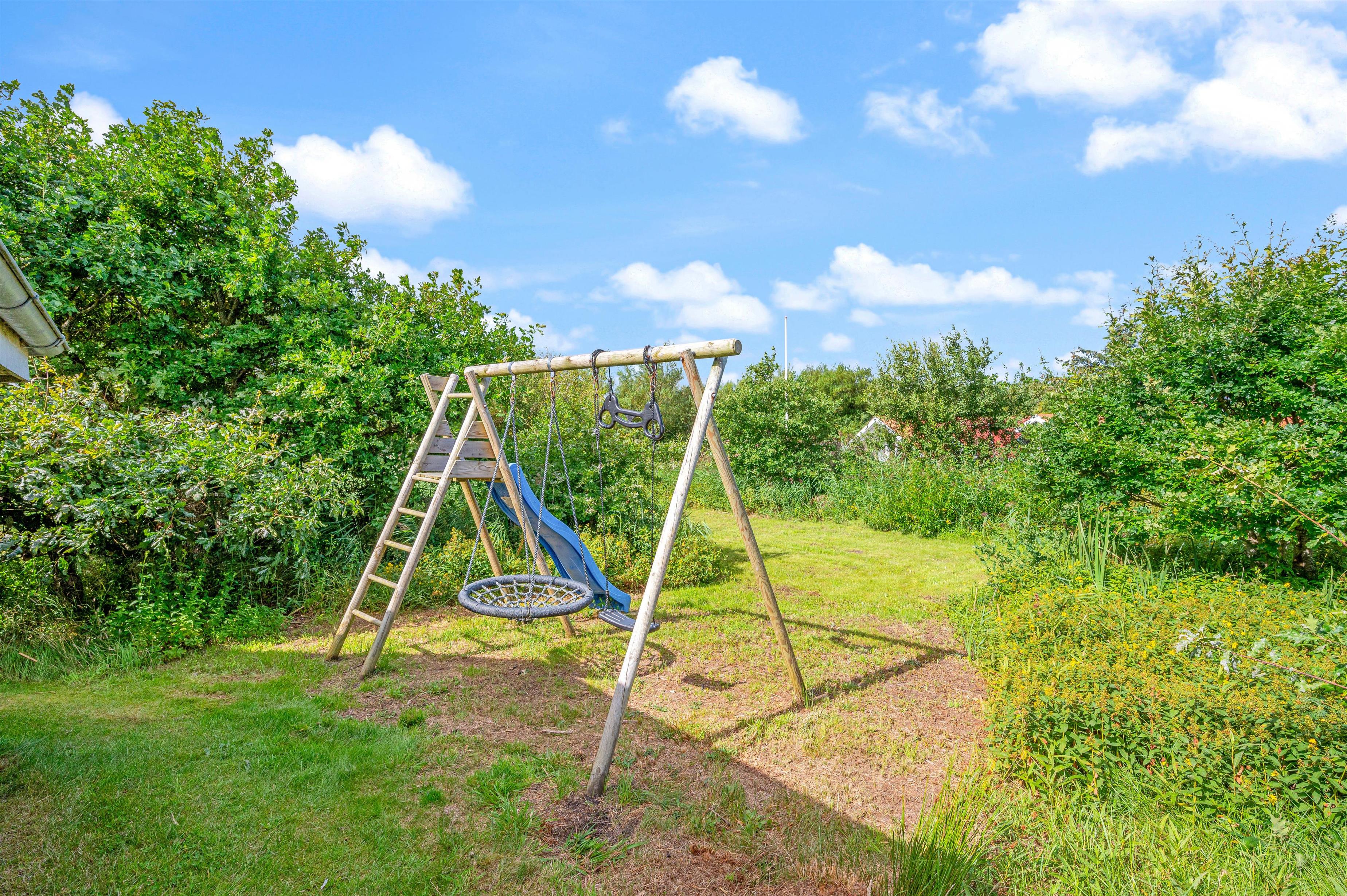 På den 2050 m² store naturgrund er der et gyngestativ med rutsjebane, som er et hit blandt familiens yngste medlemmer.