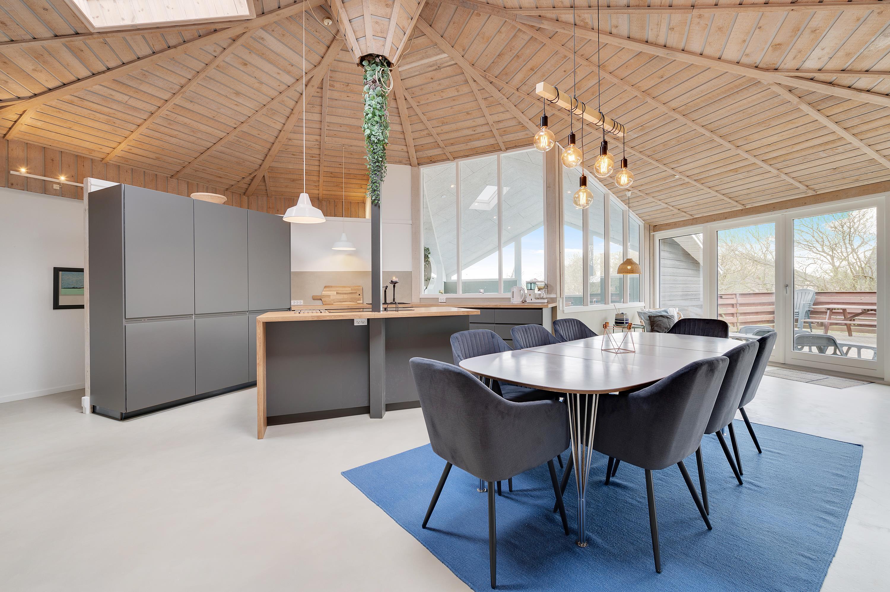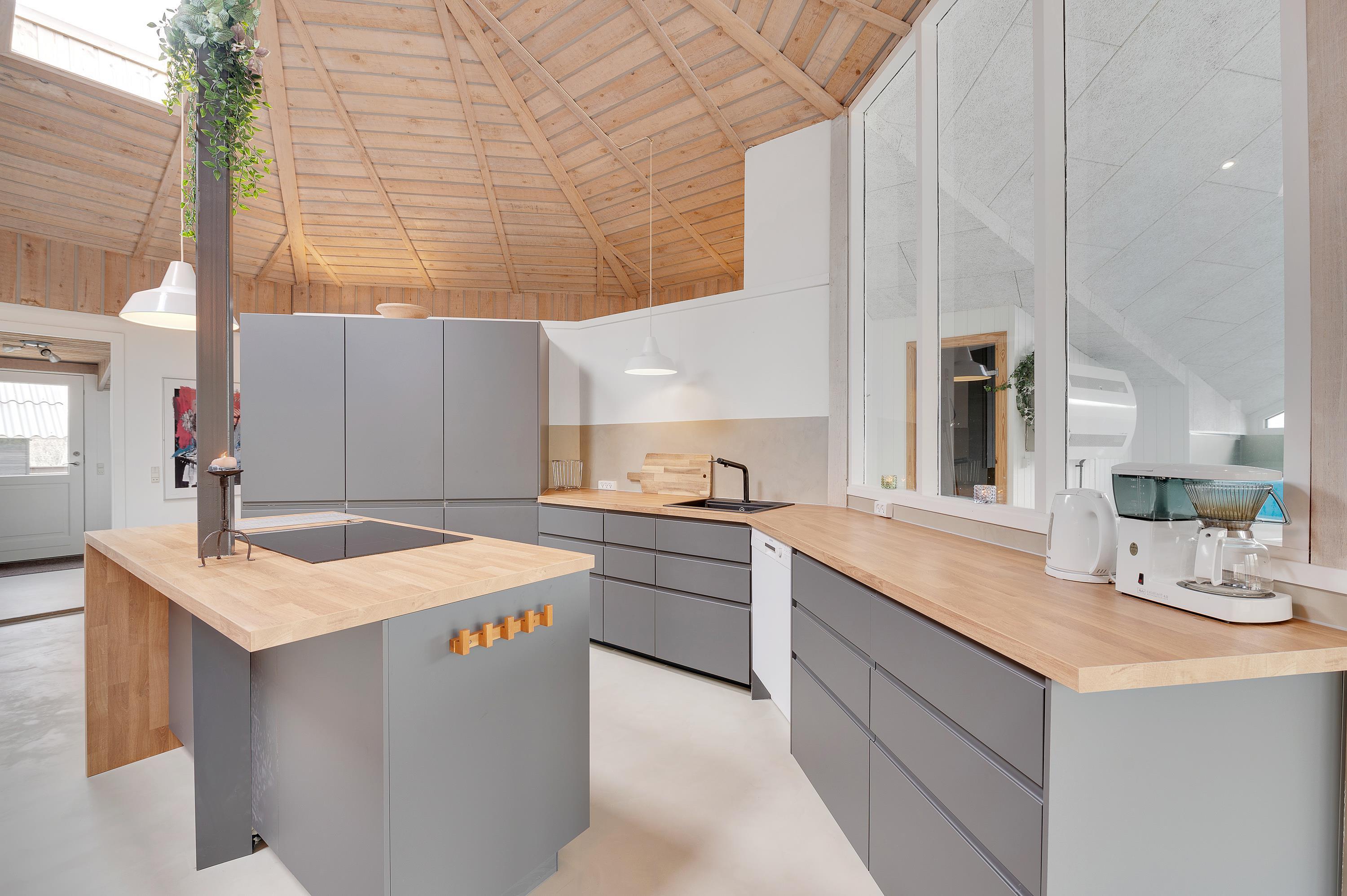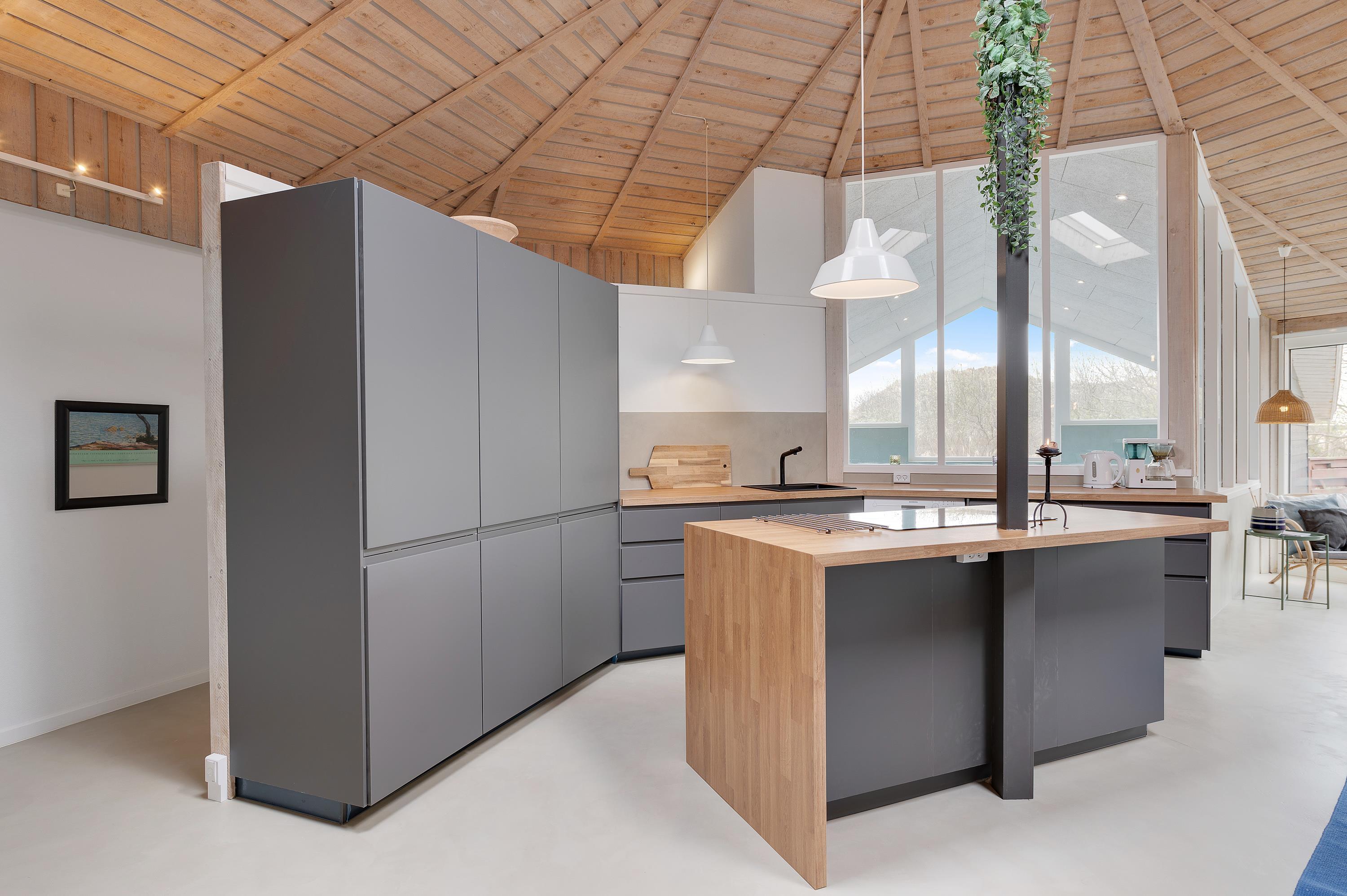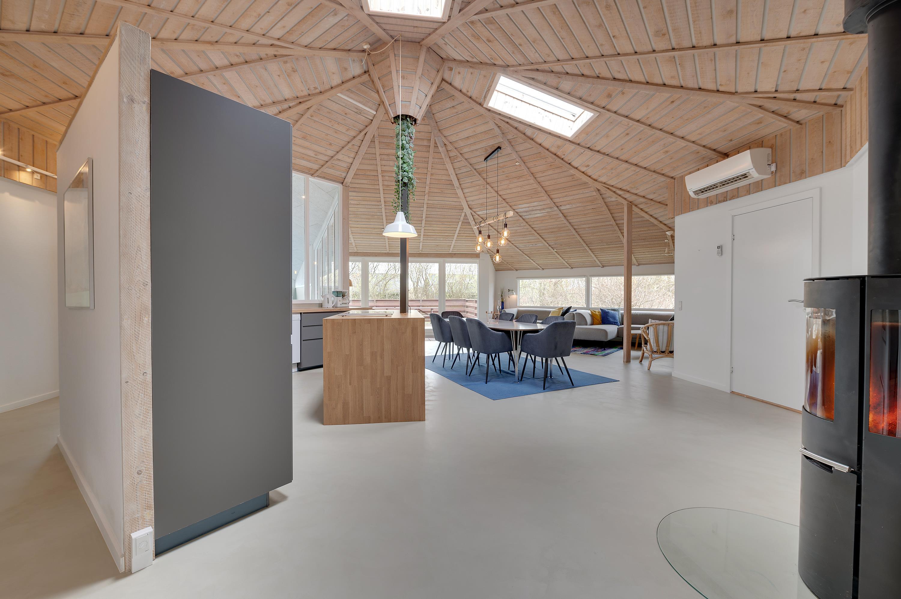 Sommerhuset er renoveret i 2021 og fremstår lyst og indbydende. Køkkenet ligger i åben forbindelse med stuen, hvor hele familien kan samles. Alrummet er hjertet af sommerhuset, og herfra har I også et godt overblik over pool-området. Brændeovnen sørger for dejlig varme og ekstra hygge, imens I tager et spil kort til lyden af det knitrende brænde, inden sengen kalder. Desuden er der en varmepumpe, som også kan sørge for en behagelig temperatur.