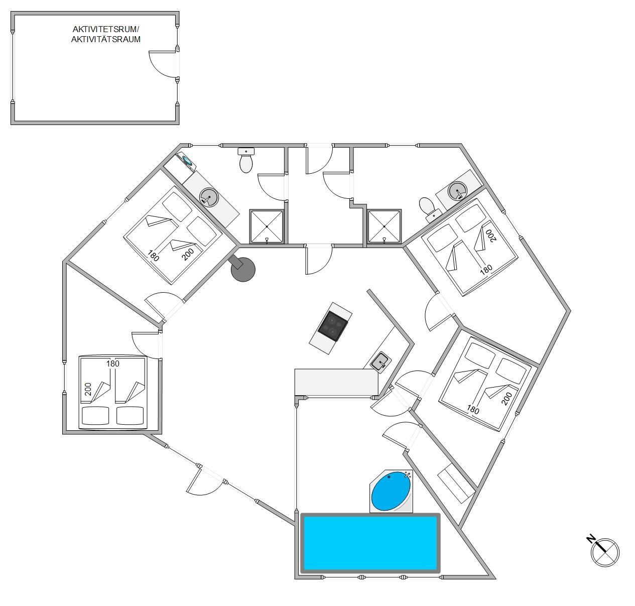 Sommerhuset har desuden et aktivitetsrum, som er opført ved siden af sommerhuset. Her er der mulighed for at udfordre hinanden i forskellige spil. I kan for eksempel finde familiens mester i bordfodbold.
