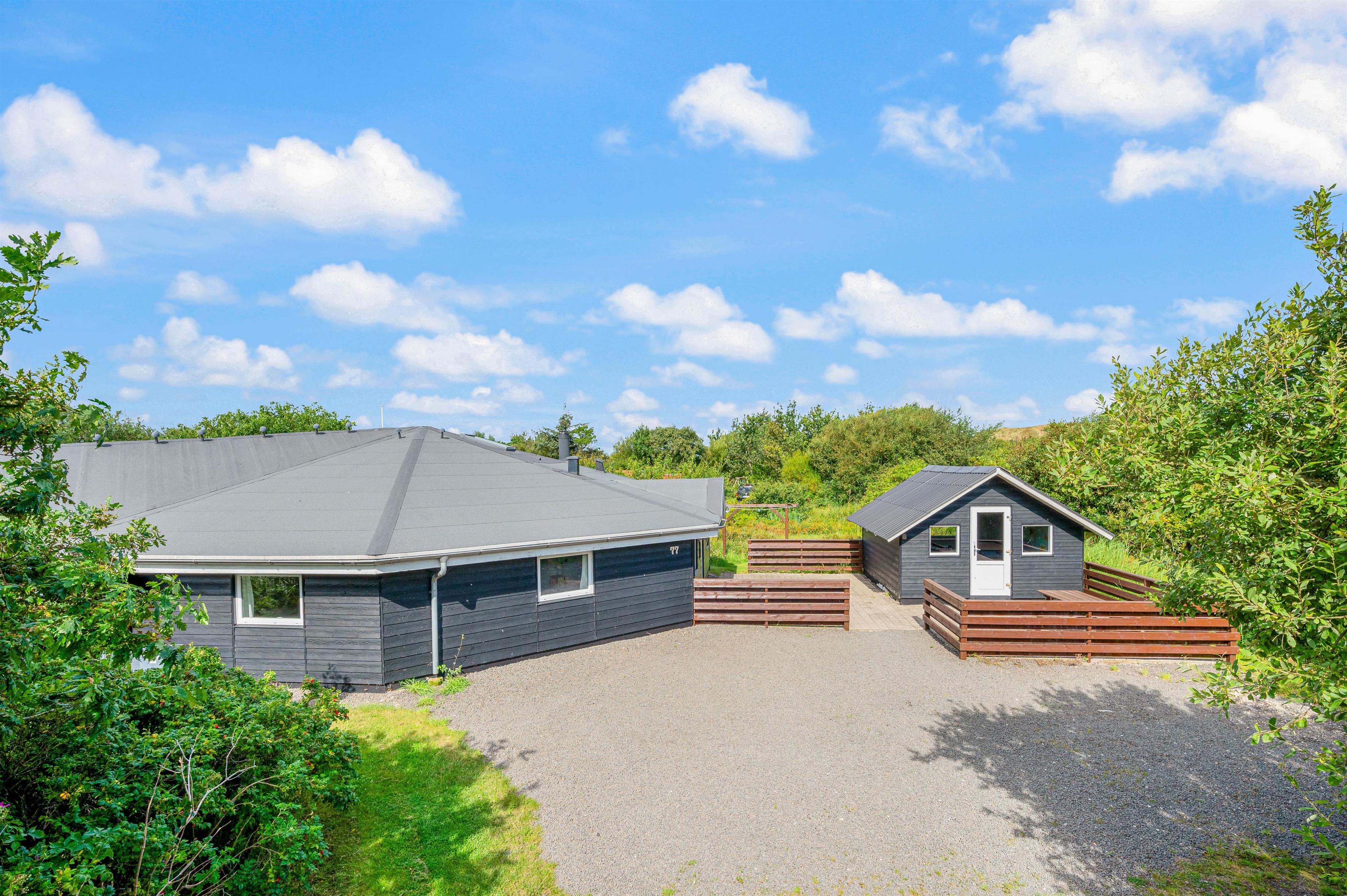 Sommerhuset har en skøn beliggenhed i det naturskønne område Haurvig. Ringkøbing Fjord ligger blot et stenkast fra sommerhuset, og Vesterhavet er heller ikke langt væk. I området kan I gå lange ture med familien og hundene i det gode vejr.