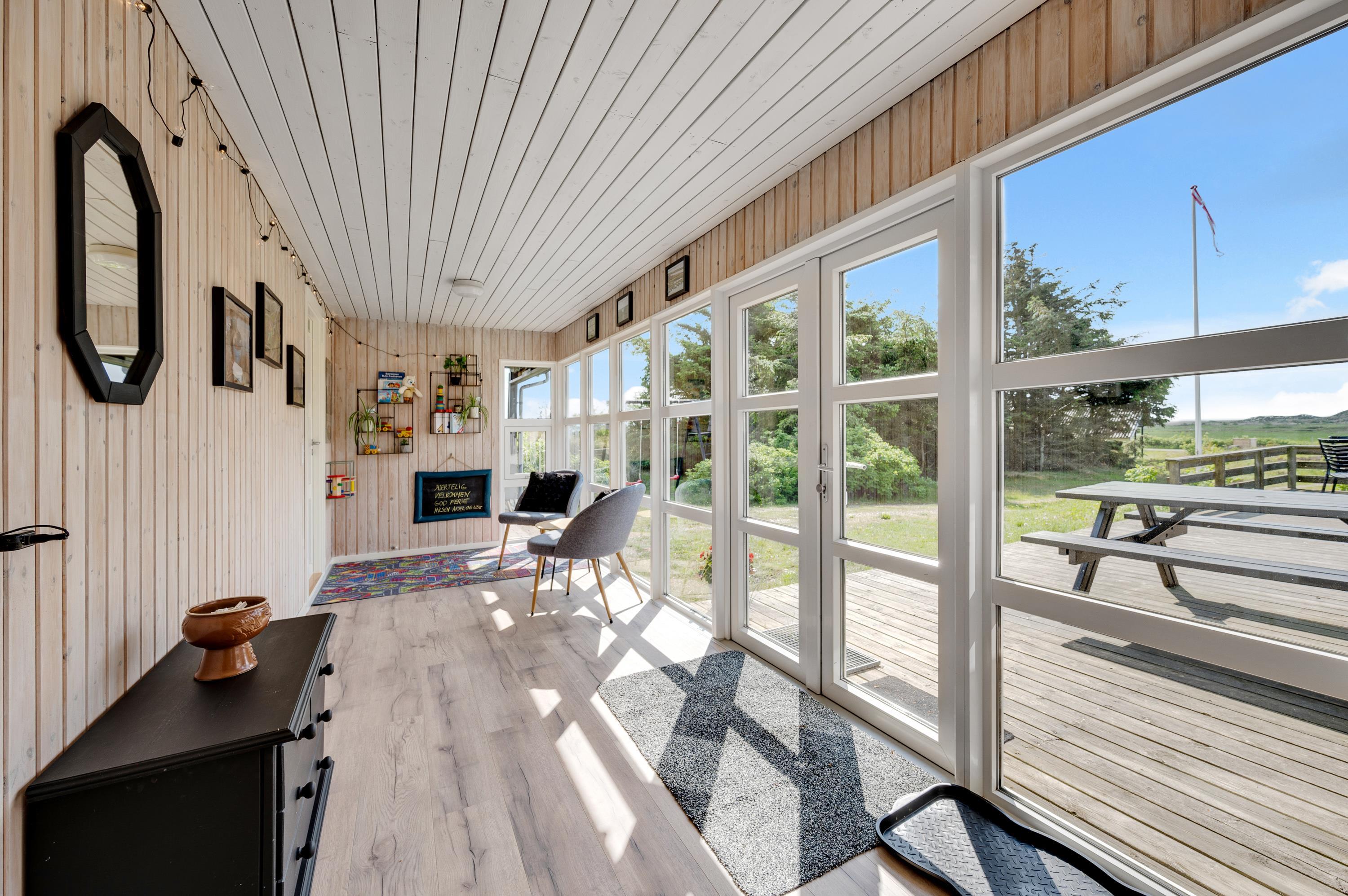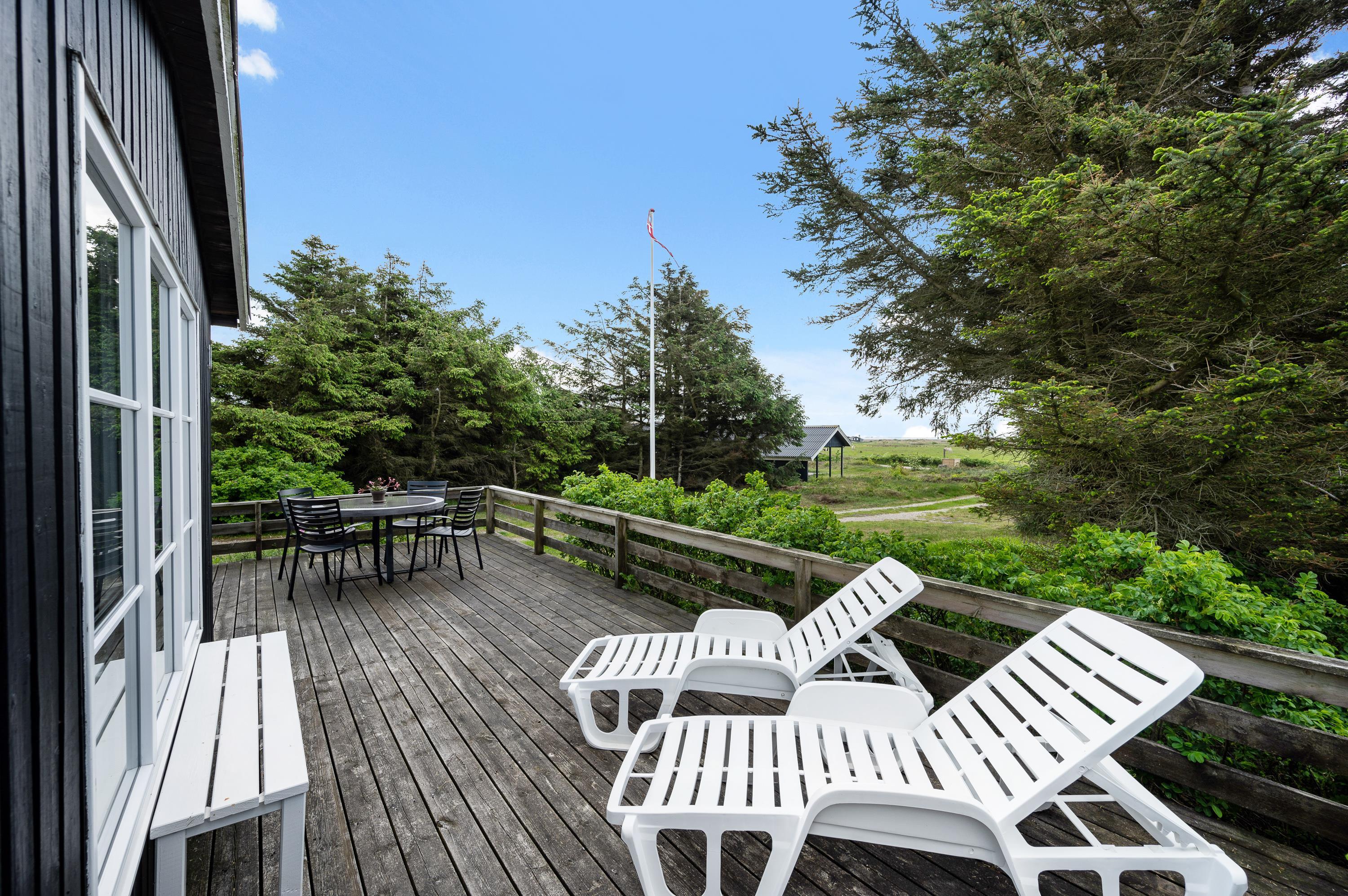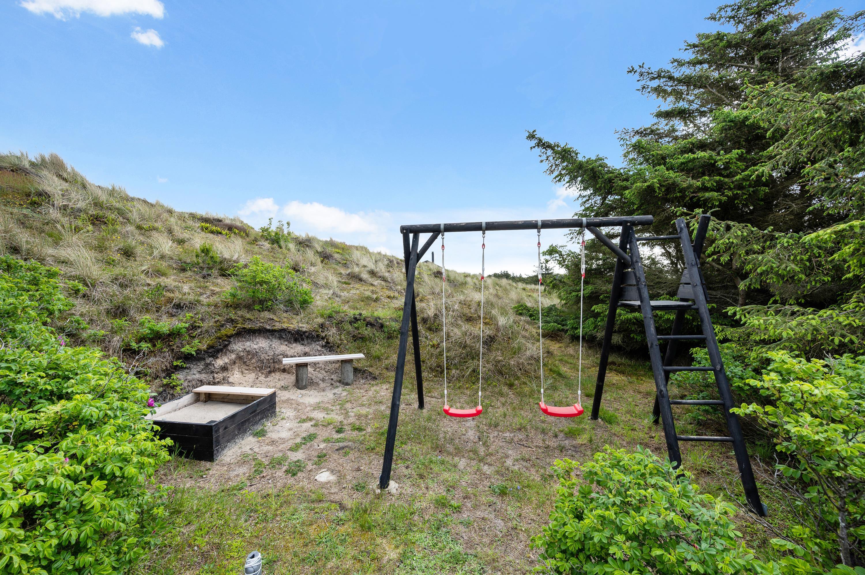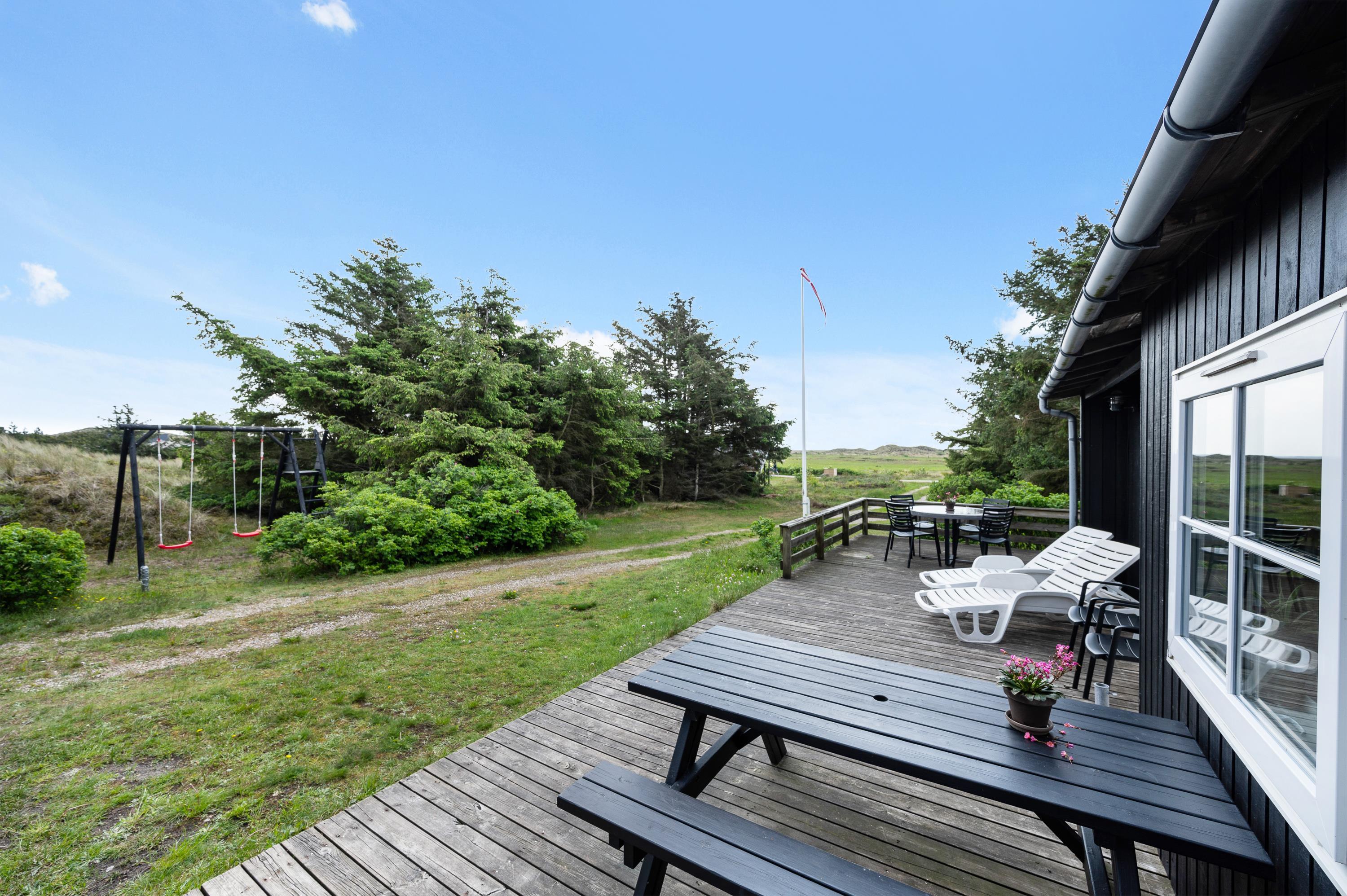 Dagen igennem kan I nyde livet på terrassen, mens de små gynger eller leger i sandkassen. Sidst på dagen kan I tilberede en lækker grillmiddag og nyde den på terrassen, mens man ser himlen farves orangerød over klitterne mod vest.