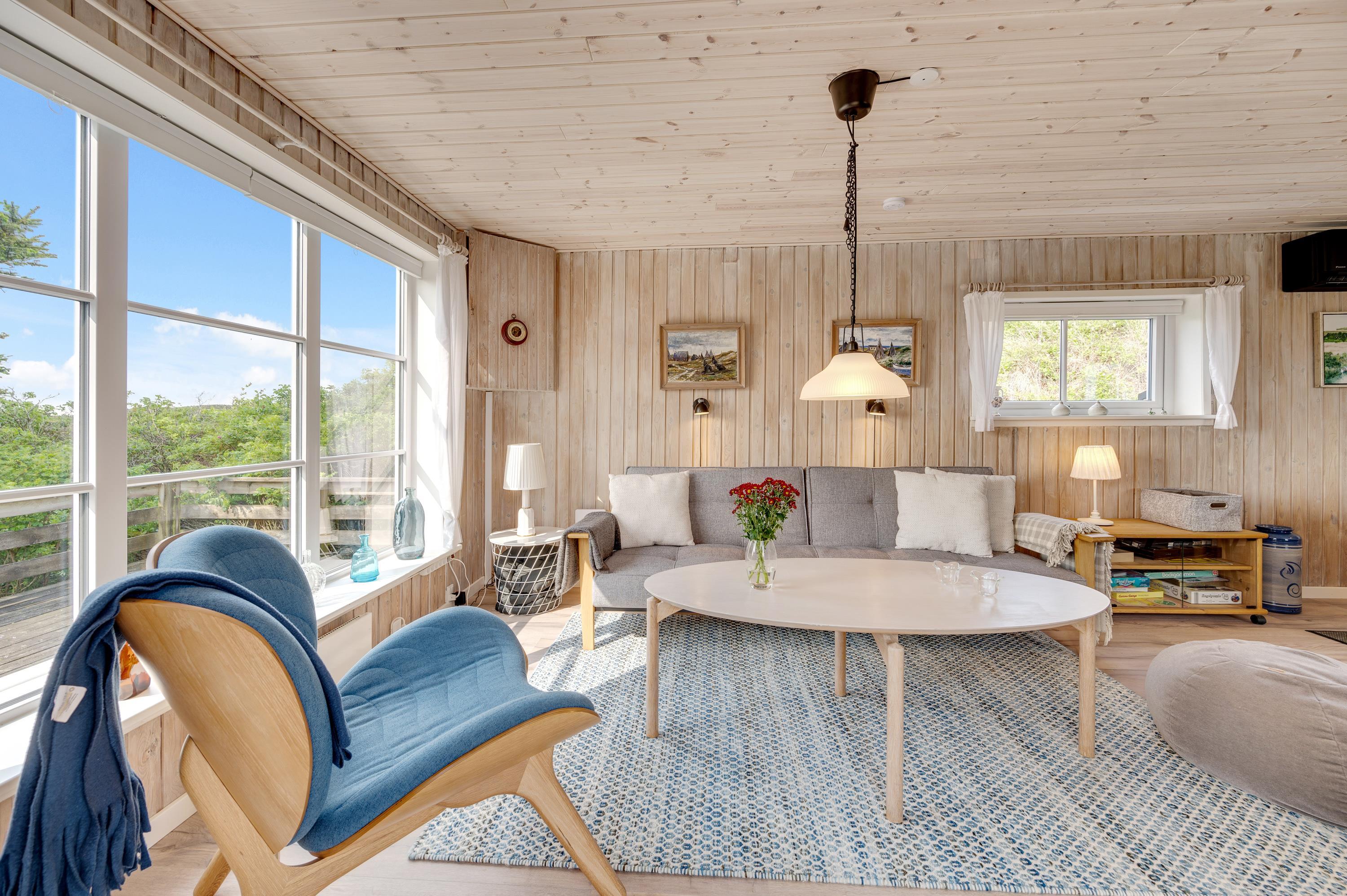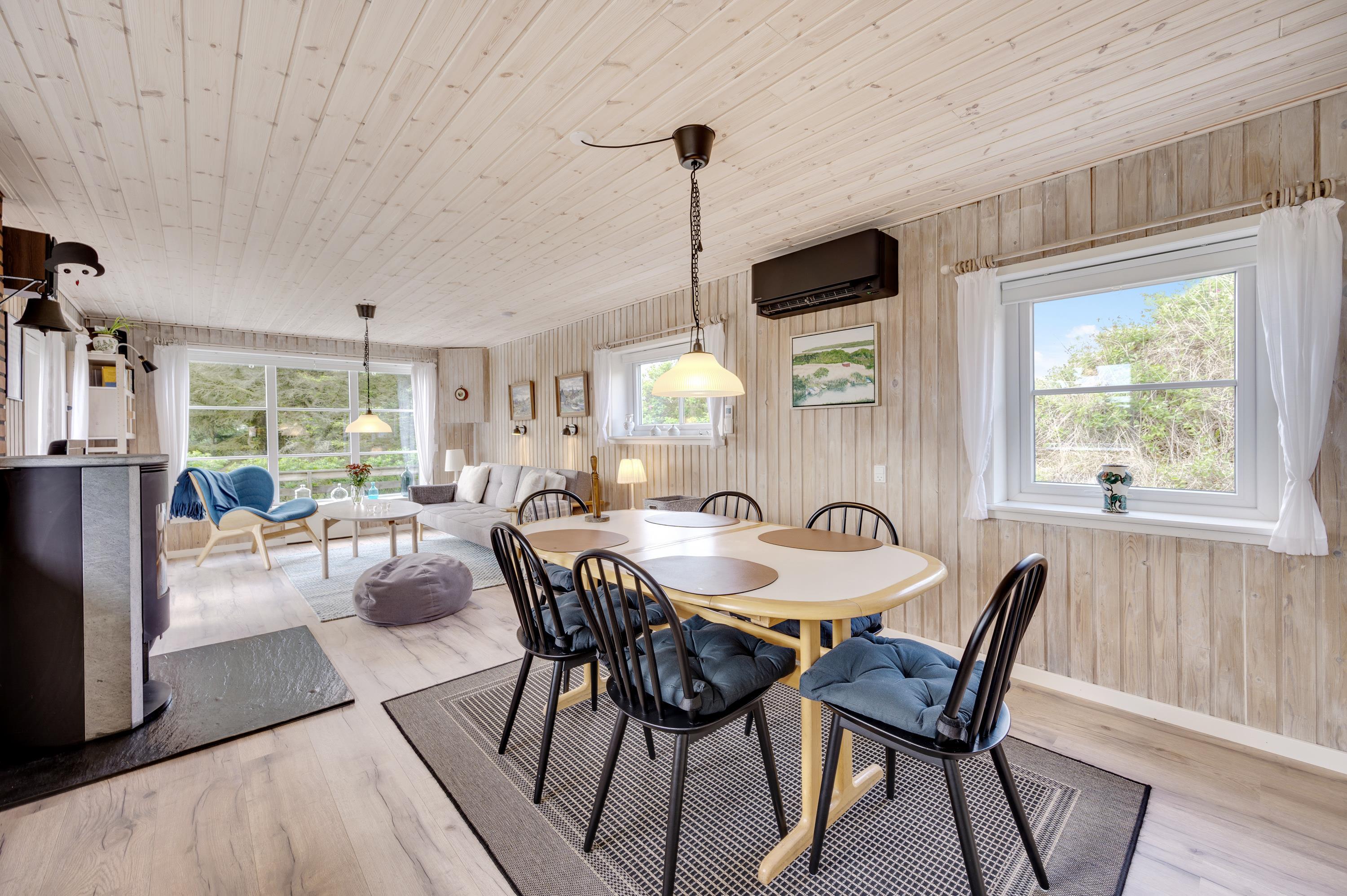 På de køligere dage indbyder stuen til familiehygge med f.eks. kort- eller brætspil foran den knitrende ild i brændeovnen.