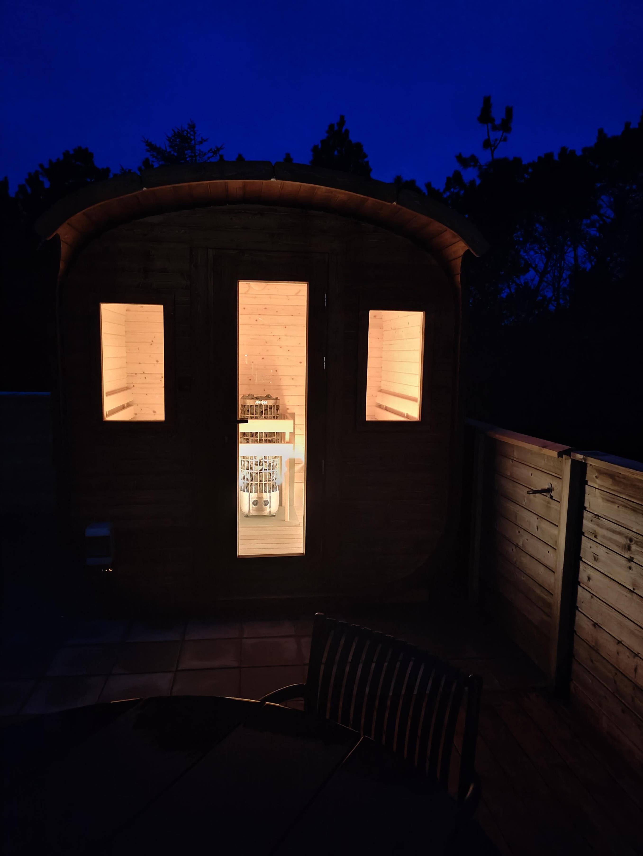 Efter en lang dag på stranden eller med udendørs aktiviteter kan I forkæle jer selv i sommerhusets elektriske sauna og elektriske vildmarksbad – den perfekte måde at slappe helt af og lade batterierne op.