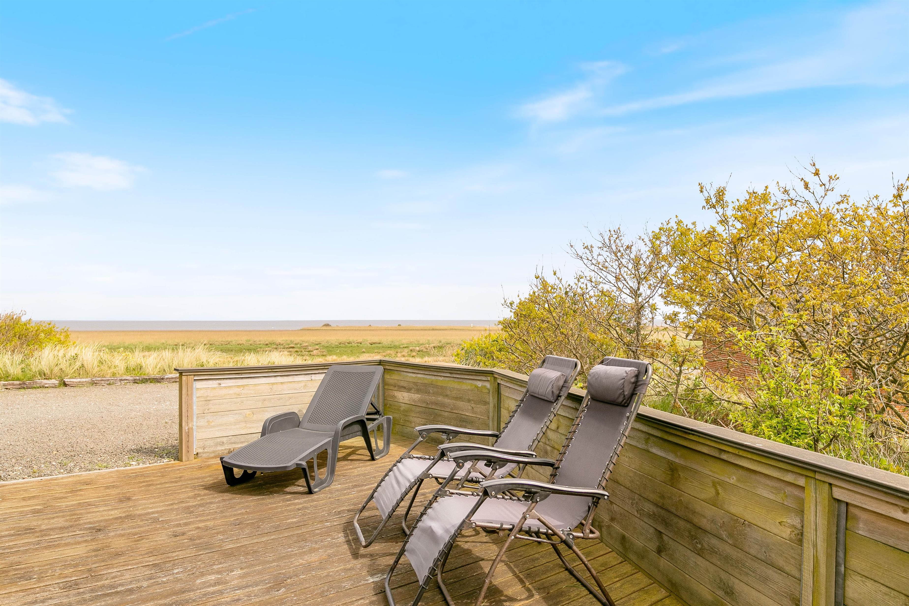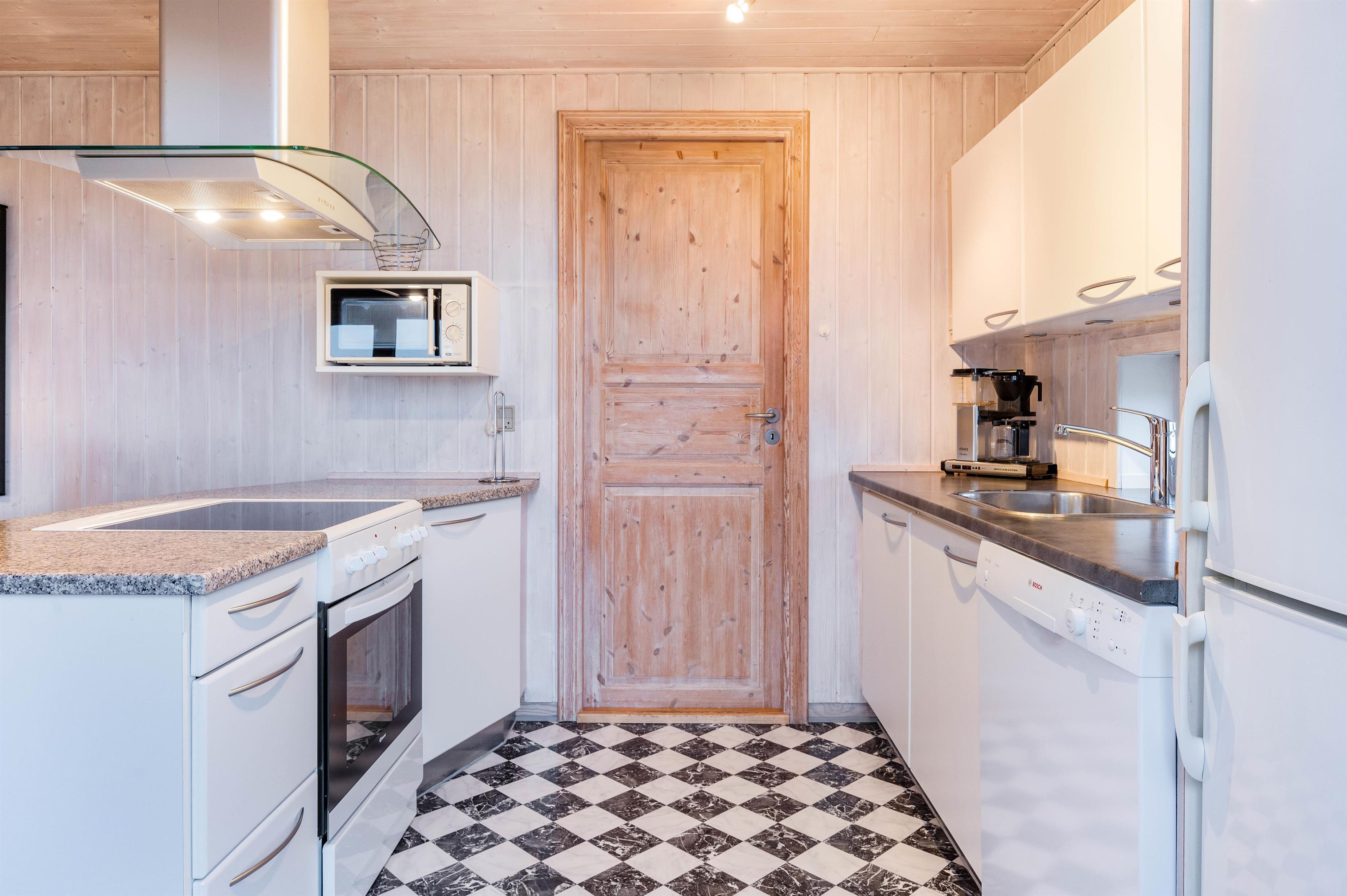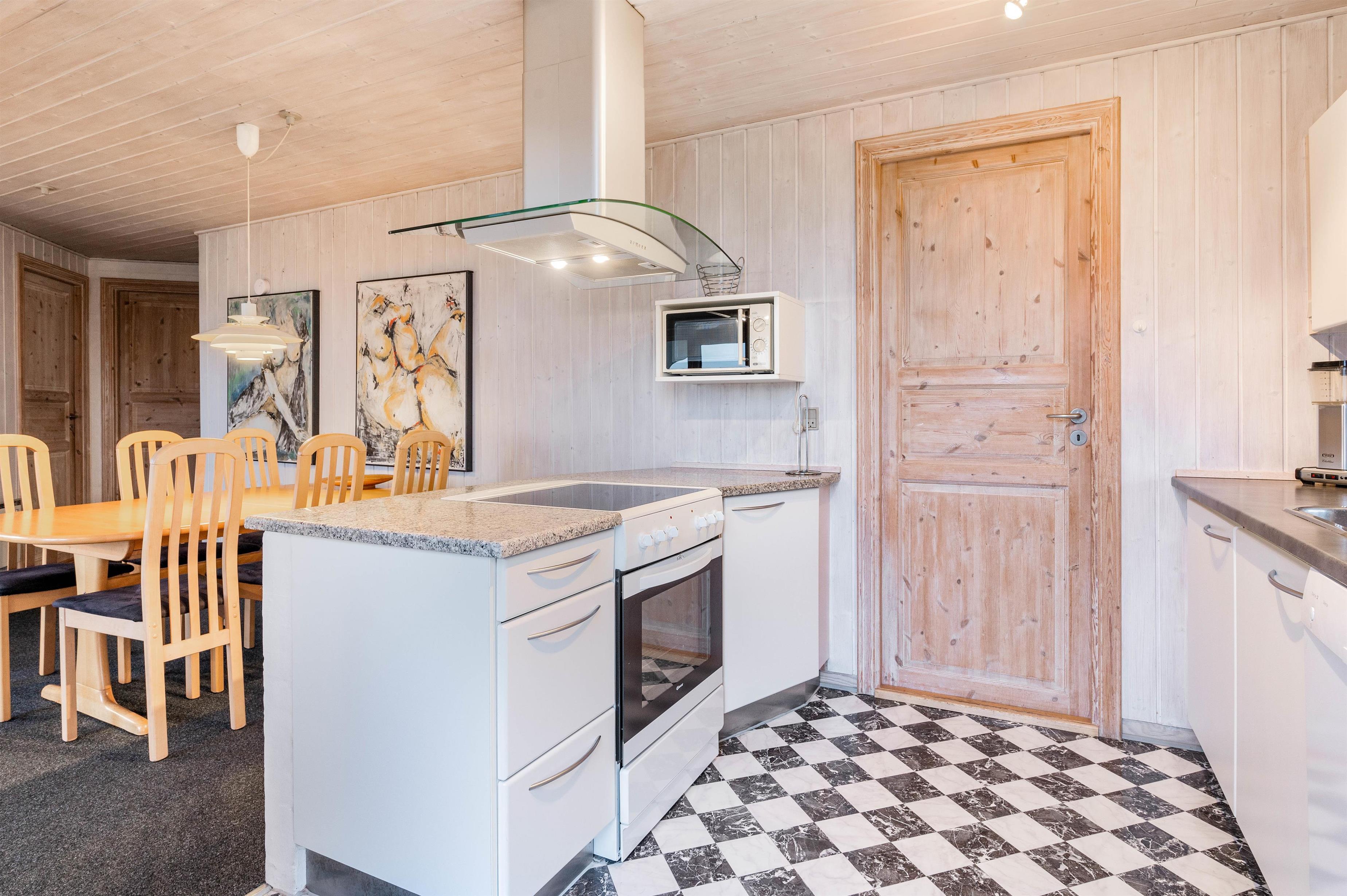 Den flotte fjordudsigt fra husets terrasse er noget af det første, du lægger mærke til, når du ankommer til huset. Den flade, rå bevoksning, som strækker sig ned til vandet står helt uberørt, og er en skøn kontrast til feriehusets lyse indretning. Her kan du slappe af og nyde udsigten til det rolige vand på fjorden. En del af terrassen er overdækket og afskærmet. Det både forlænger de lune sommeraftener og skaber også læ for vejr og vind. Allerede på tidlige forårsdage er det dejligt at sidde her og nyde naturen. Feriehuset ligger desuden bare 5 minutters gang fra en lille idyllisk fjordhavn, som er et besøg værd.