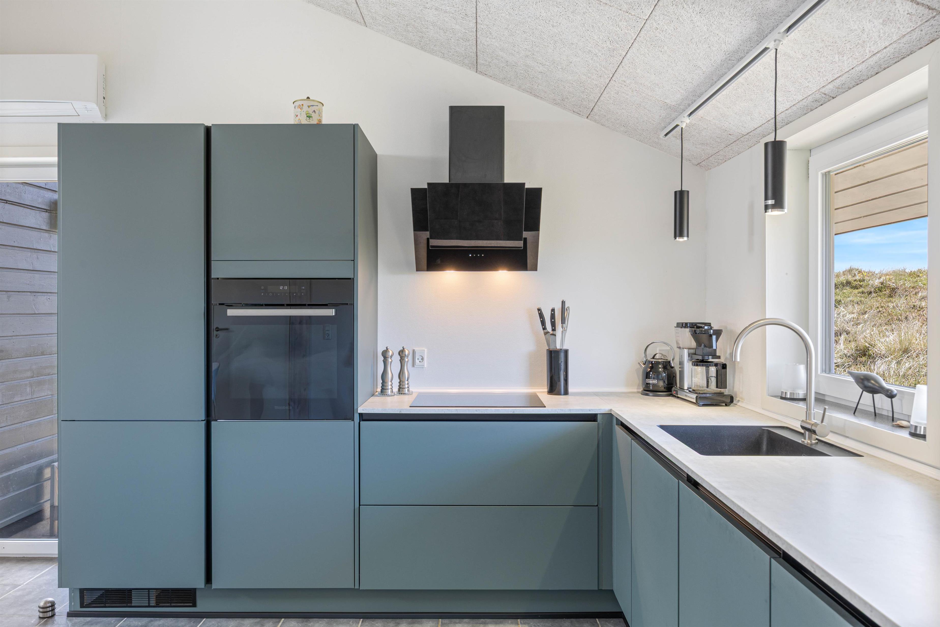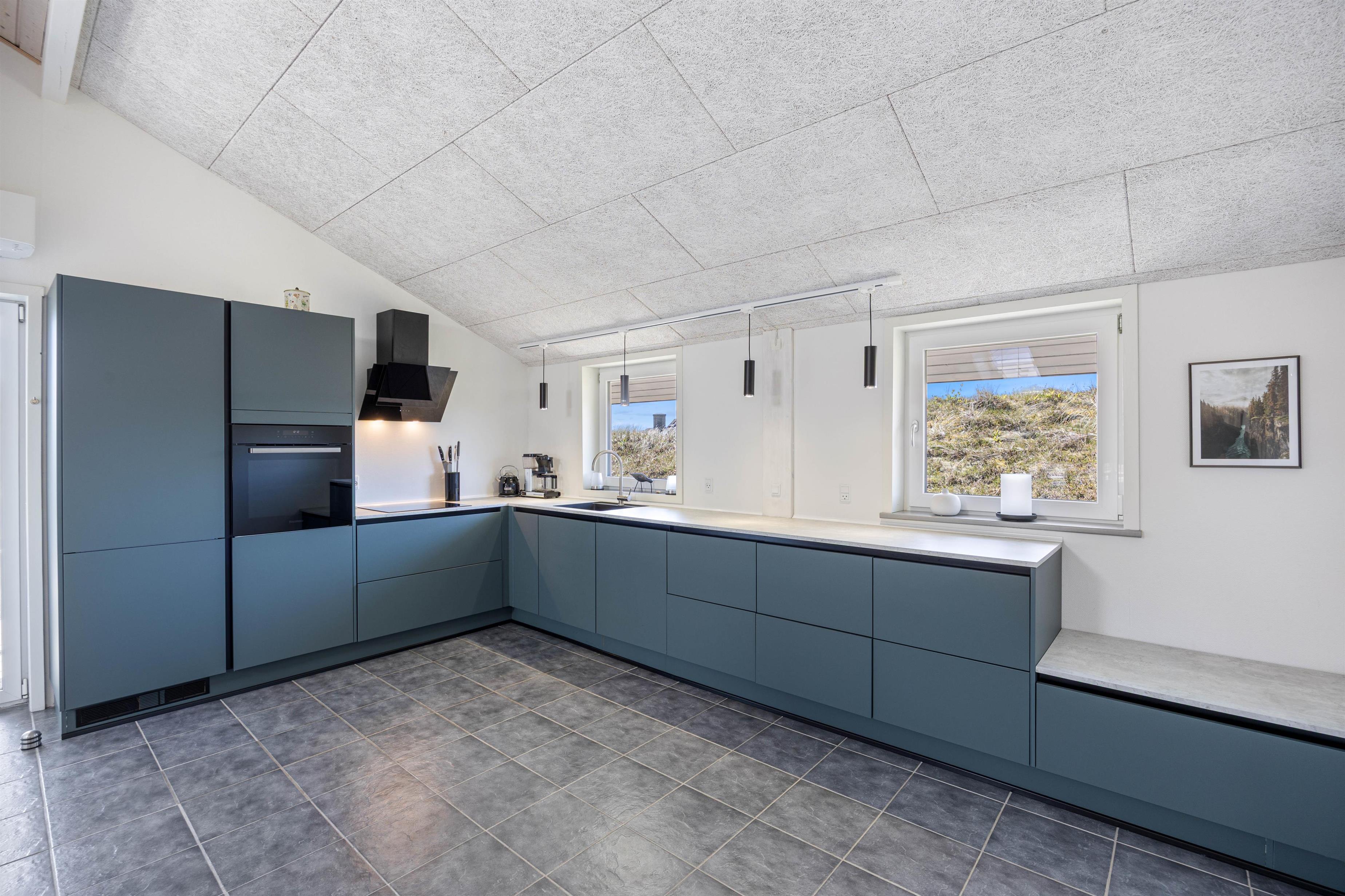 Det moderne og praktisk indrettede køkken indeholder bl.a. opvaskemaskine, induktionskomfur og et køleskab med en frysekapacitet på 60 l. Her er der plads til en hyggelig madlavningsaften og til at fremtrylle lækre – eventuelt lokale – retter.