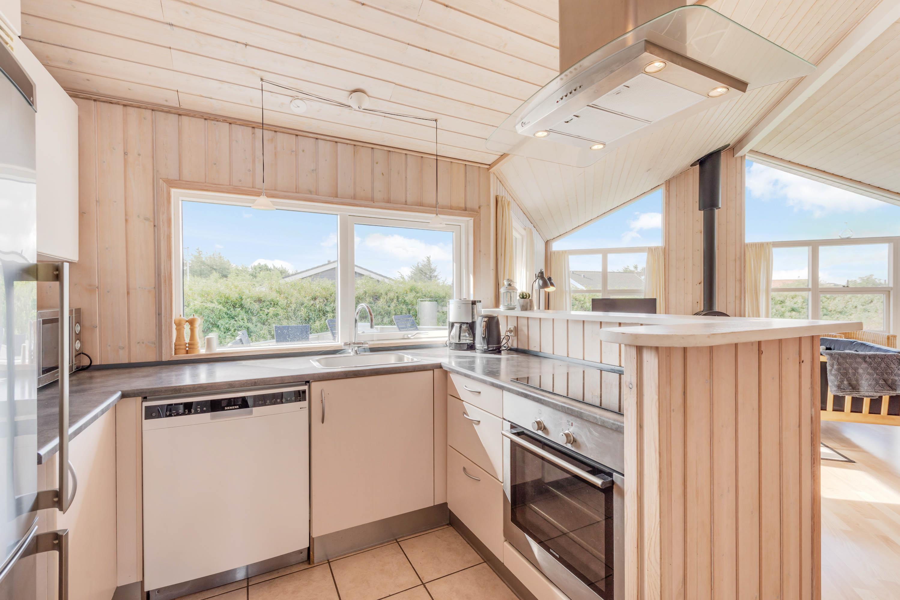 Sommerhuset er desuden udstyret med mange gode praktiske faciliteter, som gør ferien ekstra ukompliceret. I køkkenet finder I en opvaskemaskine, og derudover har ferieboligen både en vaskemaskine og en tørretumbler i den store bryggers. Den energivenlige varmepumpe er både en god hjælp til strømafregningen og et ekstra plus for miljøet.